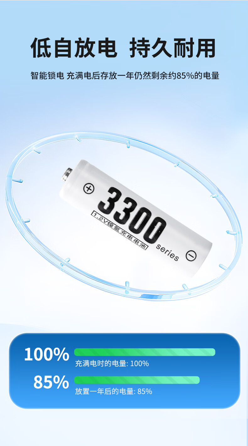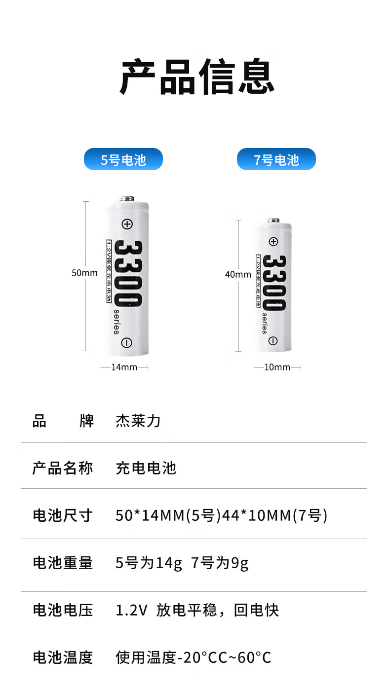 杰莱力充电电池套装通用五号七号大容量家用遥控玩具电池充电器套装 单独电池8粒5号/3300白色
