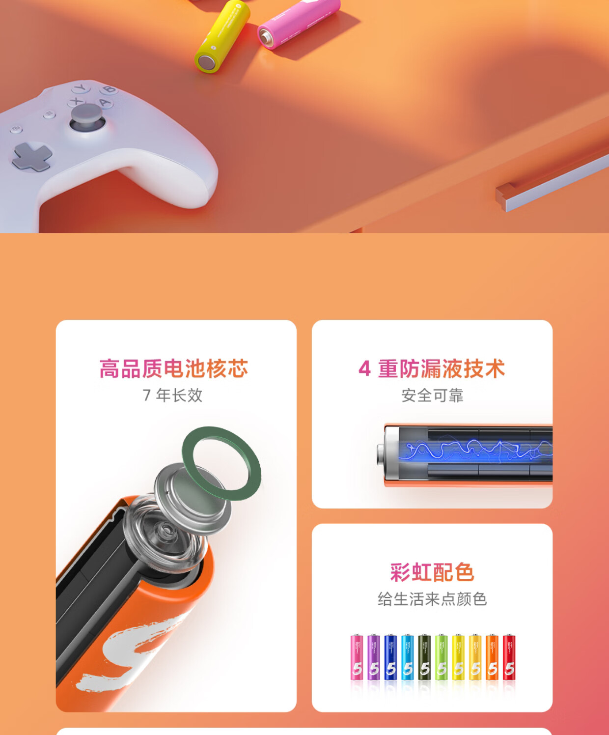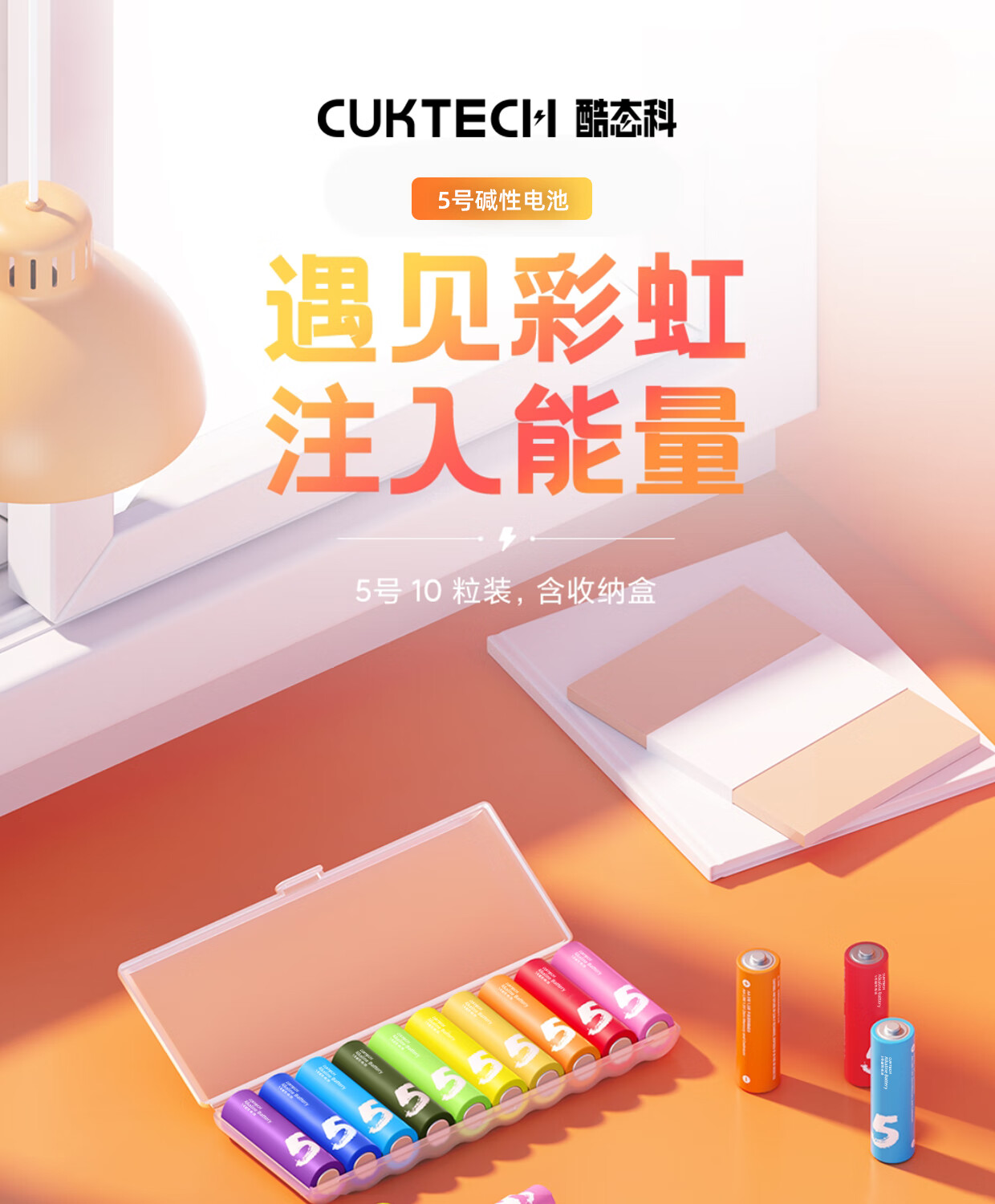 CUKTECH酷态科 5号彩虹电池碱性10粒适用血压计/遥控器/鼠标/儿童玩具/智能门锁适用ZMI【一件包邮】