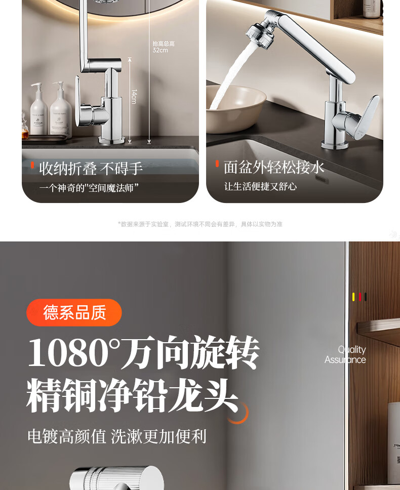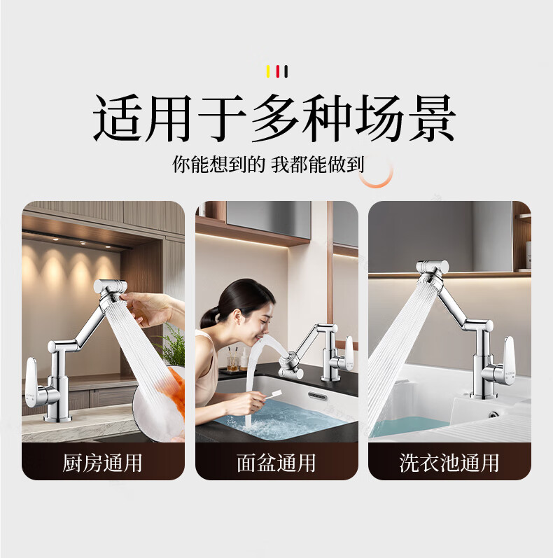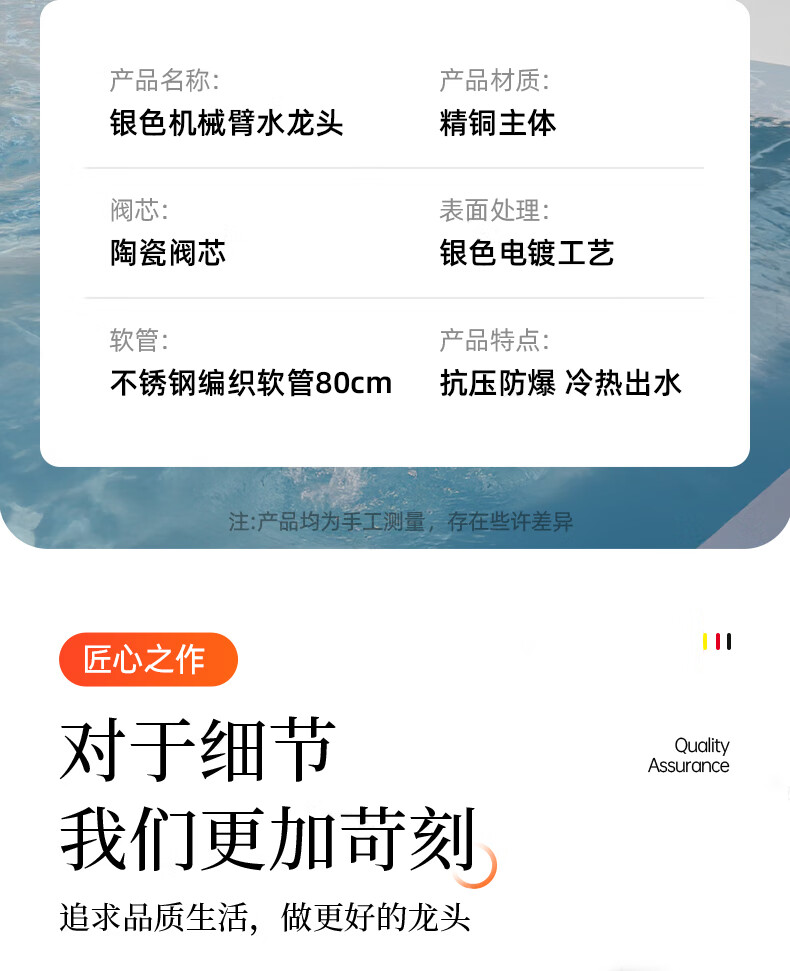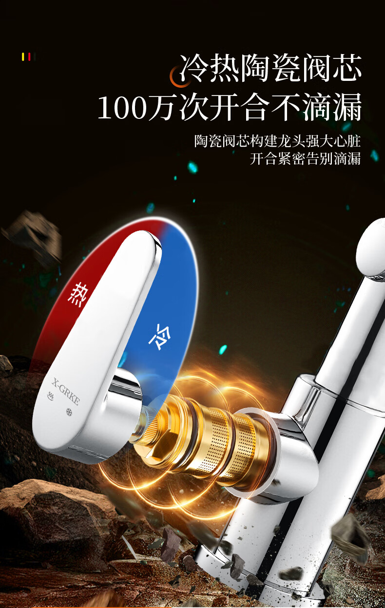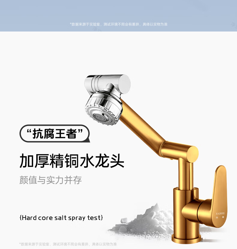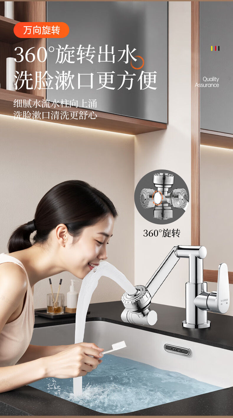 X-GRKE【德国】全铜主体水龙头洗脸盆面盆洗手盆池台盆机械臂冷热龙头 电镀银【全铜主体】万向机械臂龙头 配80CM304不锈钢管丨漏水包退换