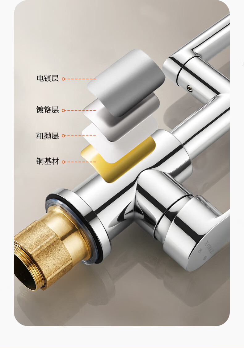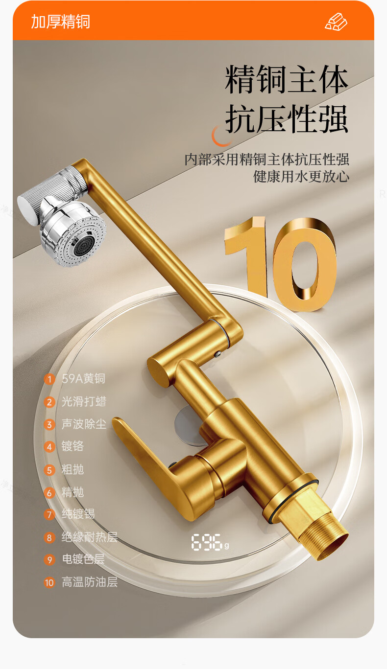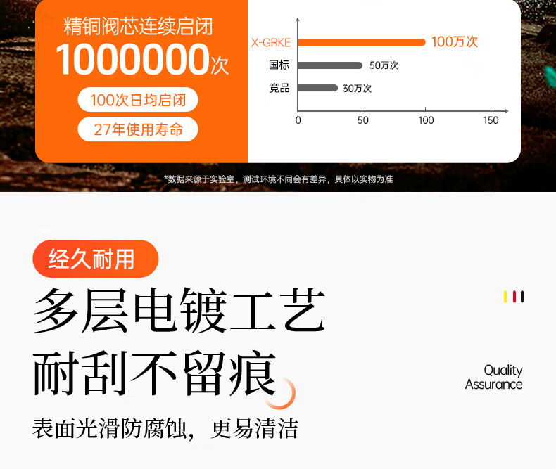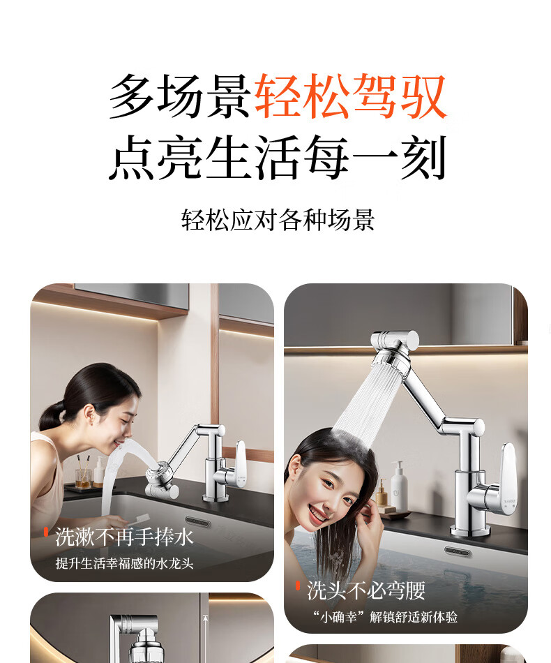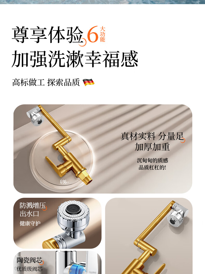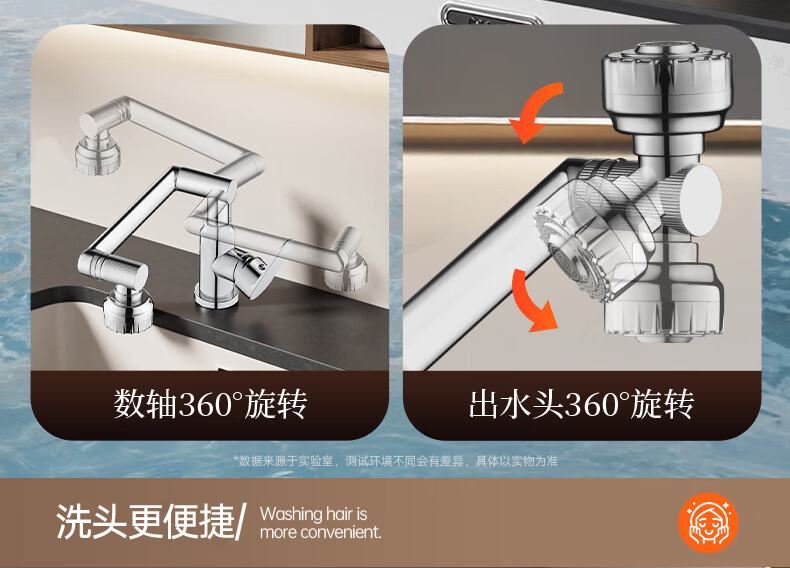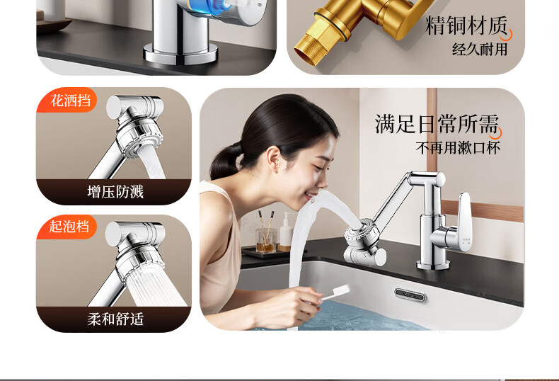 X-GRKE【德国】全铜主体水龙头洗脸盆面盆洗手盆池台盆机械臂冷热龙头 电镀银【全铜主体】万向机械臂龙头 配80CM304不锈钢管丨漏水包退换