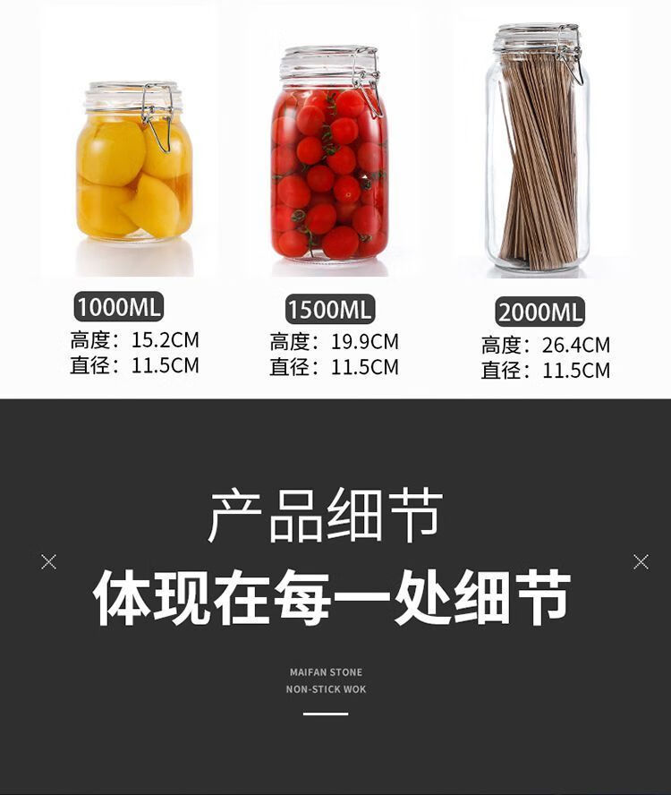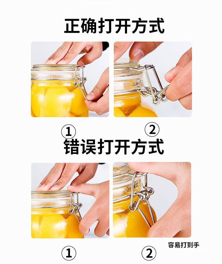 简漾玻璃瓶密封罐子食品罐带盖透明罐头家用腌制柠檬百香果蜂蜜储物罐 圆形 500ML单只装