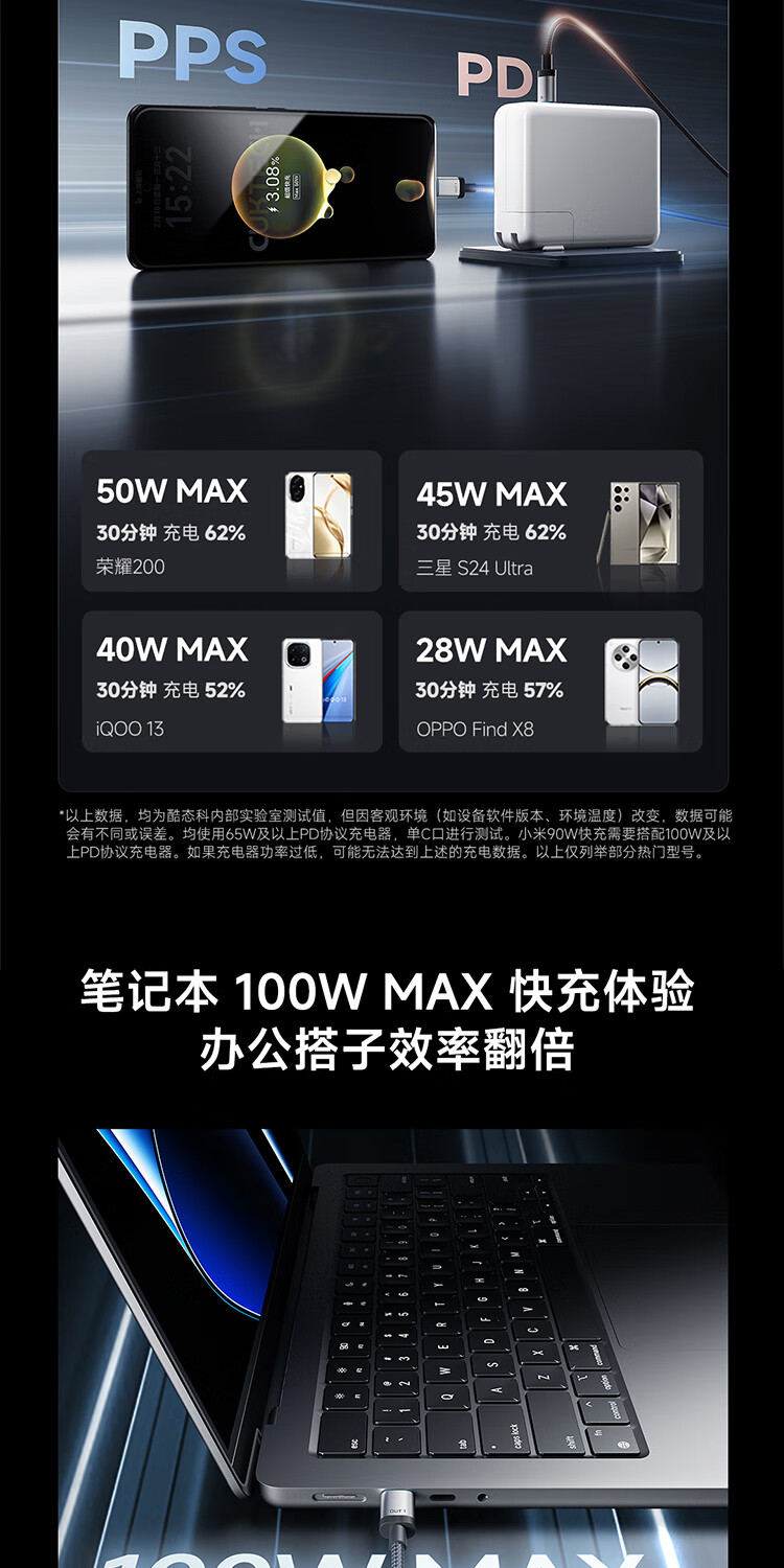 图拉斯100W小冰充Turbo-X【官 方 正 品】氮化镓充电器套装苹果17华为手机笔记本电脑多口Type-C块充头