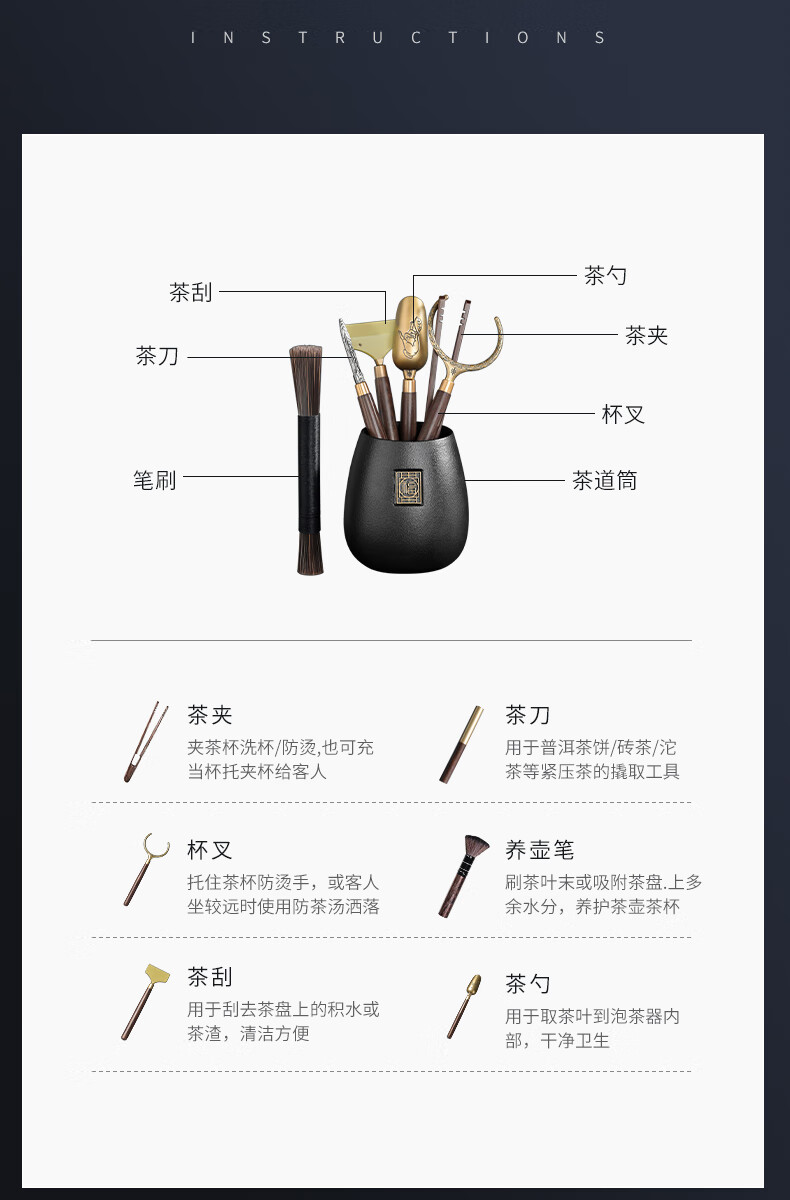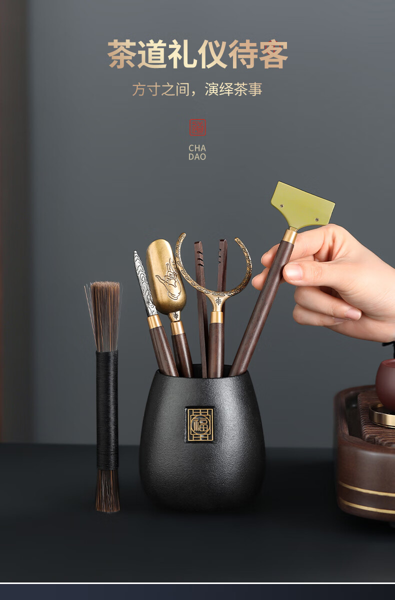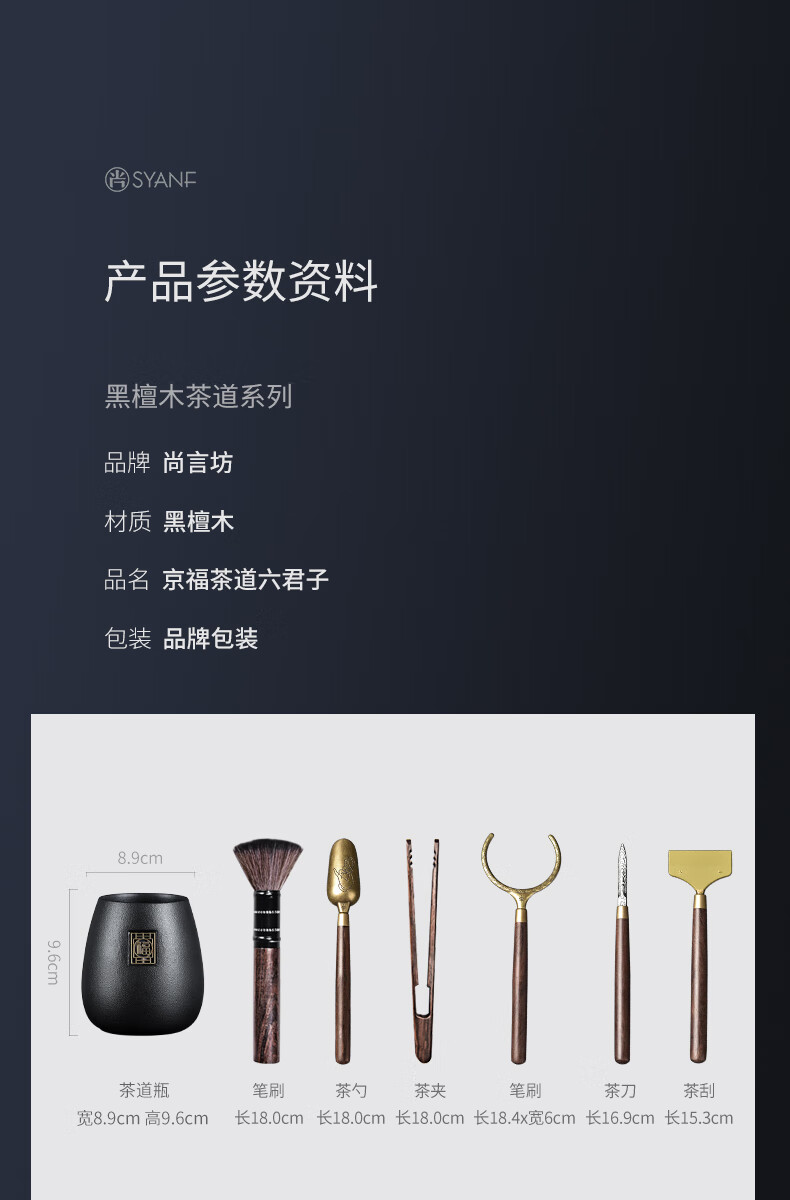 尚言坊茶道六君子套装茶夹子茶刀茶勺茶针茶盘刮杯叉养壶笔功夫茶具配件
