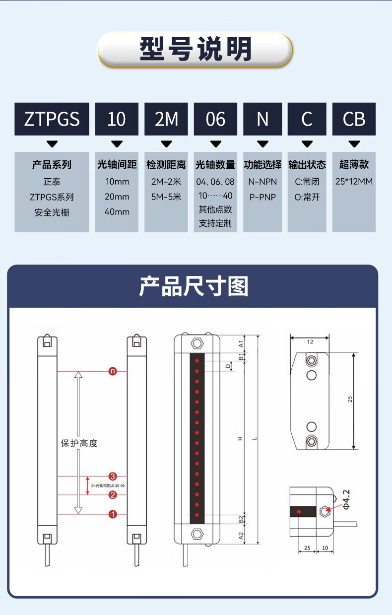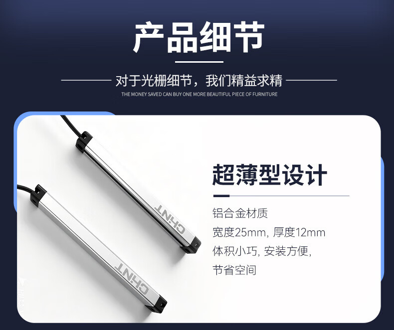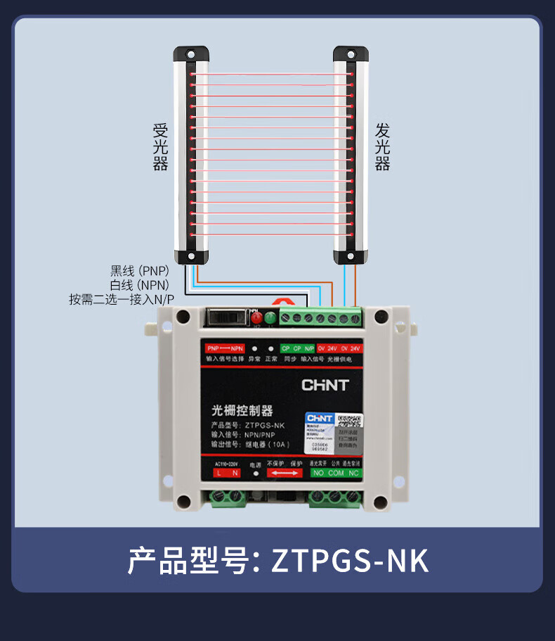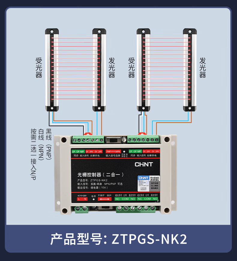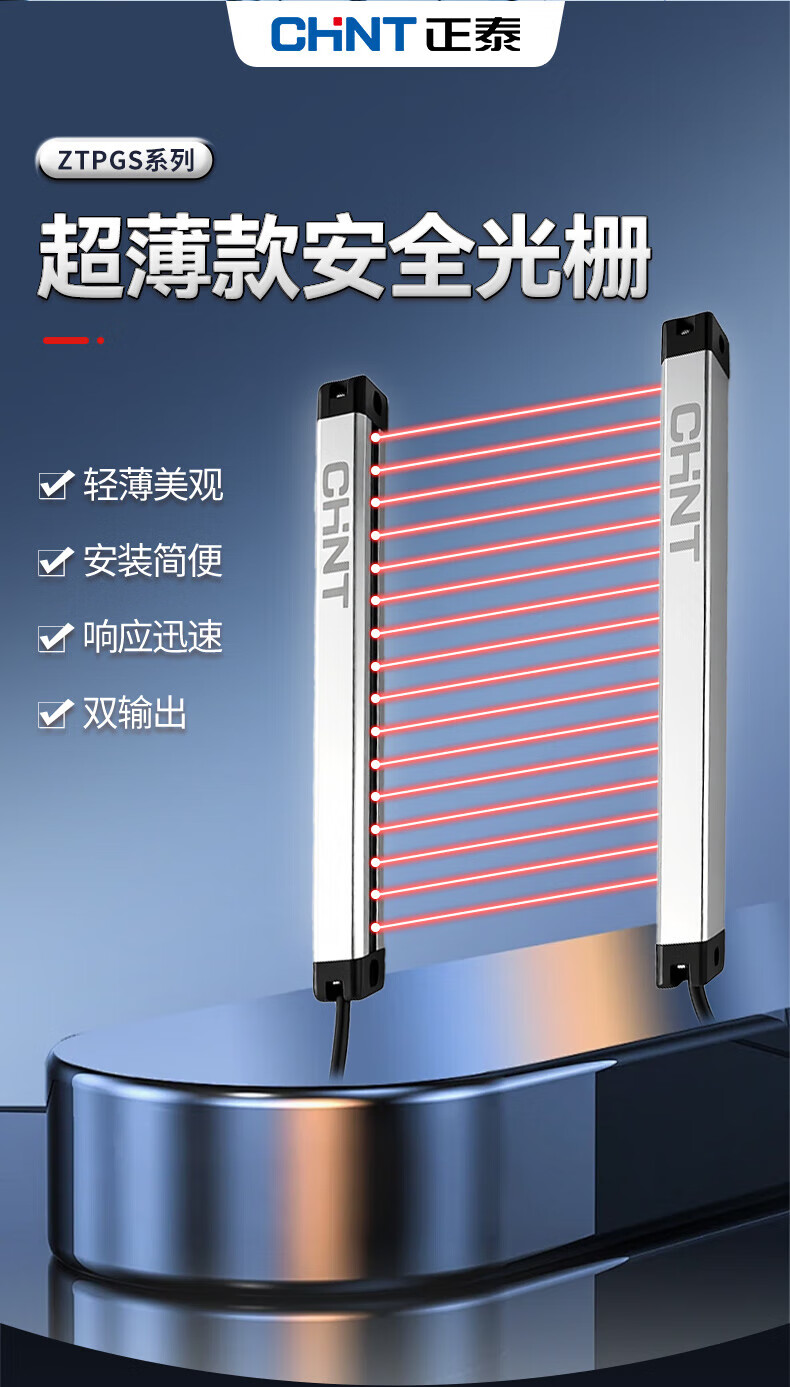 正泰(CHNT)安全光栅光幕 超薄冲床液压机注塑机保护器 常开探测器常开款 4束光轴 10MM光轴间距检测(薄常开款)