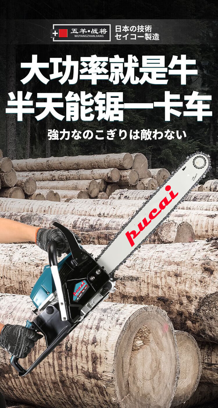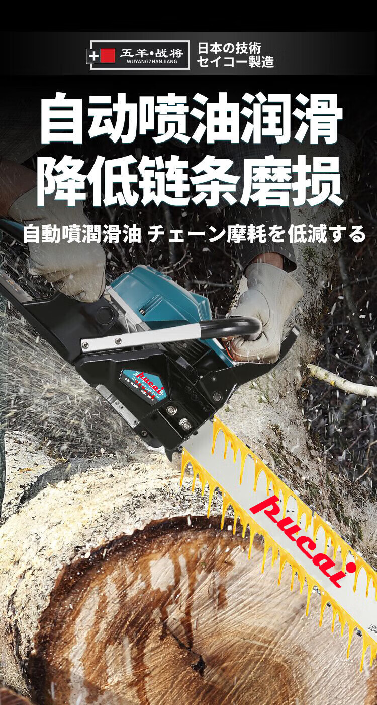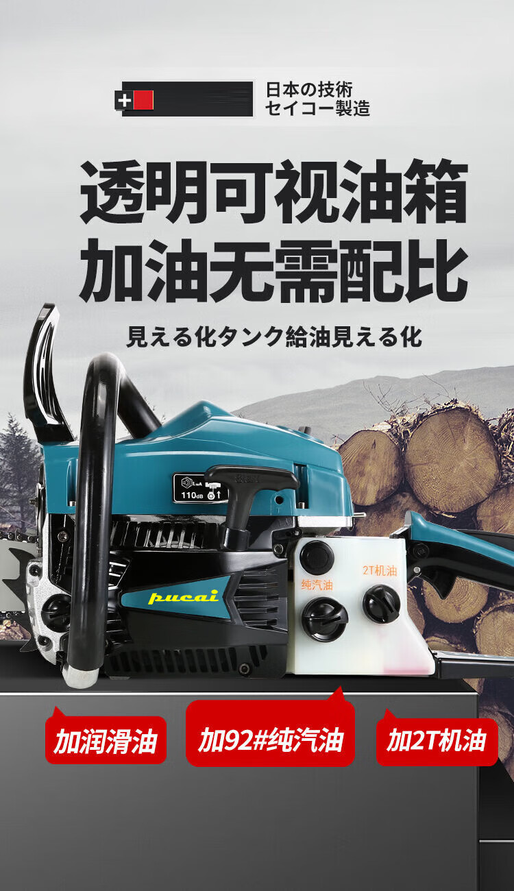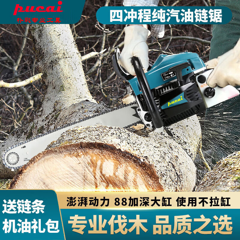 PUCAI日本进口雅马哈技术大功率四冲程纯汽油油锯砍树机汽油锯伐木锯 旗舰款四冲程配2根链条