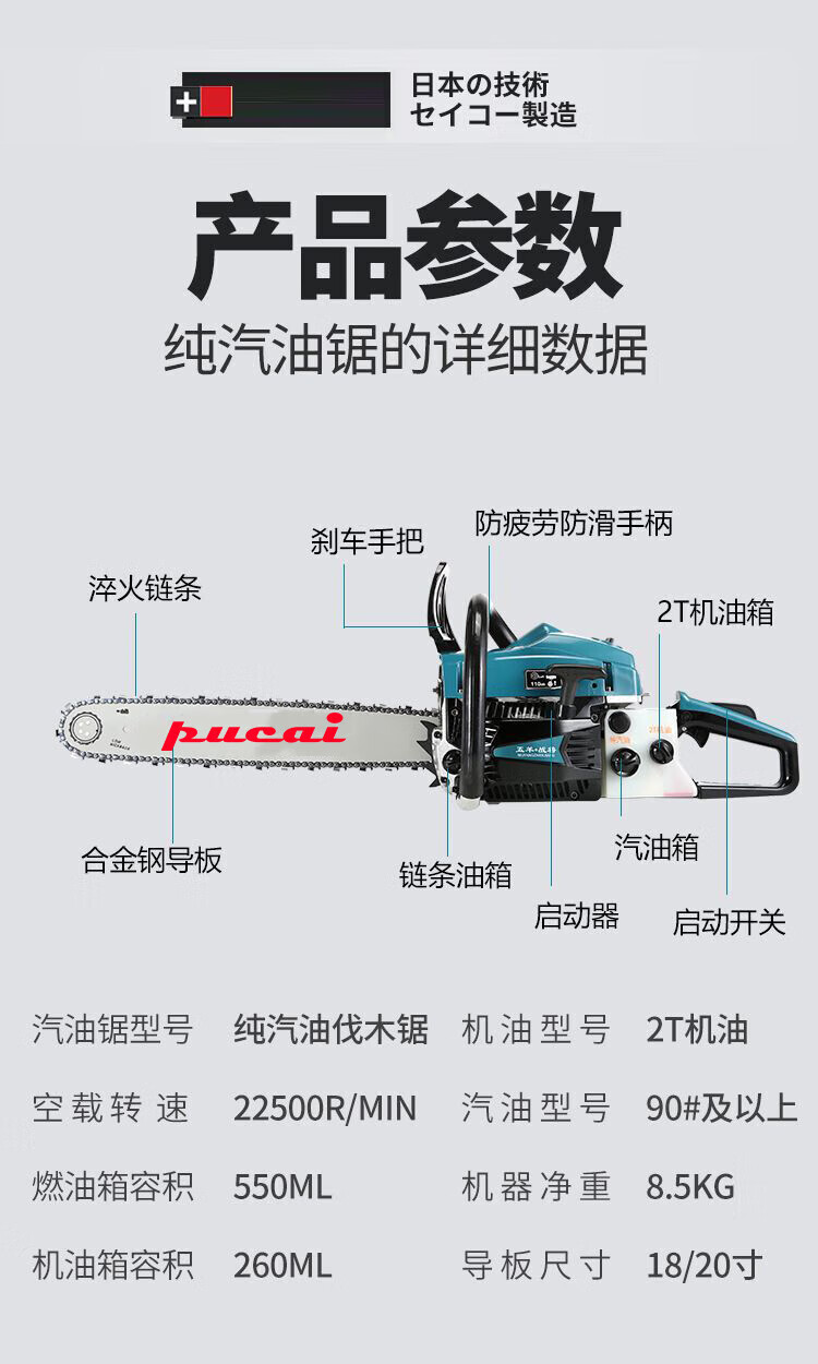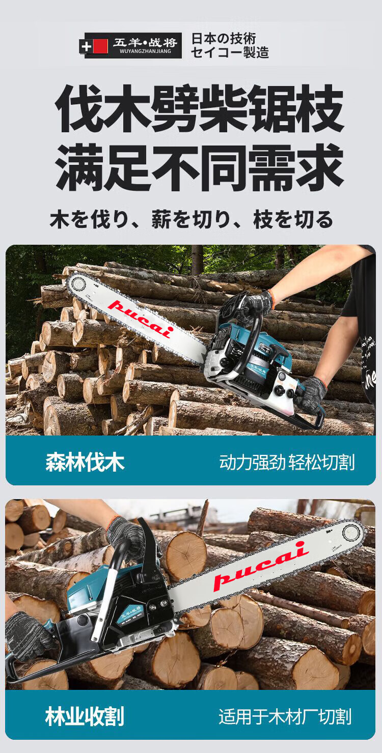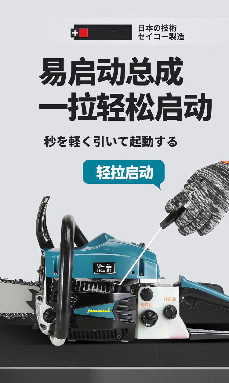 PUCAI日本进口雅马哈技术大功率四冲程纯汽油油锯砍树机汽油锯伐木锯 旗舰款四冲程配2根链条