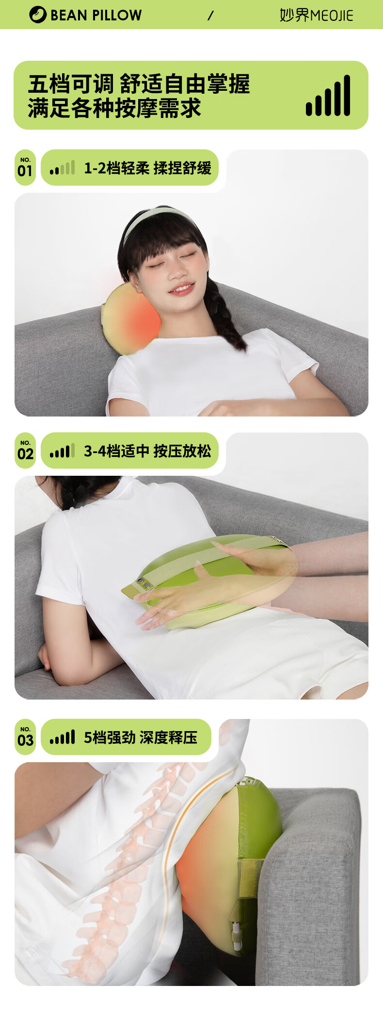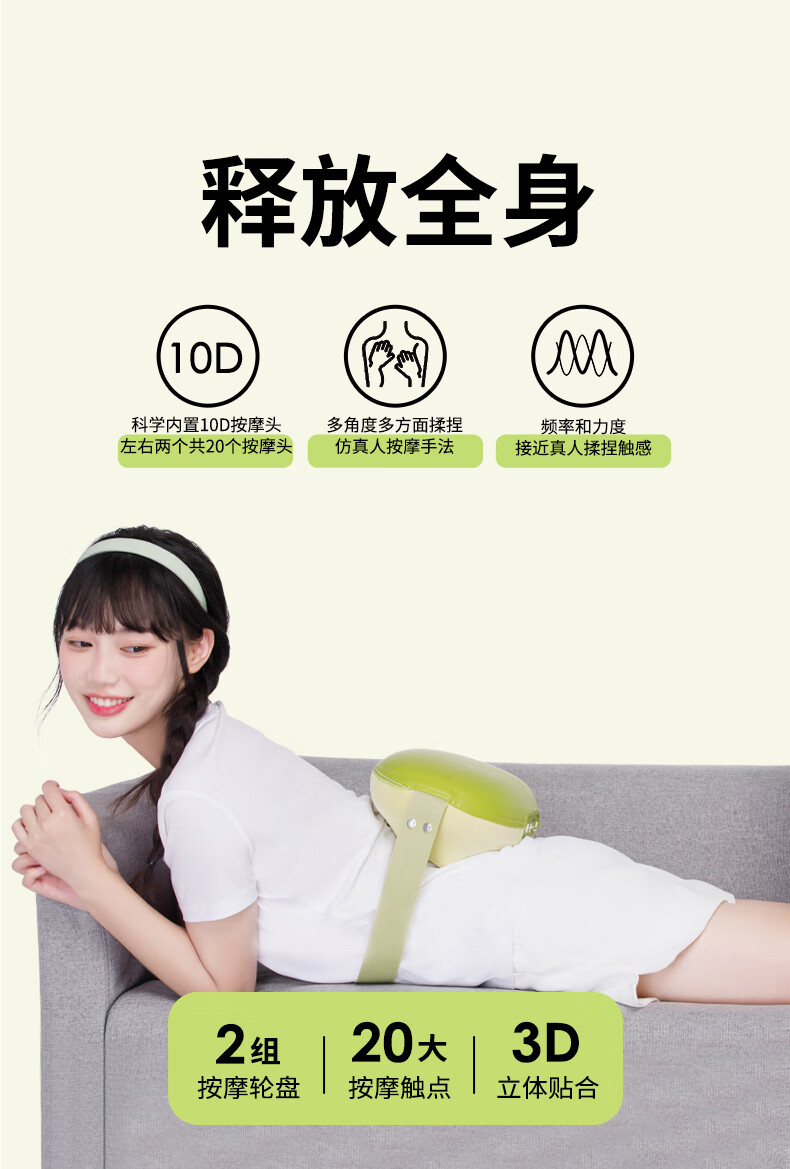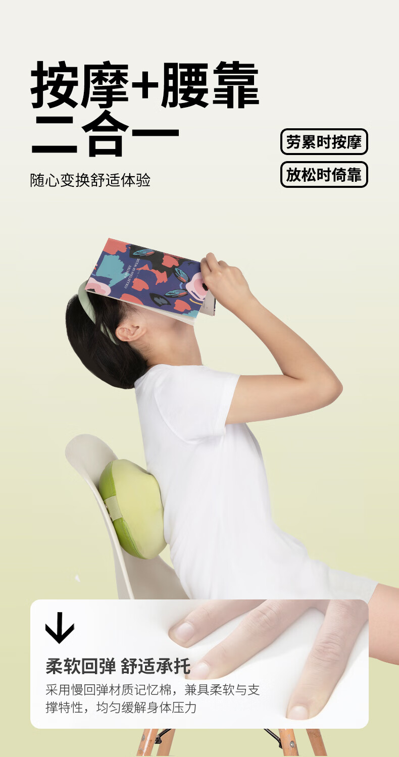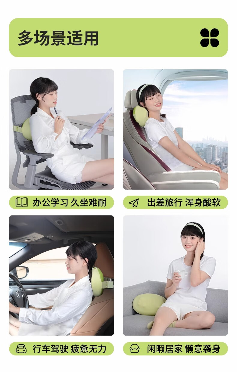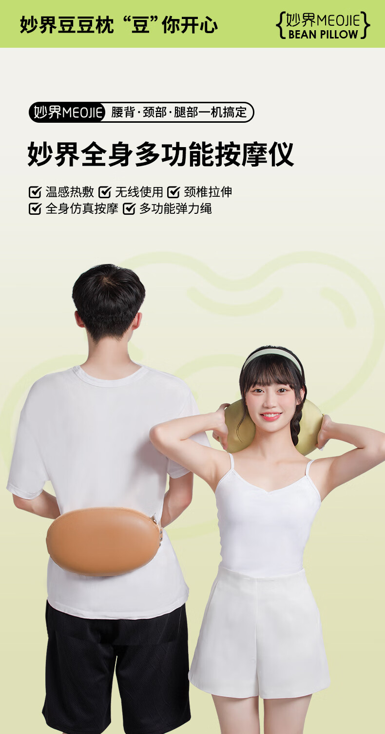 妙界M7腰部按摩器颈椎肩颈按摩仪腰肌劳损靠垫热敷多功能按摩枕送长辈生日礼物送男女友 绿豆枕