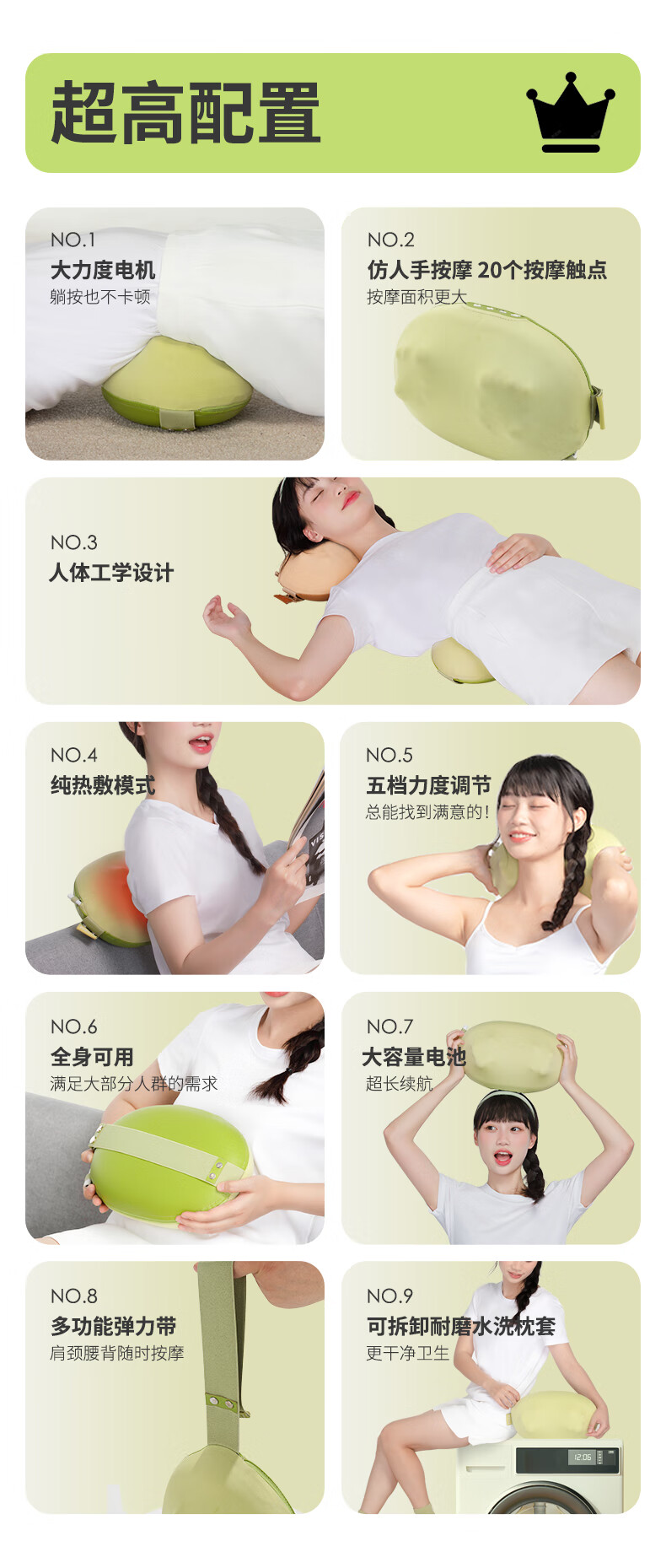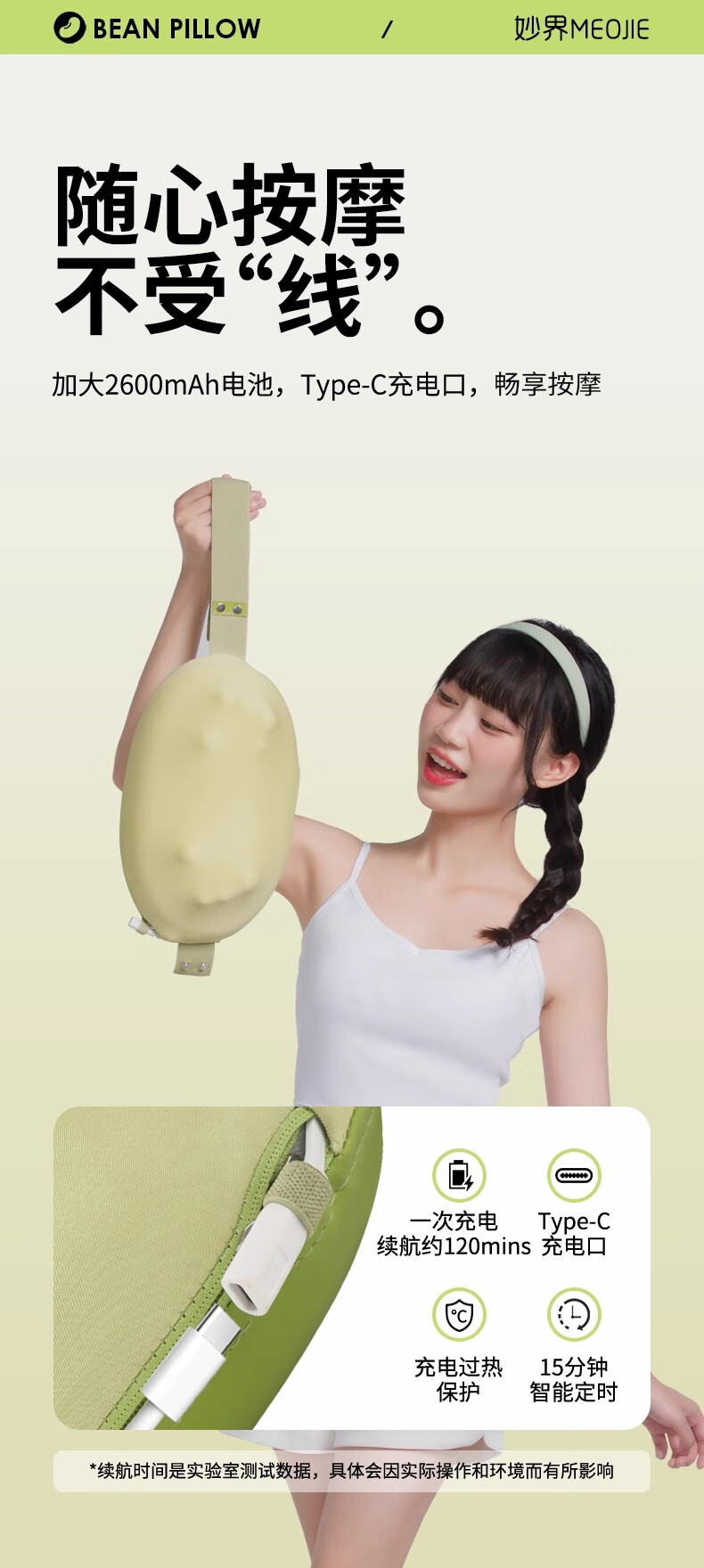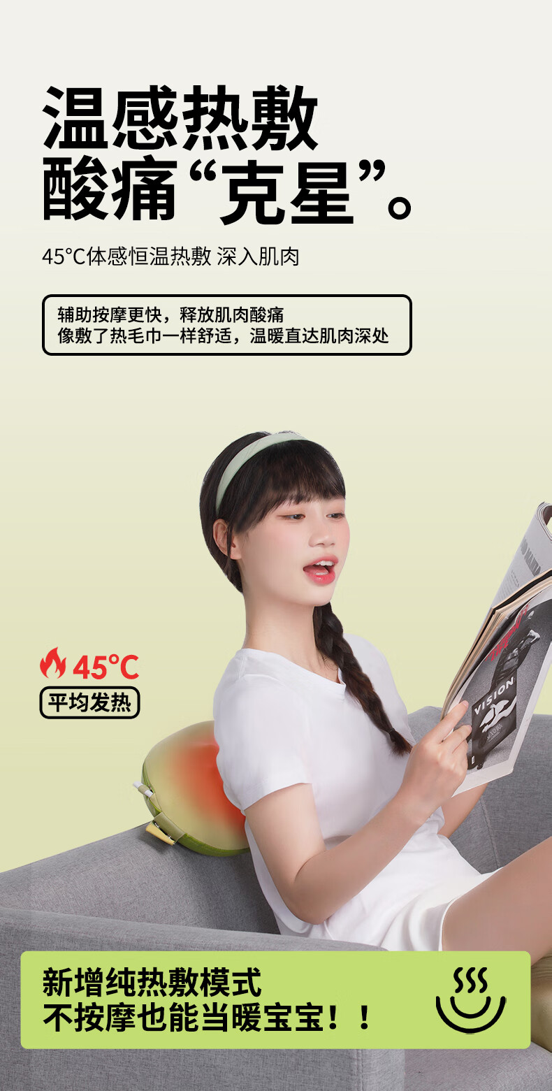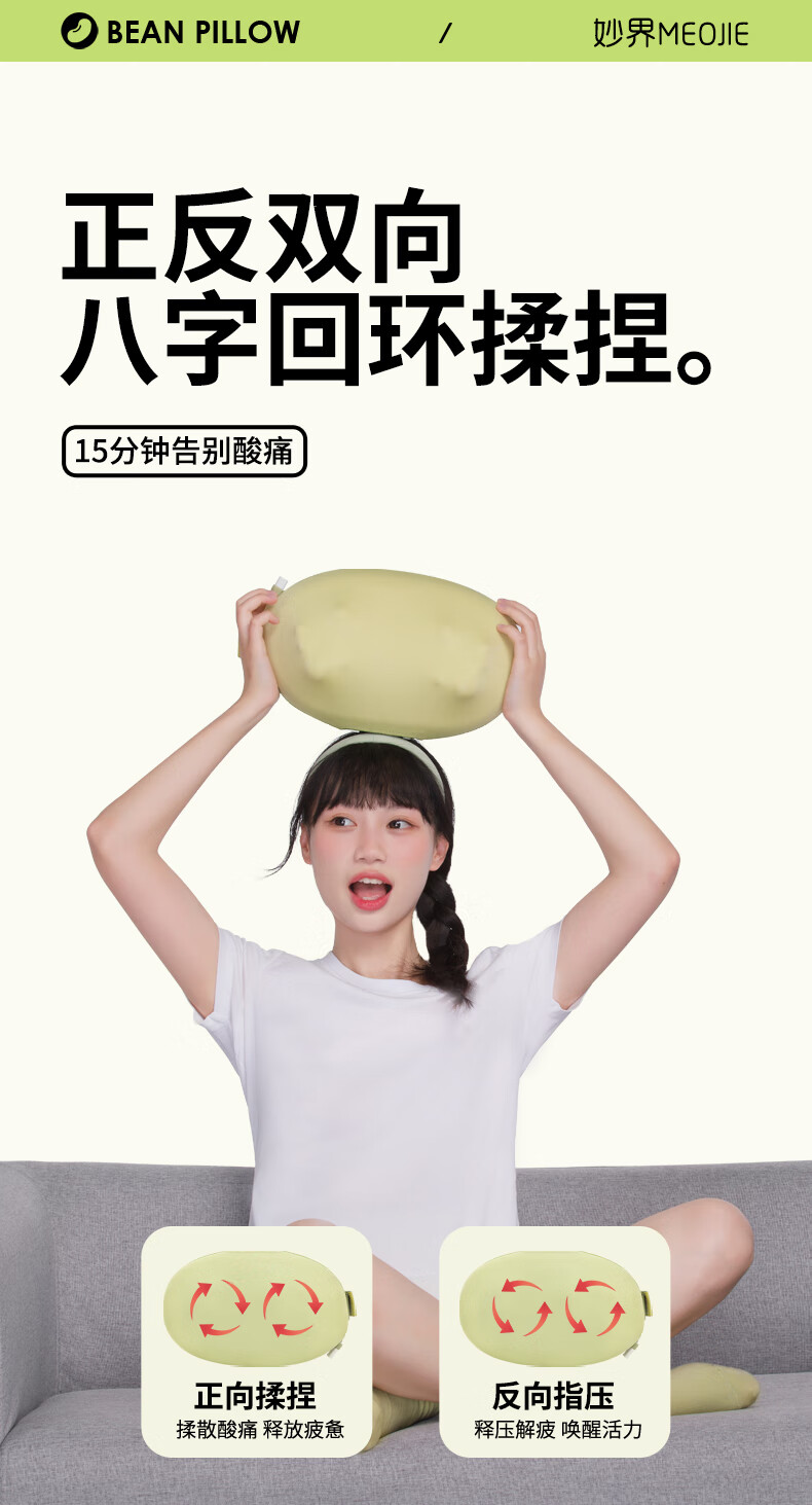 妙界M7腰部按摩器颈椎肩颈按摩仪腰肌劳损靠垫热敷多功能按摩枕送长辈生日礼物送男女友 绿豆枕