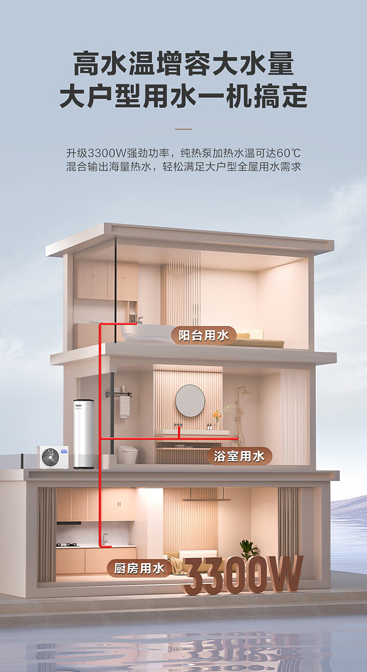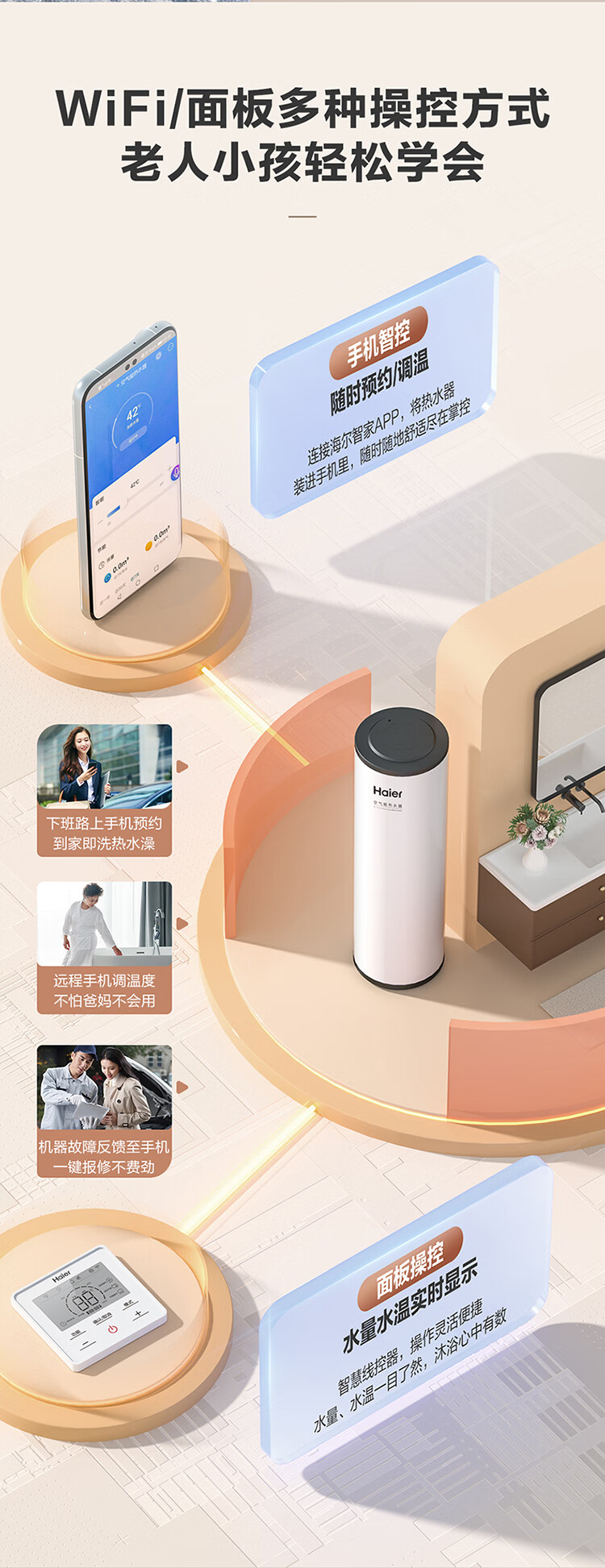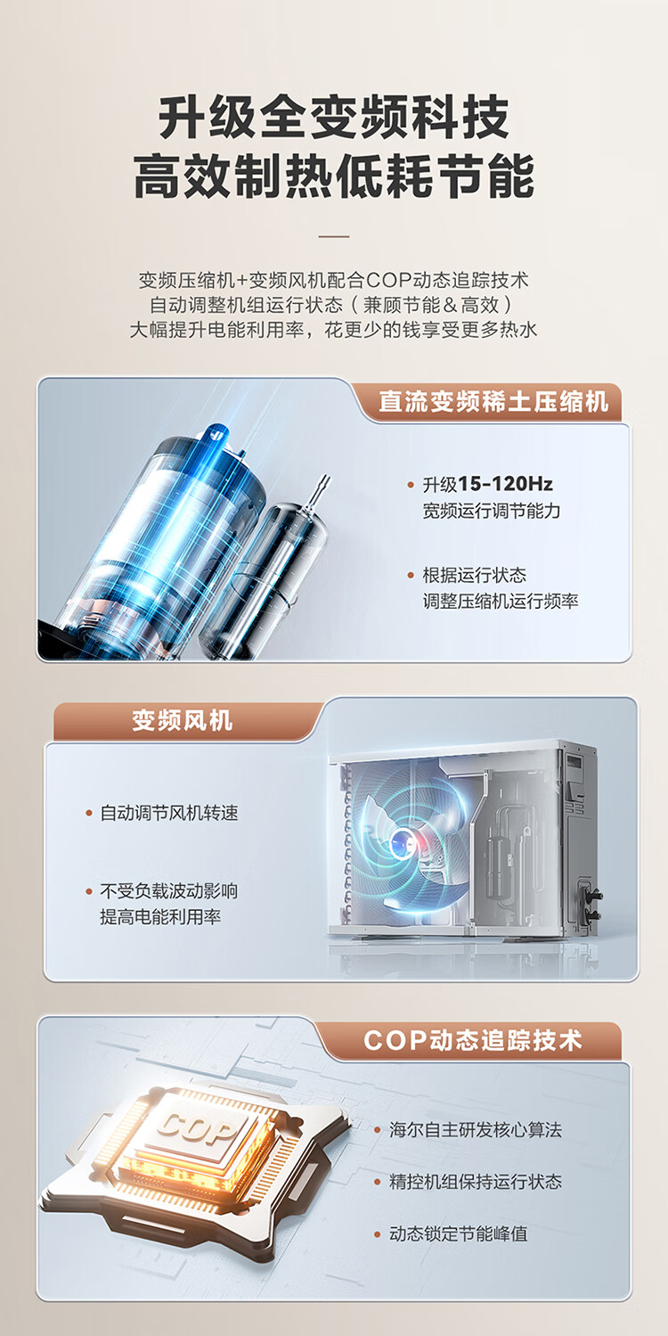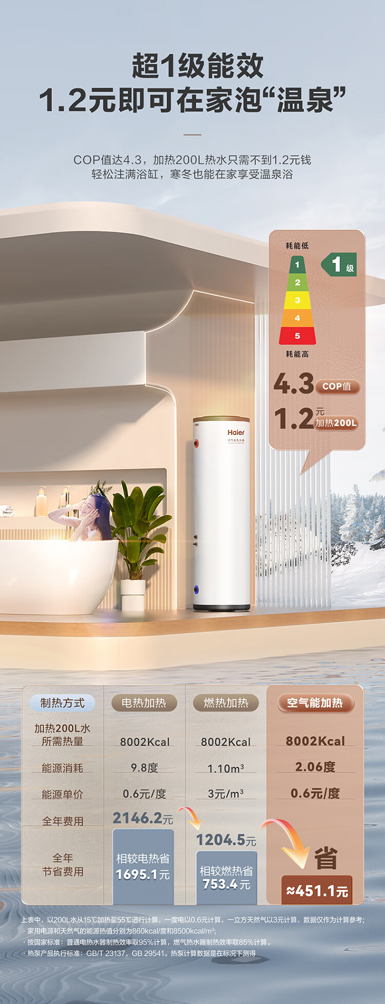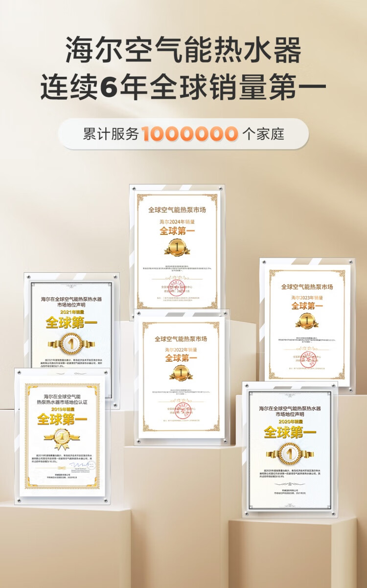 海尔(Haier)空气能热水器200升热泵超一级能效变频省电高效速热1.5匹电辅80℃高水温R32冷媒 KF200-A2F7AU1