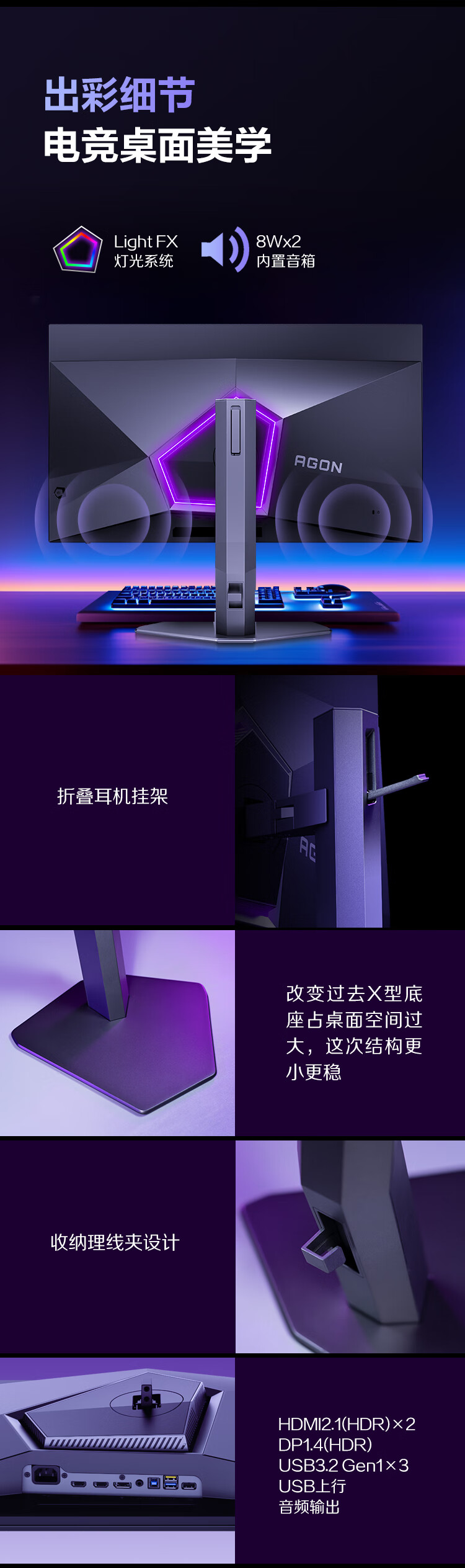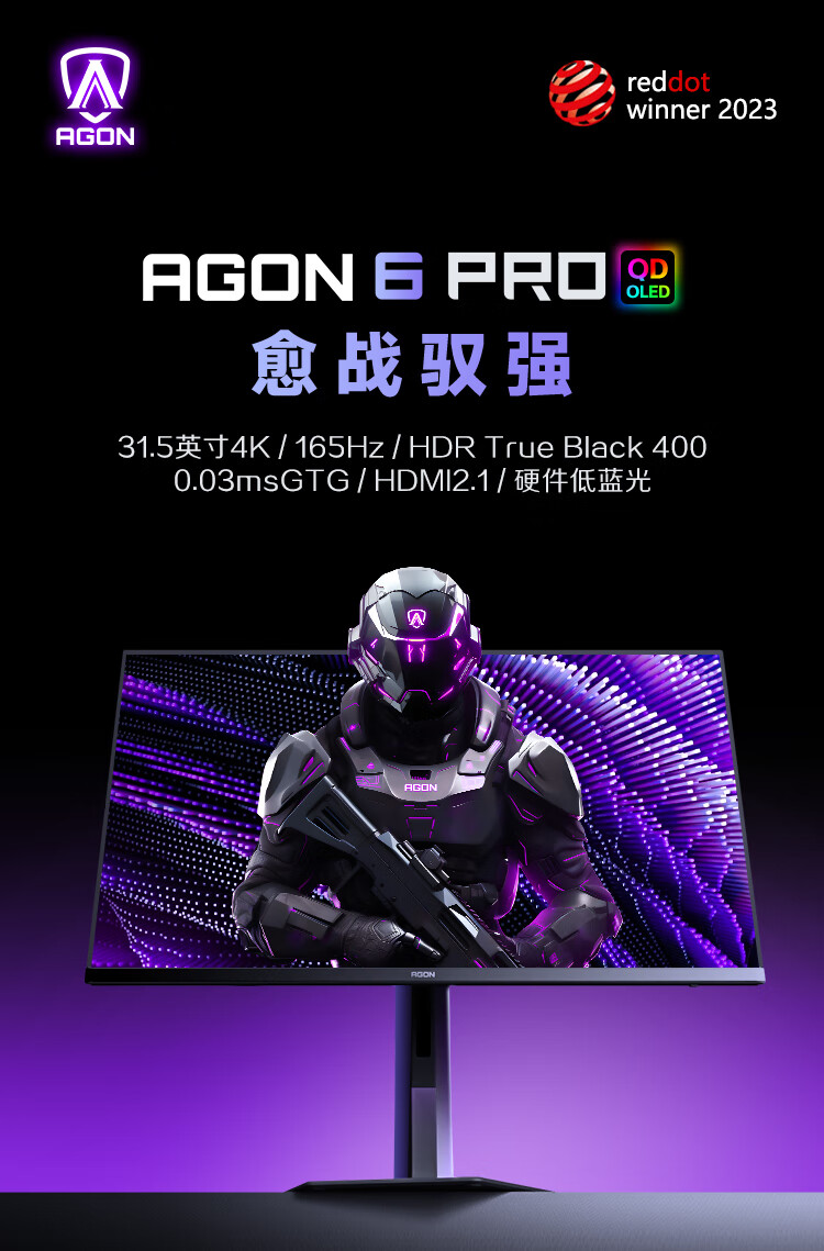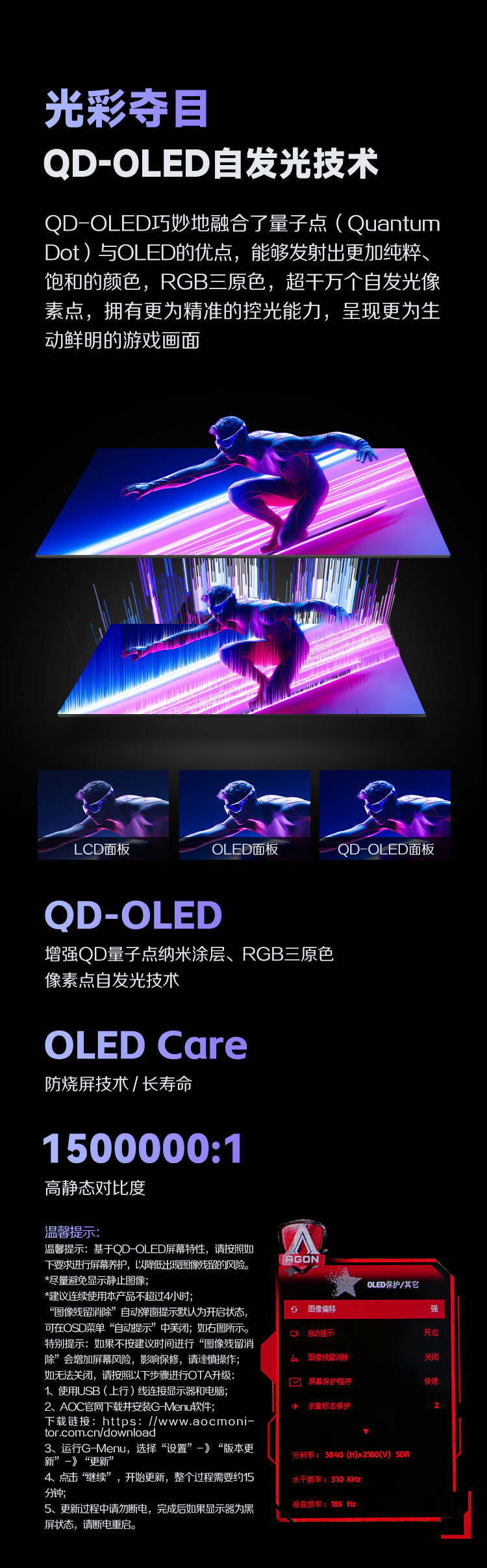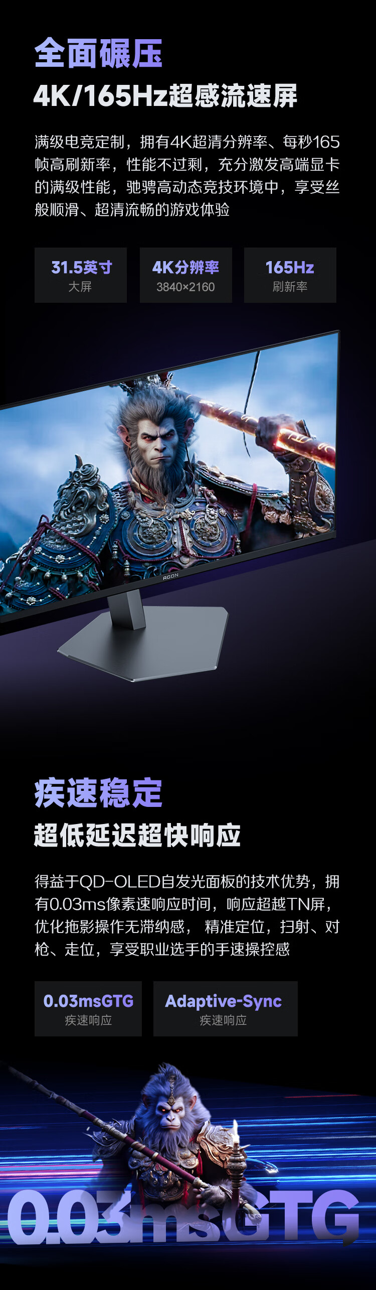 AOC 爱攻31.5英寸4K QD-OLED 165Hz 0.03ms 原生10bit 硬件低蓝光 8W音响 PS5游戏电竞显示器AG326UD