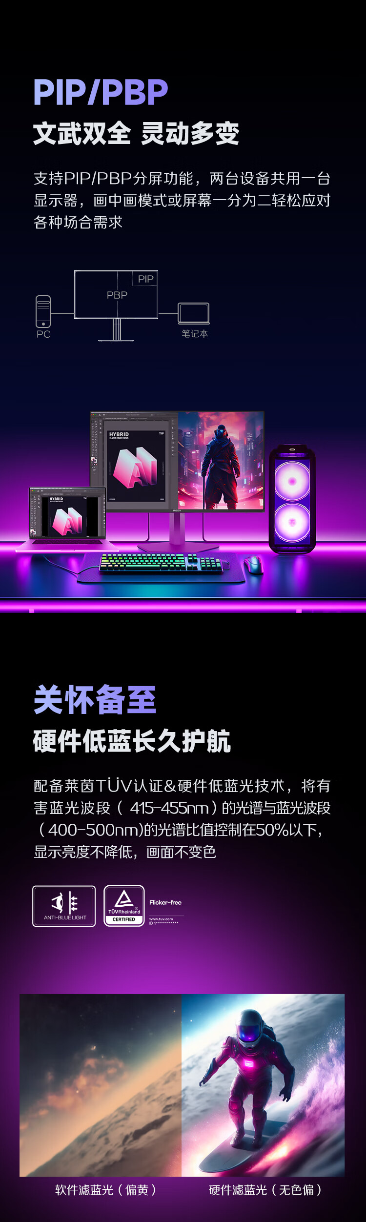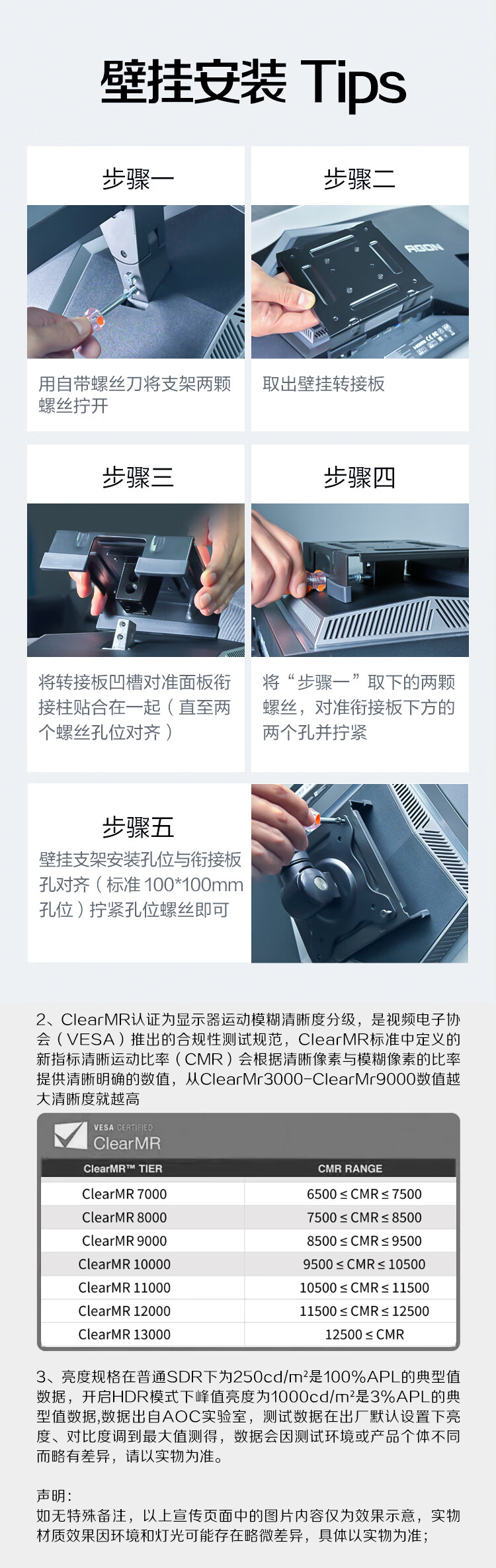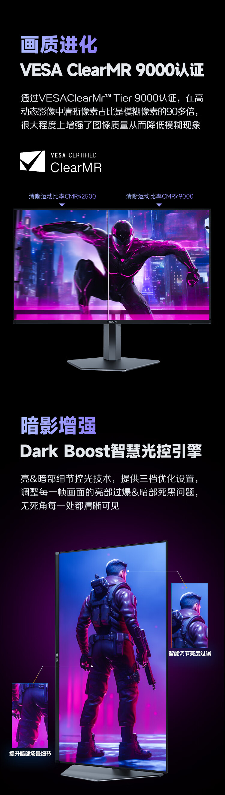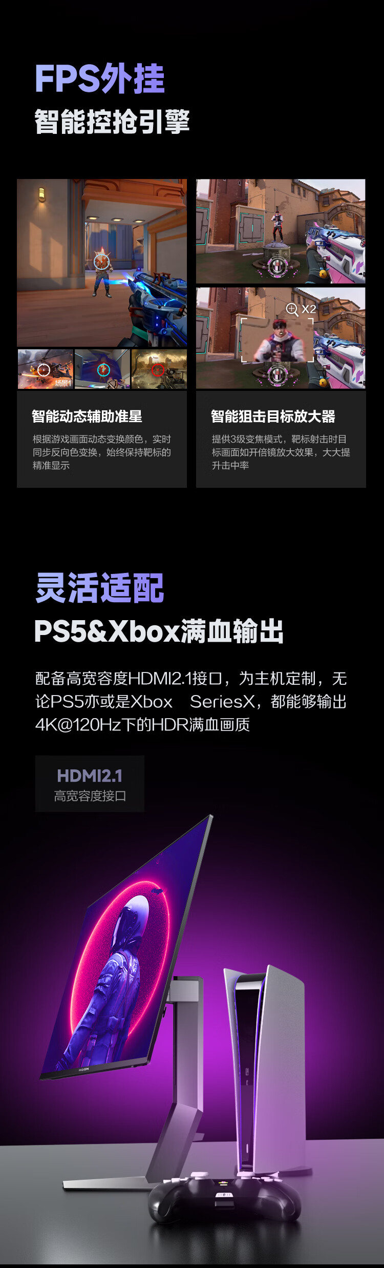 AOC 爱攻31.5英寸4K QD-OLED 165Hz 0.03ms 原生10bit 硬件低蓝光 8W音响 PS5游戏电竞显示器AG326UD