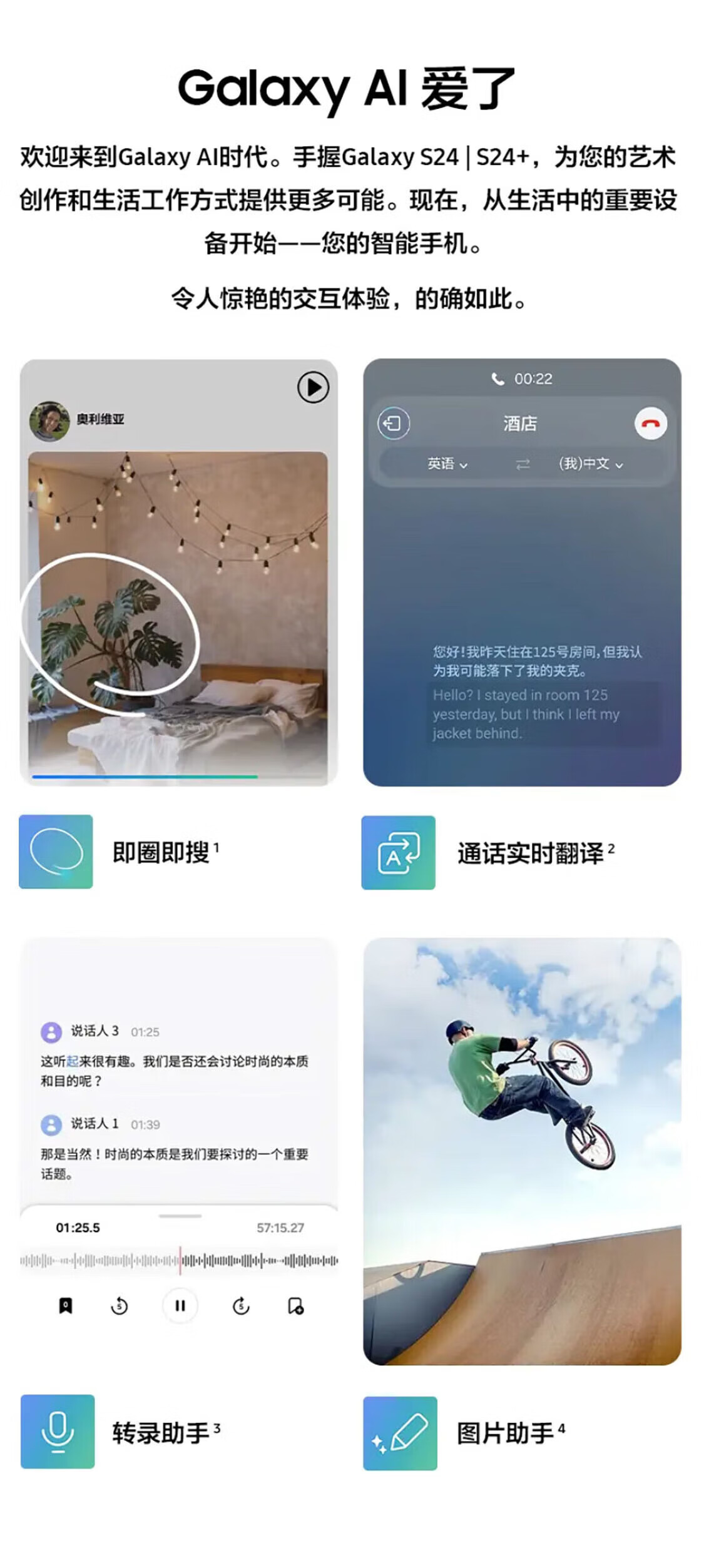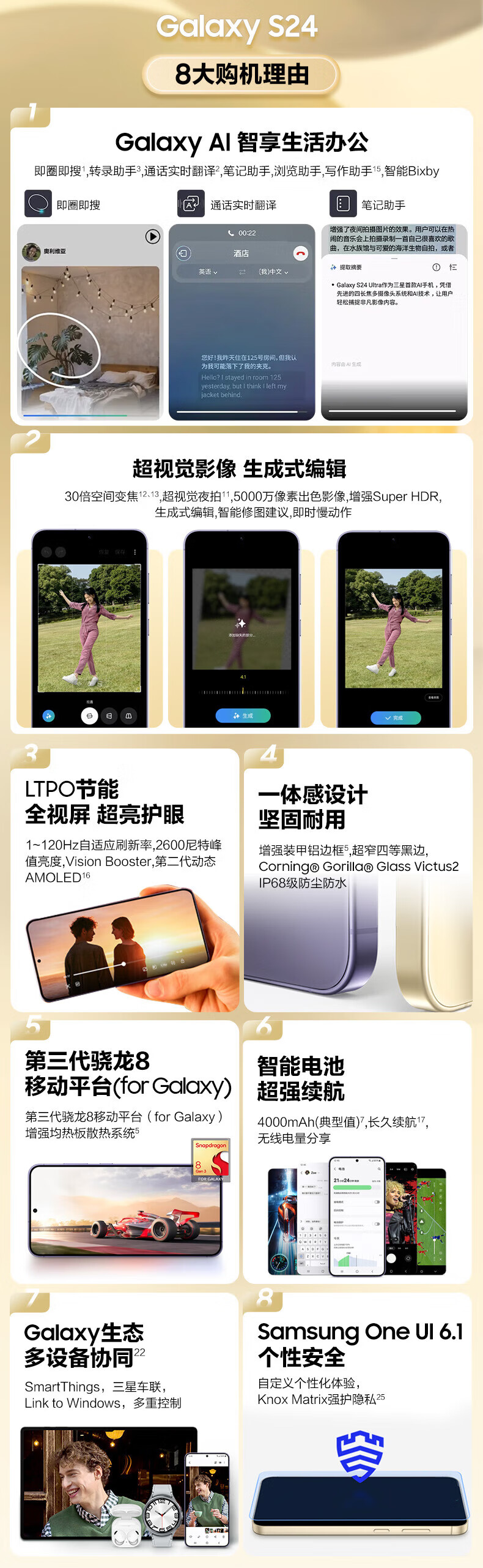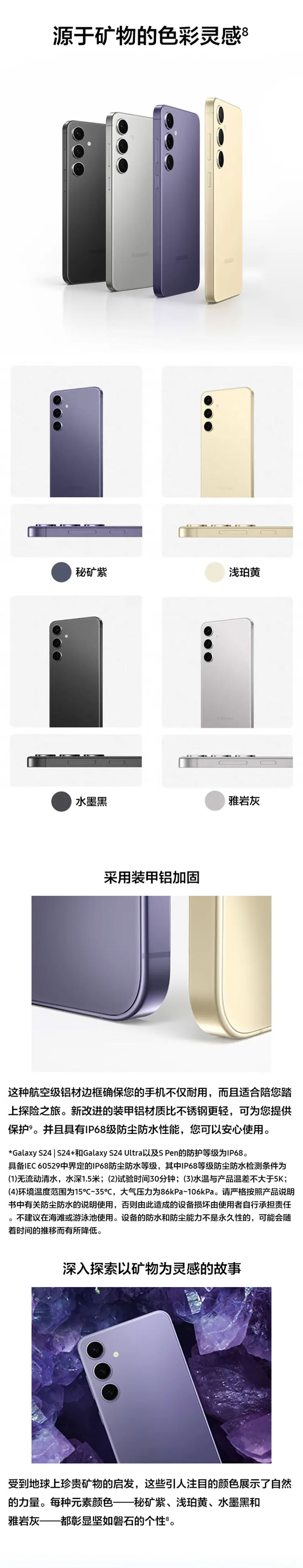 三星(SAMSUNG)Galaxy S24 骁龙8Gen3 增强散热 智享生活 30倍变焦 超视觉夜拍 5G 旗舰手机 水墨黑 12GB+256GB