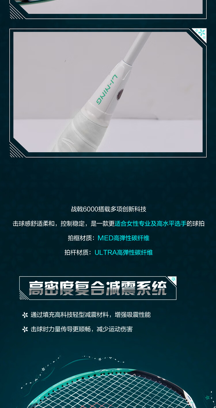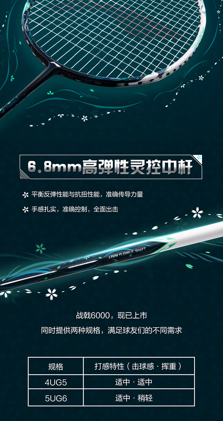 李宁羽毛球拍专业级全碳素战戟6000控制型球拍4U单拍无线AYPU007
