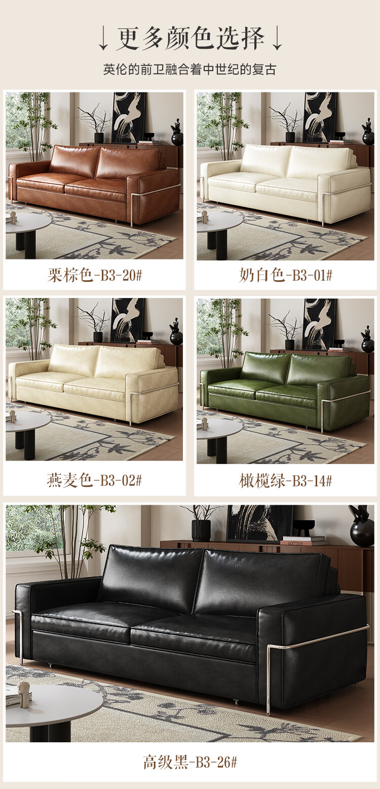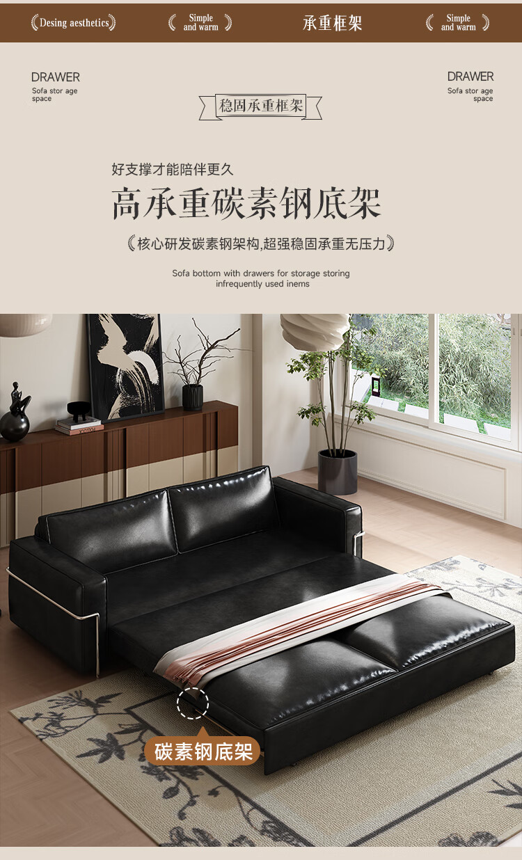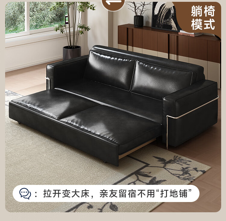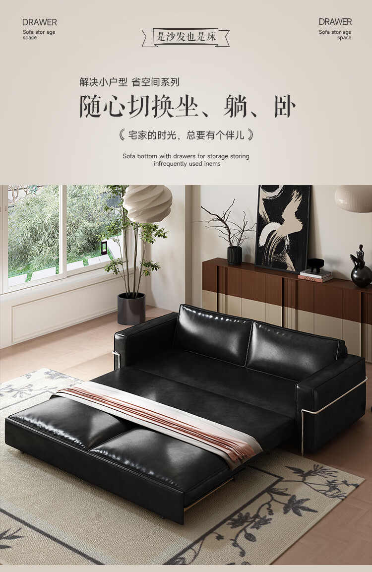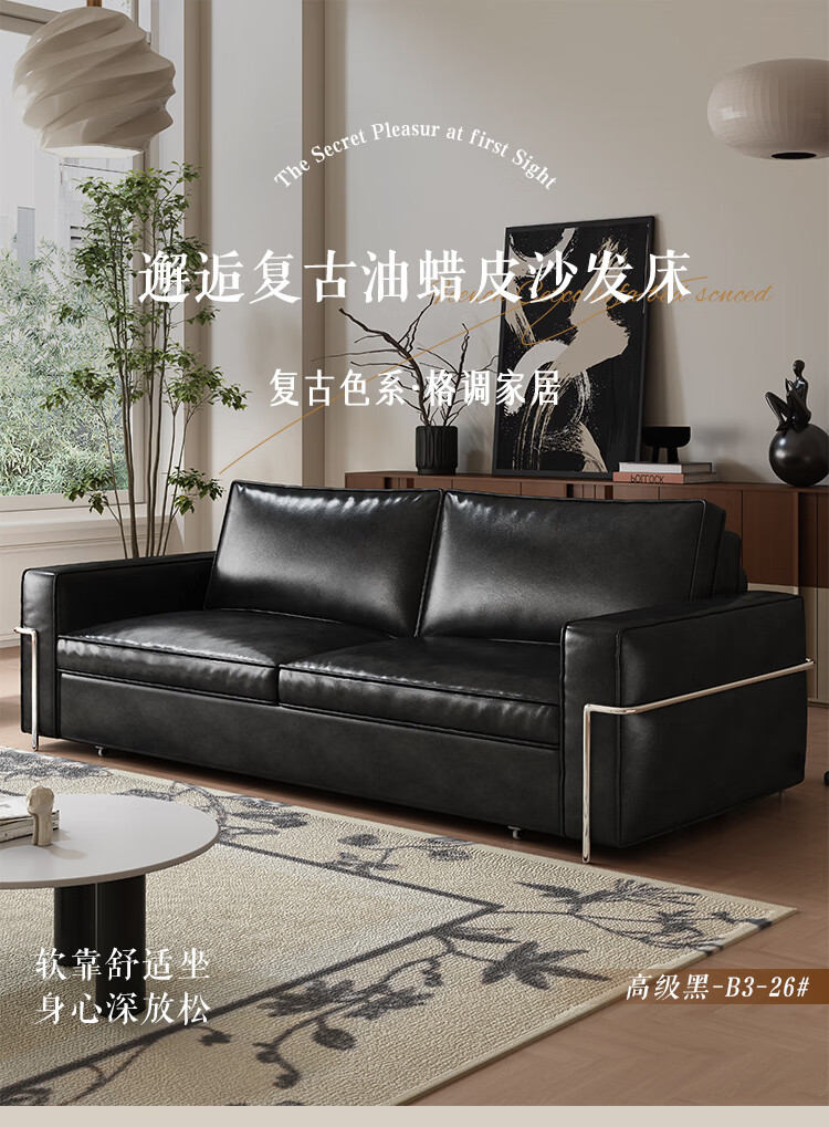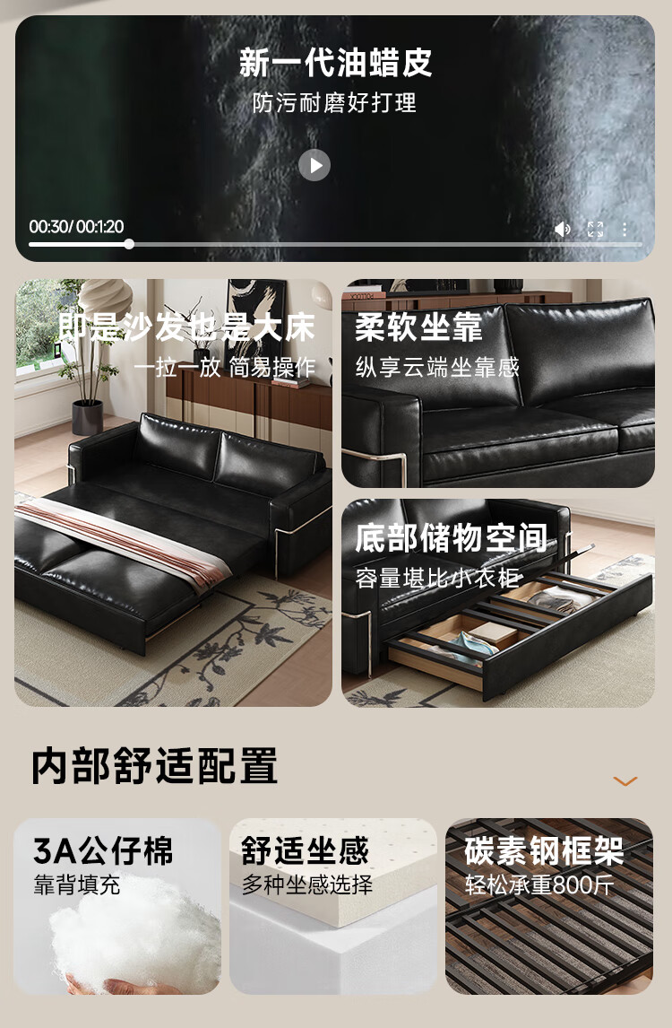 莘联可折叠多功能沙发床两用新款小户型客厅复古风广东佛山油蜡皮沙发 外径:1.3m(无储物)S+级油蜡皮 高弹海绵款(软硬适中)