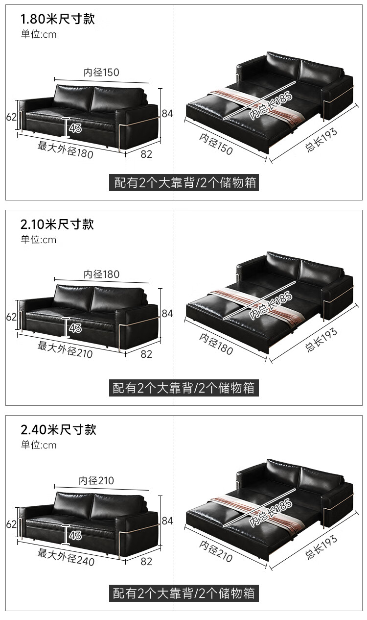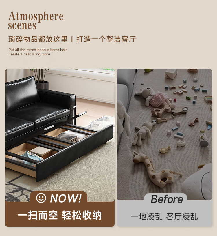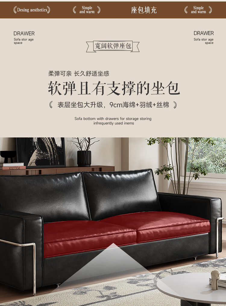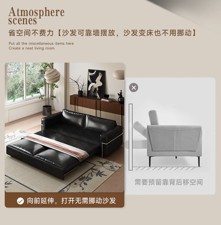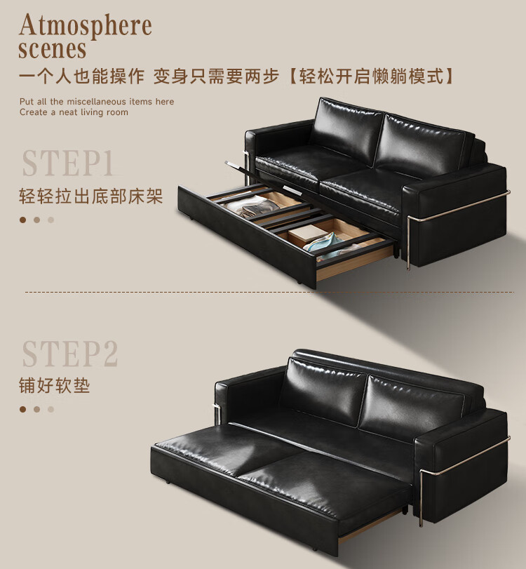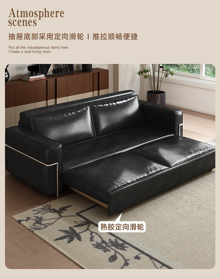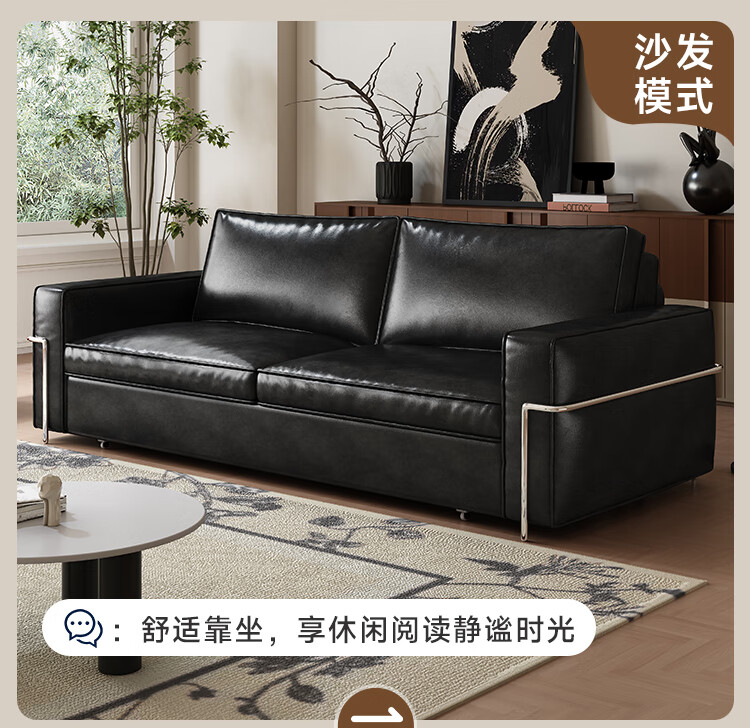 莘联可折叠多功能沙发床两用新款小户型客厅复古风广东佛山油蜡皮沙发 外径:1.3m(无储物)S+级油蜡皮 高弹海绵款(软硬适中)