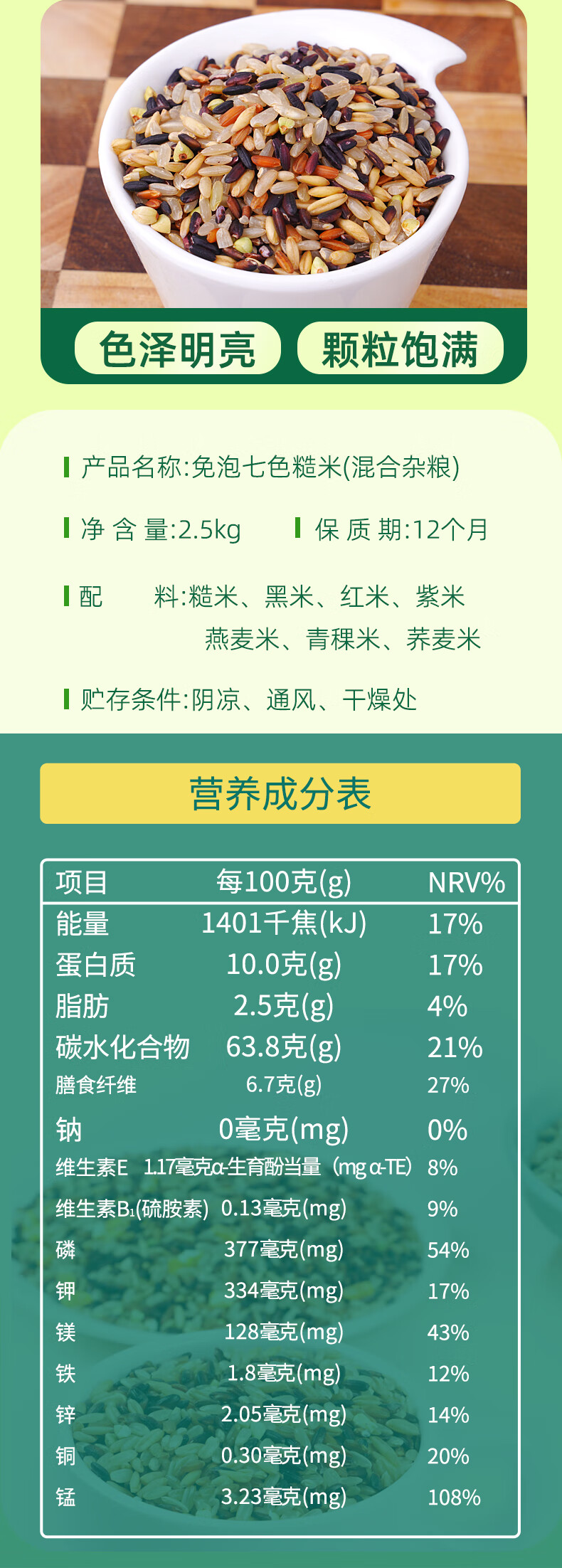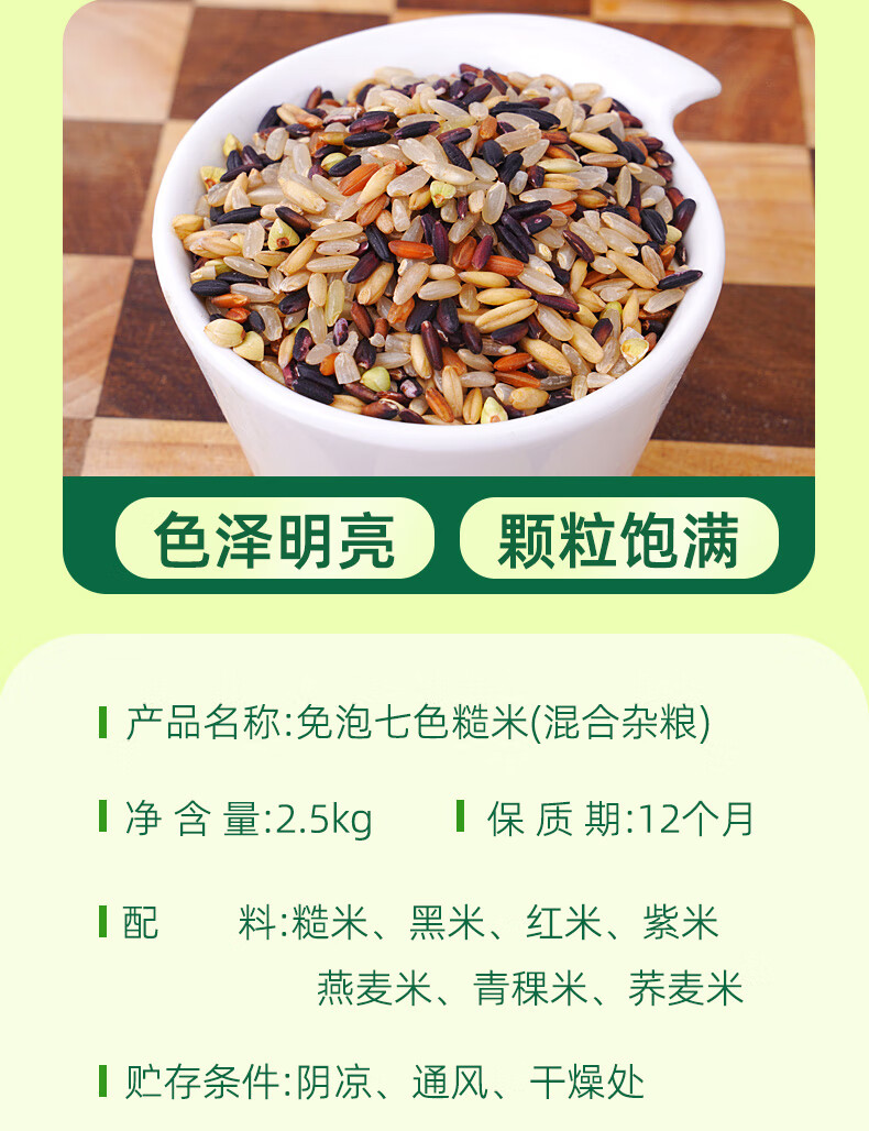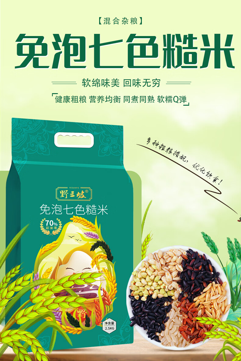野三坡免浸泡七色糙米5斤 燕麦米黑米杂粮省时烹饪