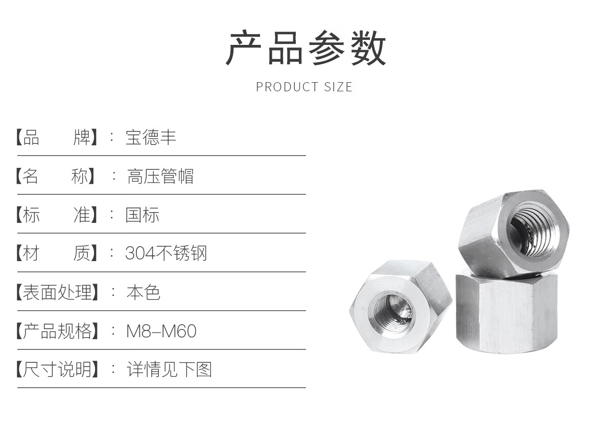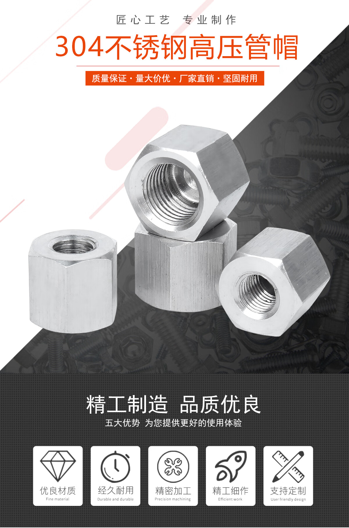 宝德丰304不锈钢高压管帽外六角堵帽细牙闷头管堵封头内丝堵头G管PT堵头 G1/8=1分(DN6)配密封垫(2个)