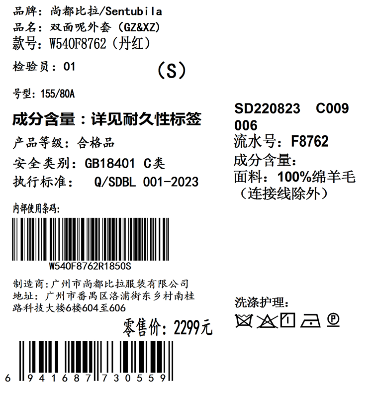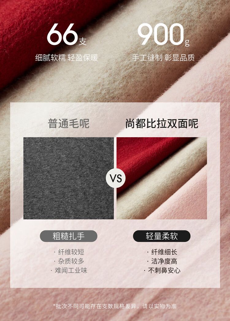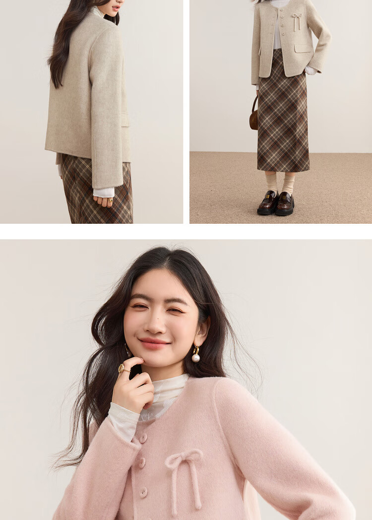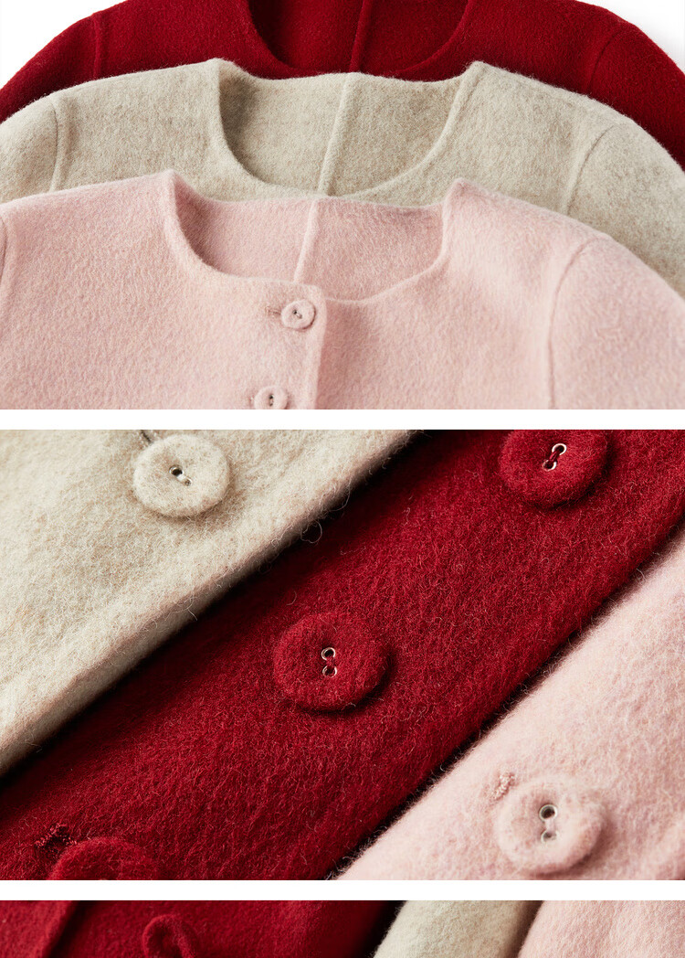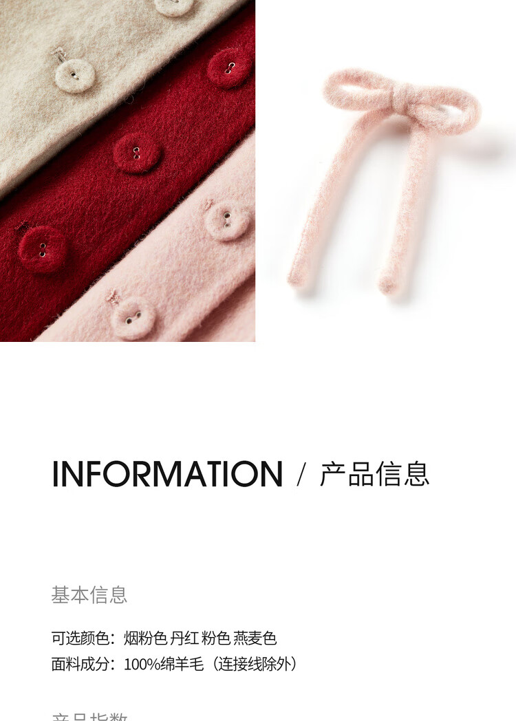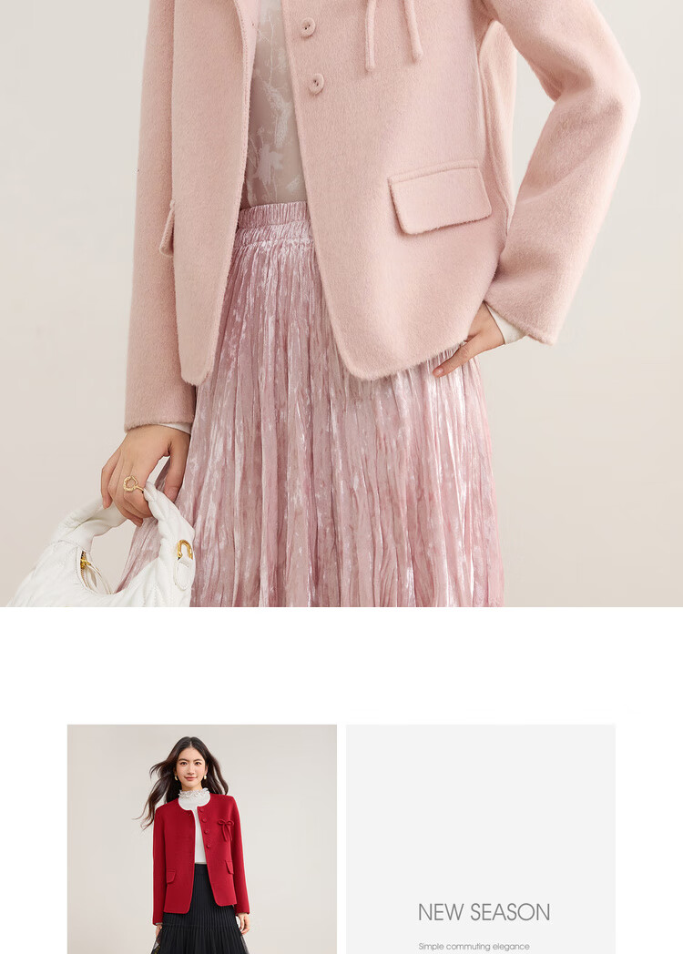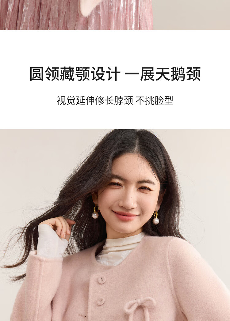 尚都比拉纯绵羊毛保暖毛呢大衣女冬季圆领新中式蝶结双面呢外套长袖大衣