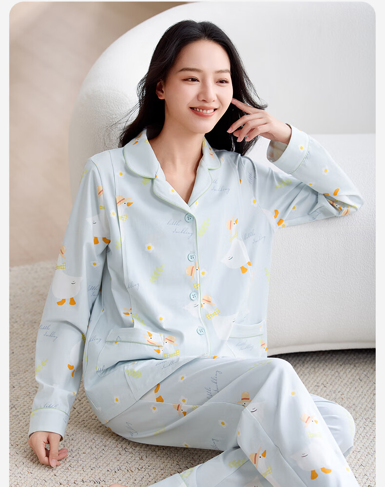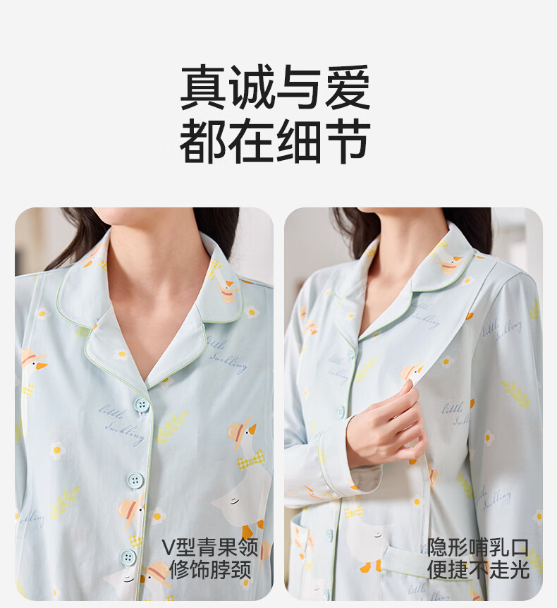 十月结晶月子服秋冬厚款透气孕妇睡衣产后哺乳期产妇家居服套装 雪梨鹅XL
