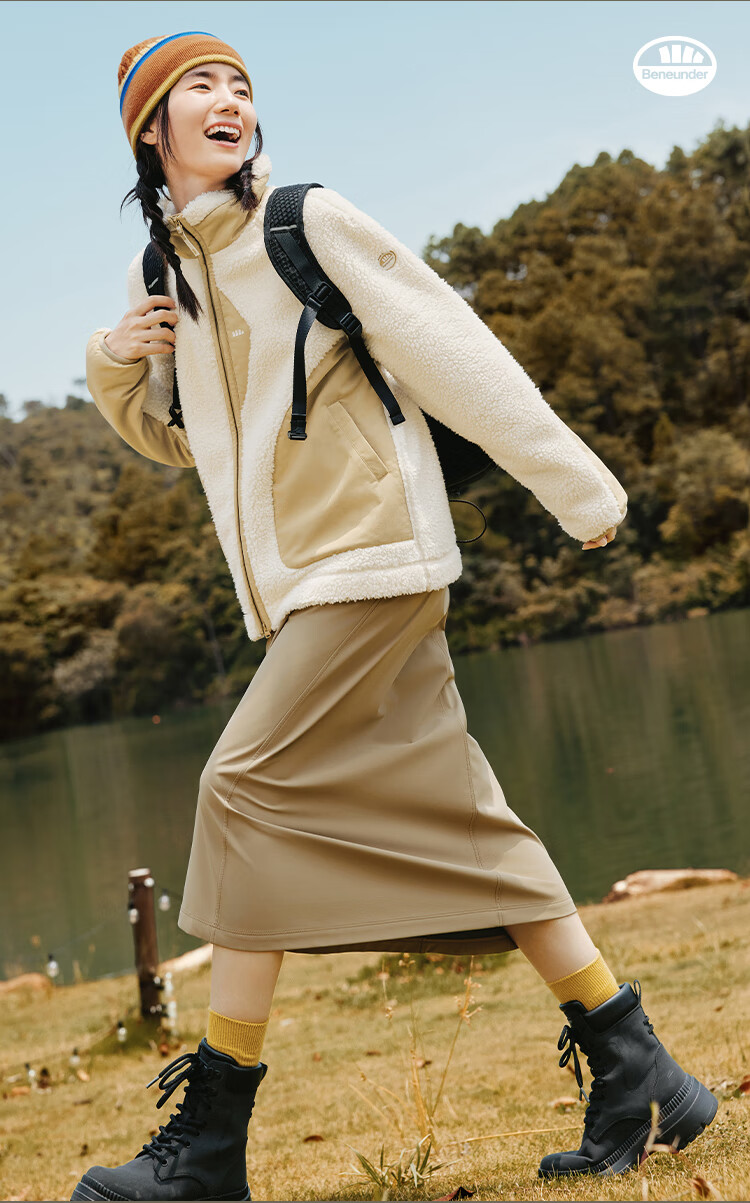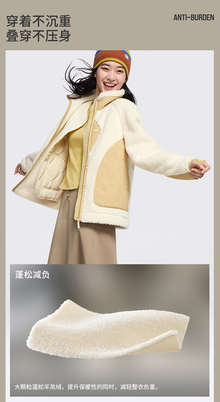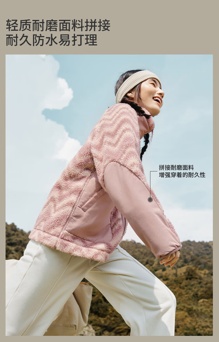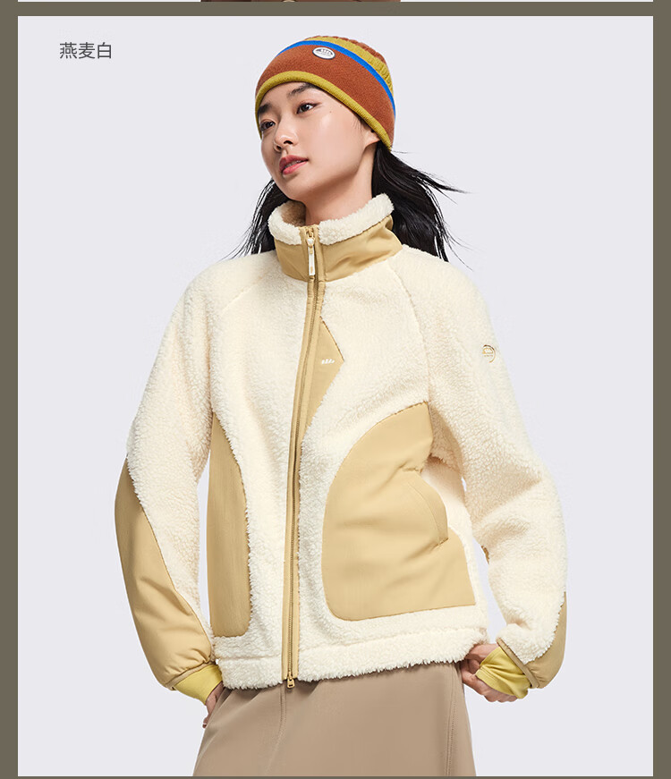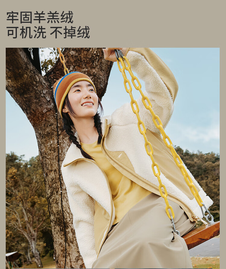 蕉下(beneunder)外套女春秋防风羊羔绒保暖户外运动PO89024燕麦白L