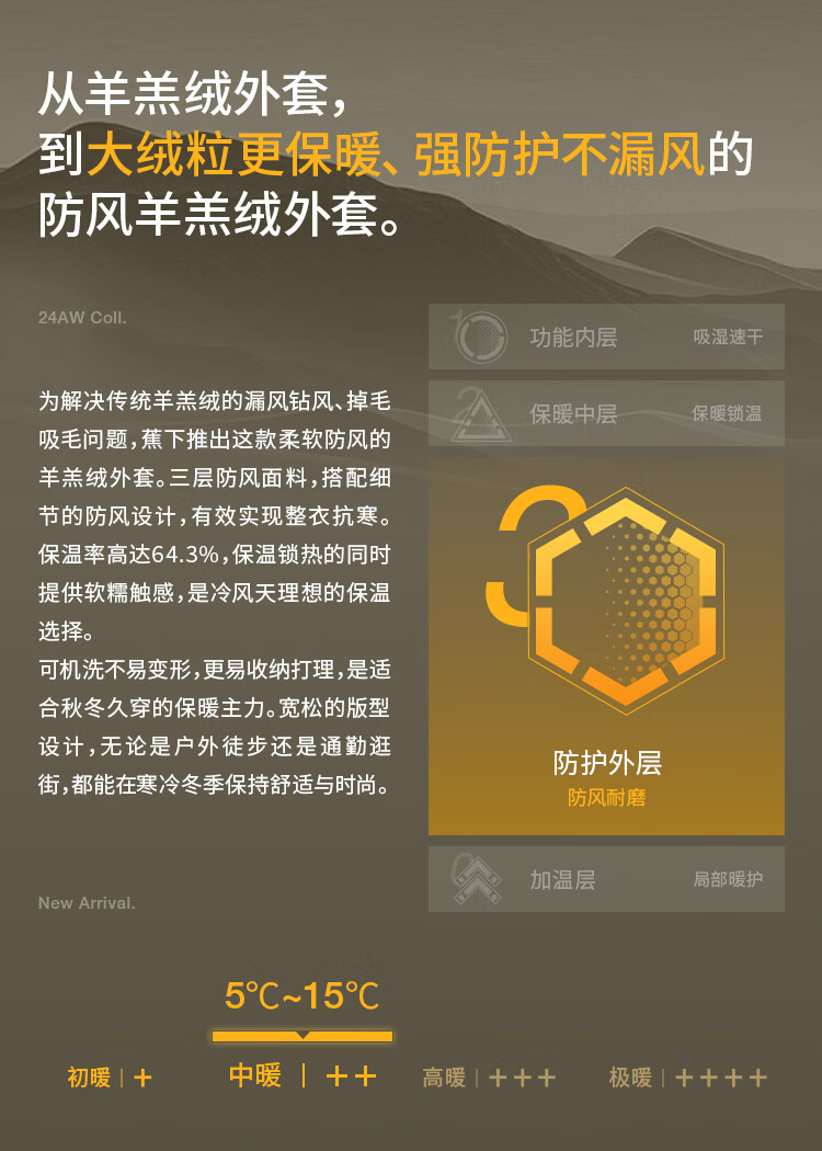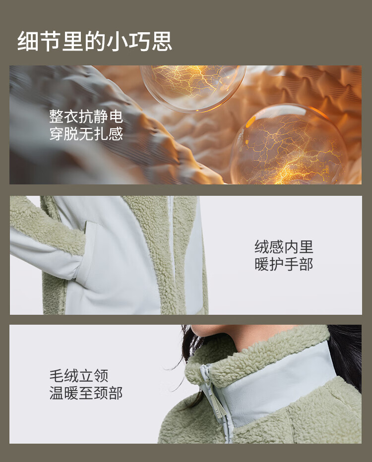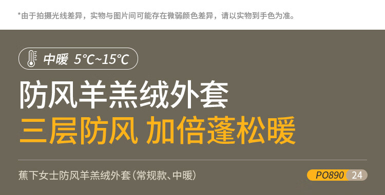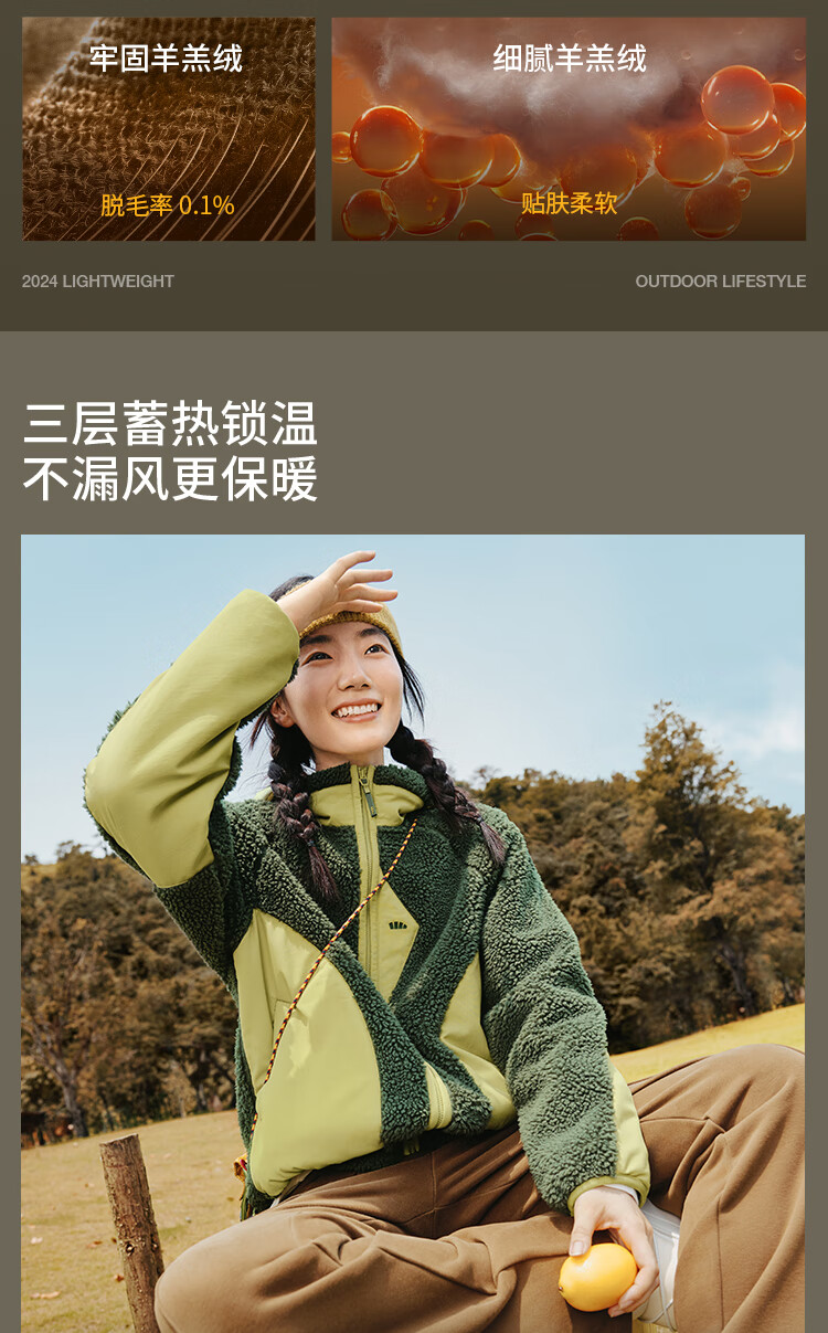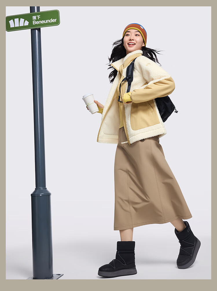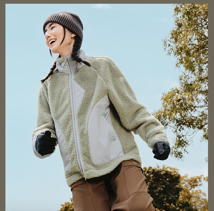 蕉下(beneunder)外套女春秋防风羊羔绒保暖户外运动PO89024燕麦白L