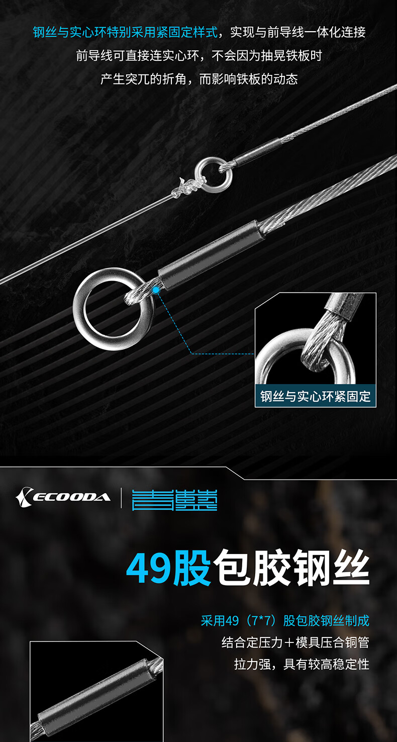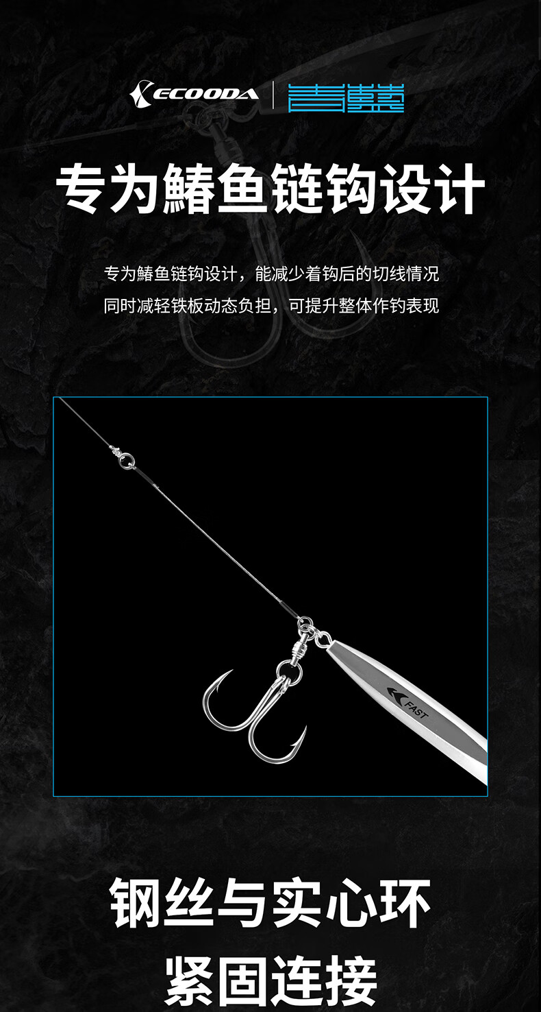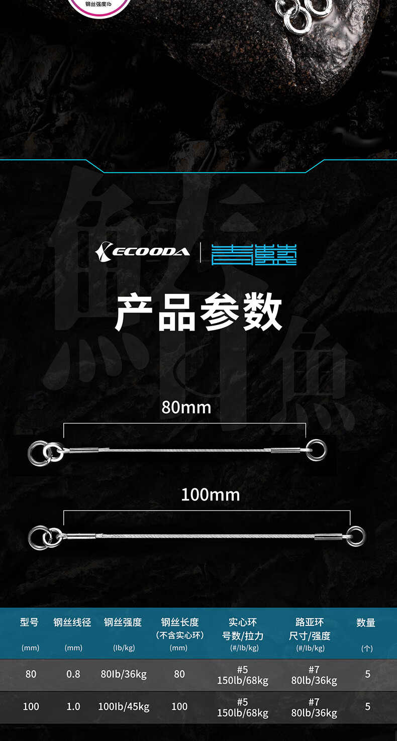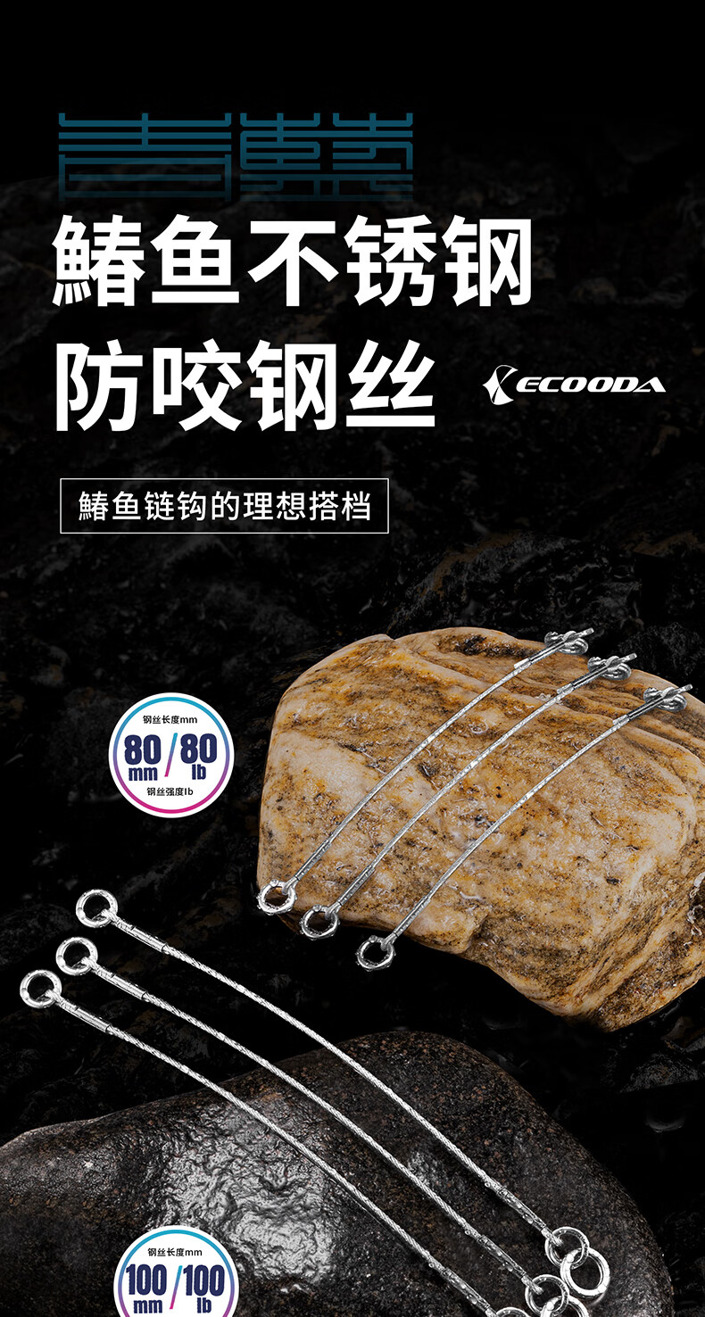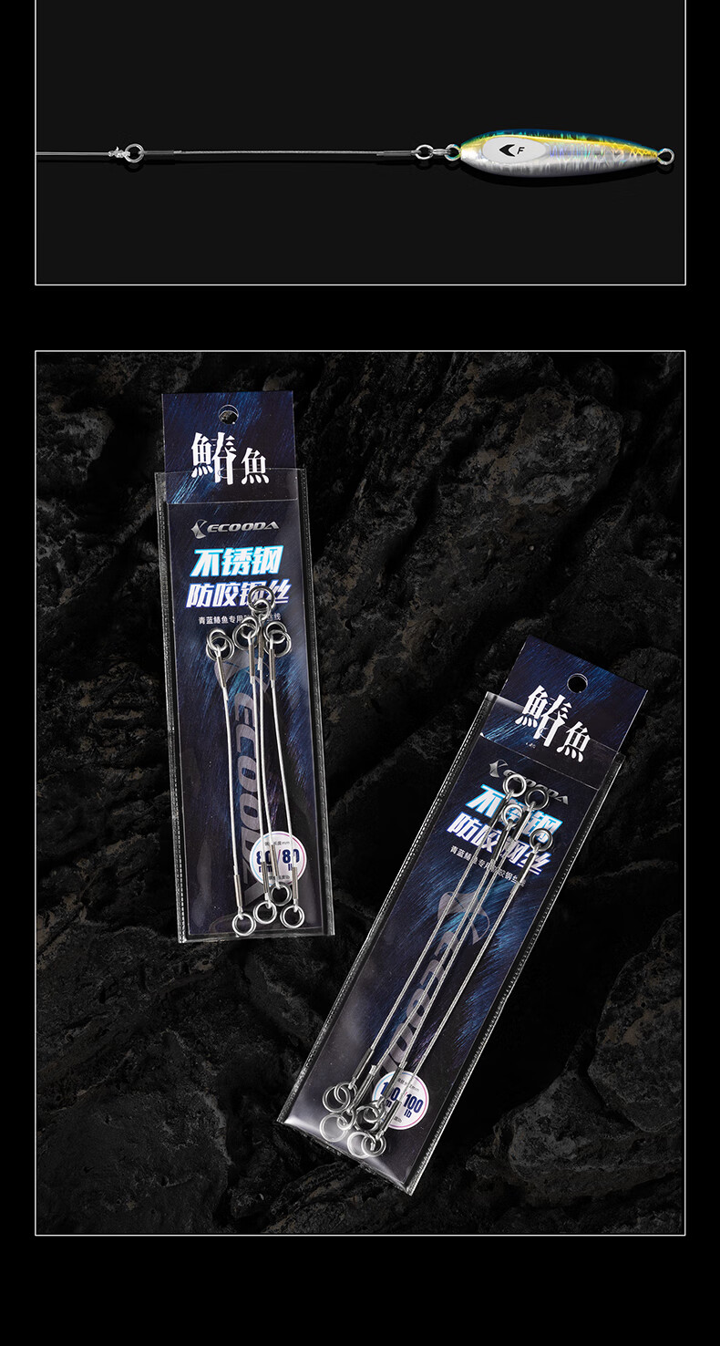 伊酷达(ECOODA)青蓝鰆魚不锈钢防咬包胶钢丝前导线 海钓船钓马鲛烟仔铁板防咬线 80mm(5只/包)