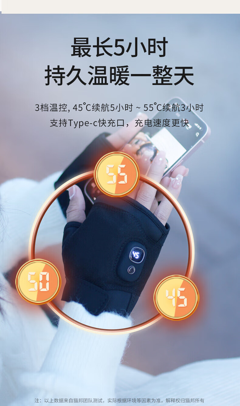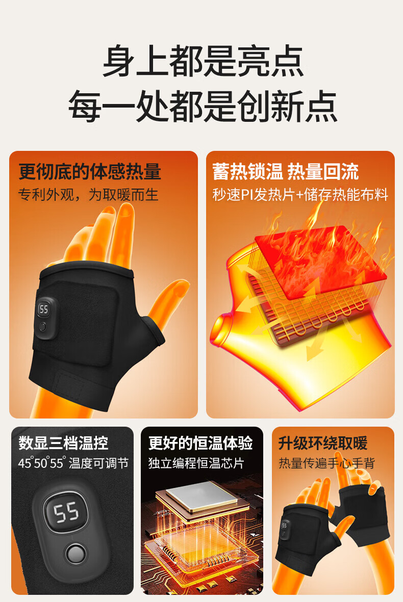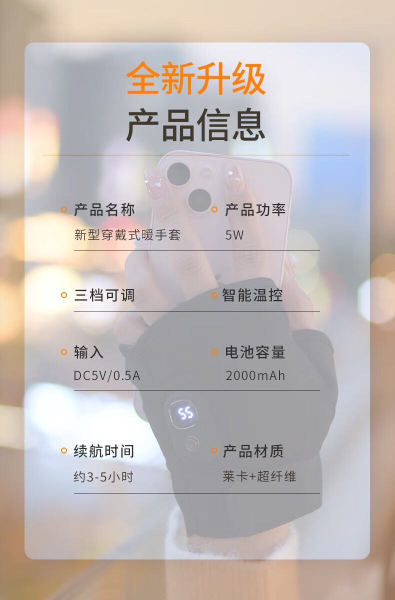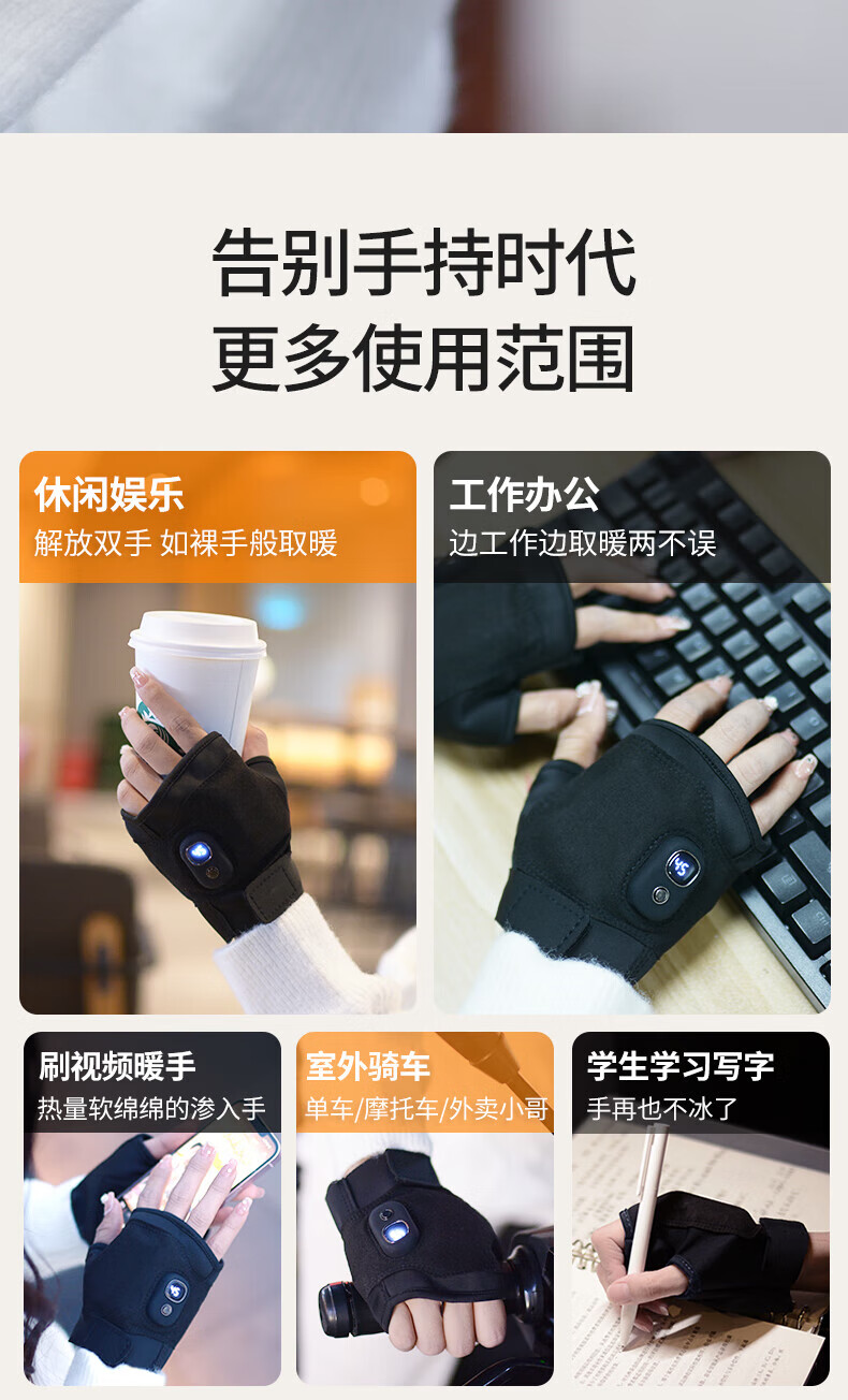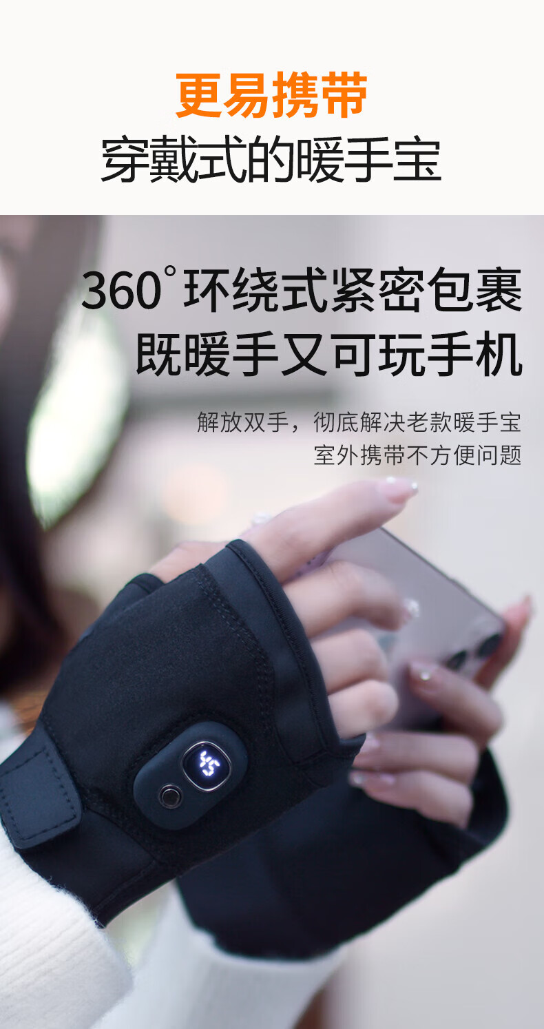 AILUKI日本暖手宝手套式暖手神器充电usb迷你二合一女生礼品随身携带 黑色/3挡调温/左手2000毫安单只装 活动降价中:2瓶【限时特惠】多