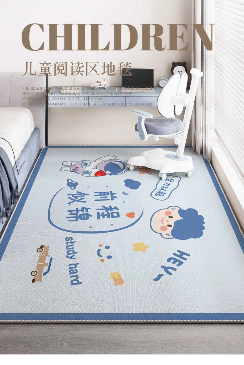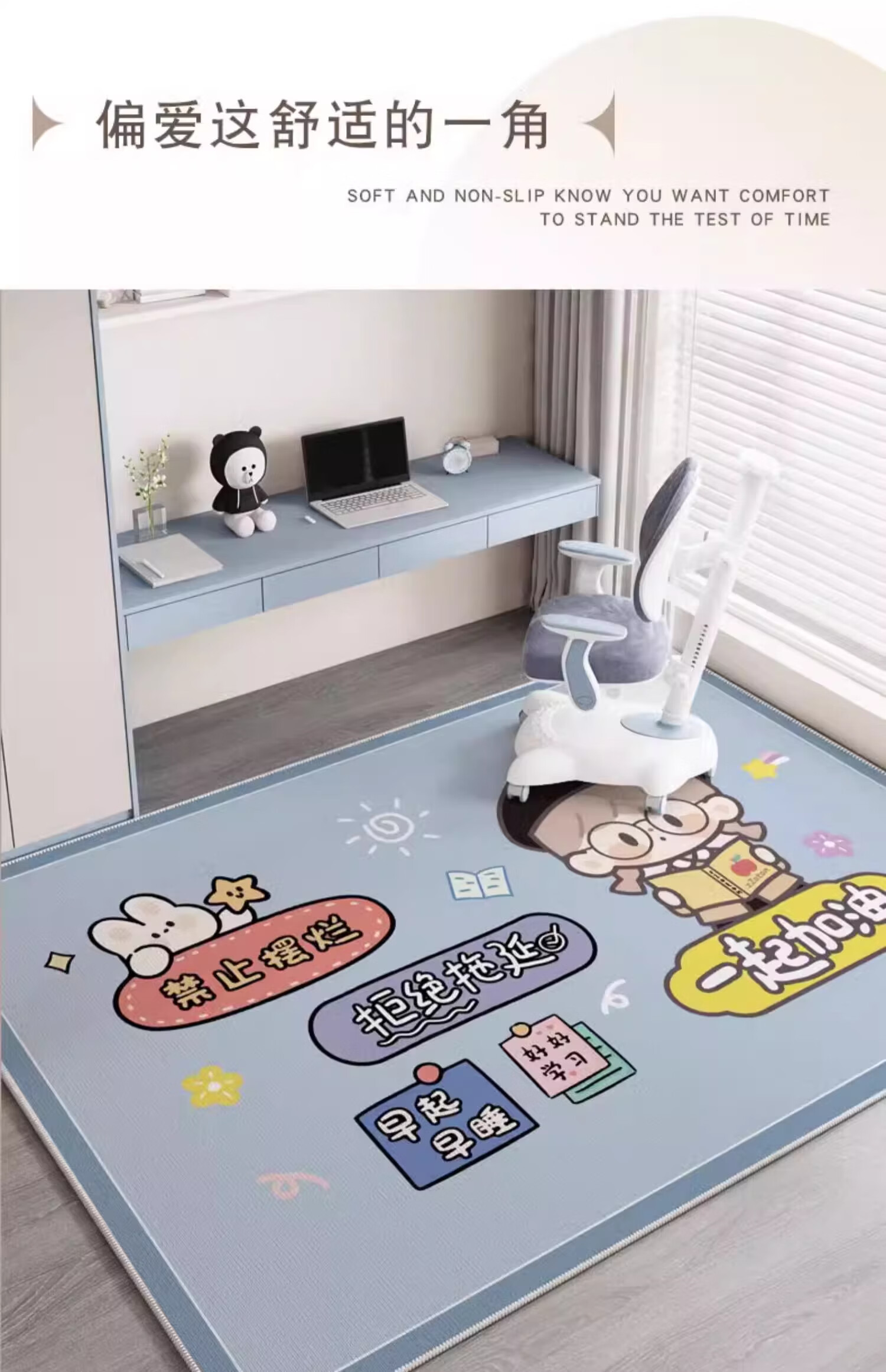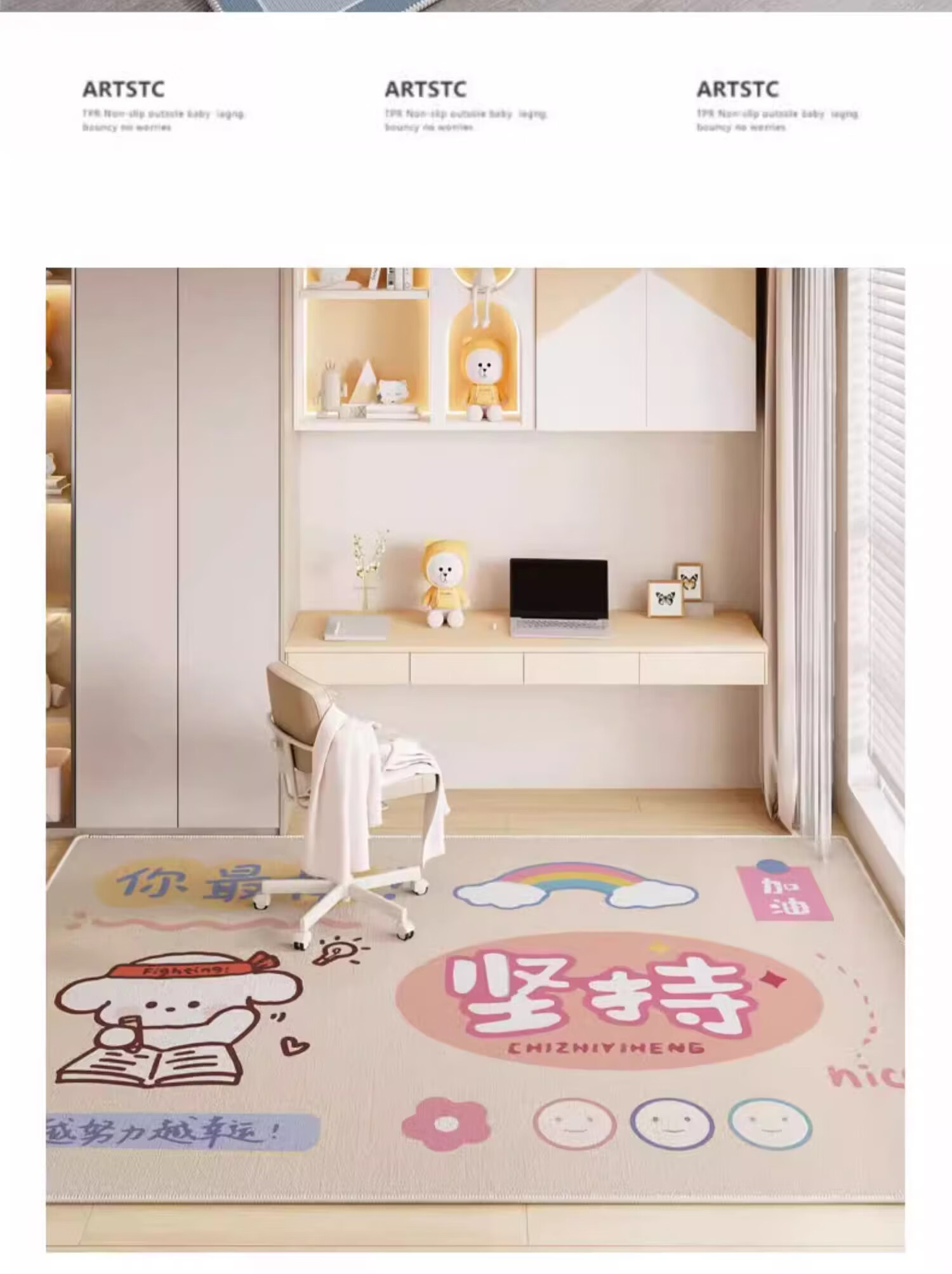 KAYE儿童房学习区卡通地毯客厅卧室书房防滑垫阅读区书桌椅子加厚毯子 SJR-坚持学习 60X160cm
