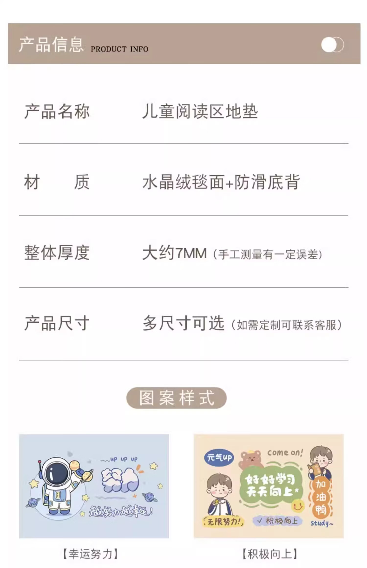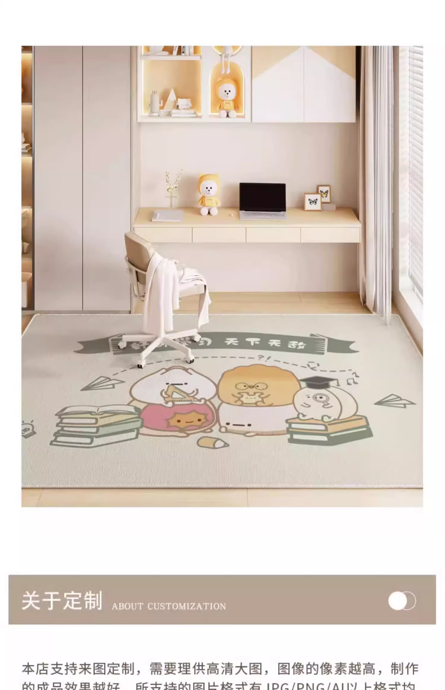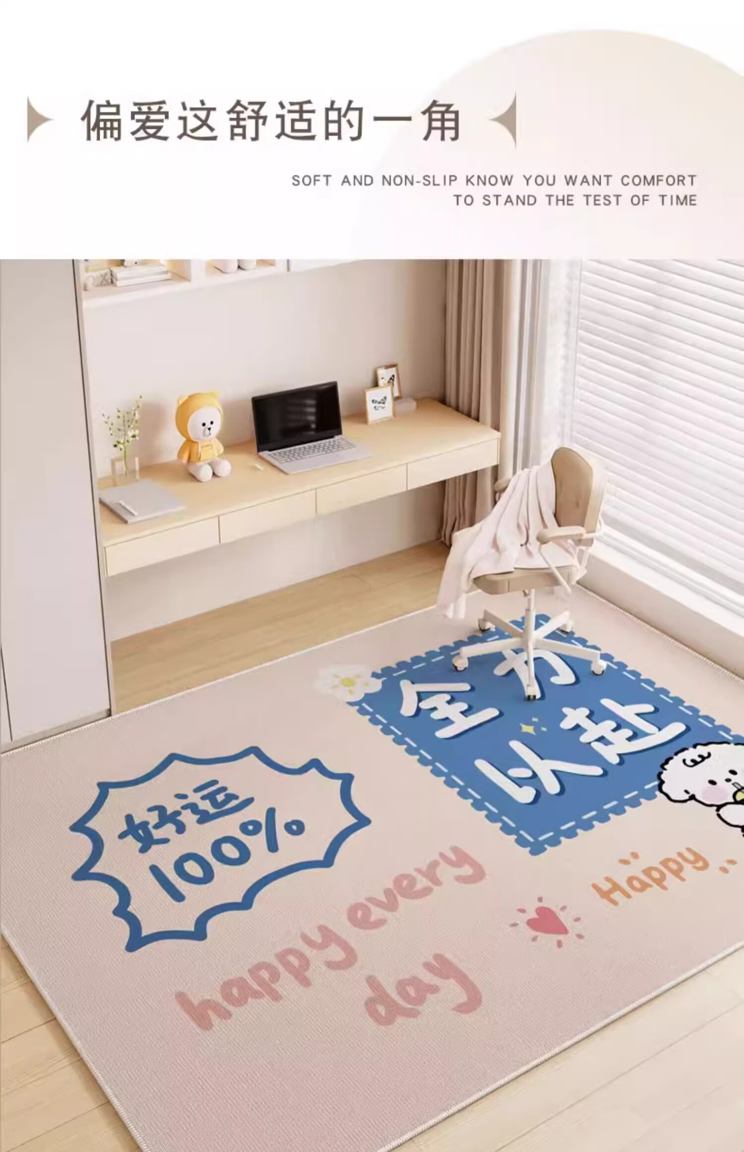 KAYE儿童房学习区卡通地毯客厅卧室书房防滑垫阅读区书桌椅子加厚毯子 SJR-坚持学习 60X160cm