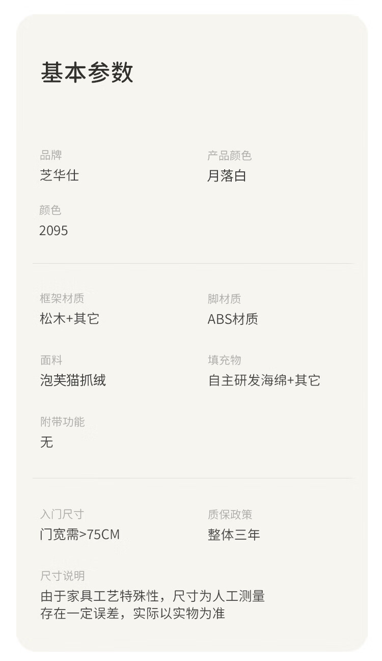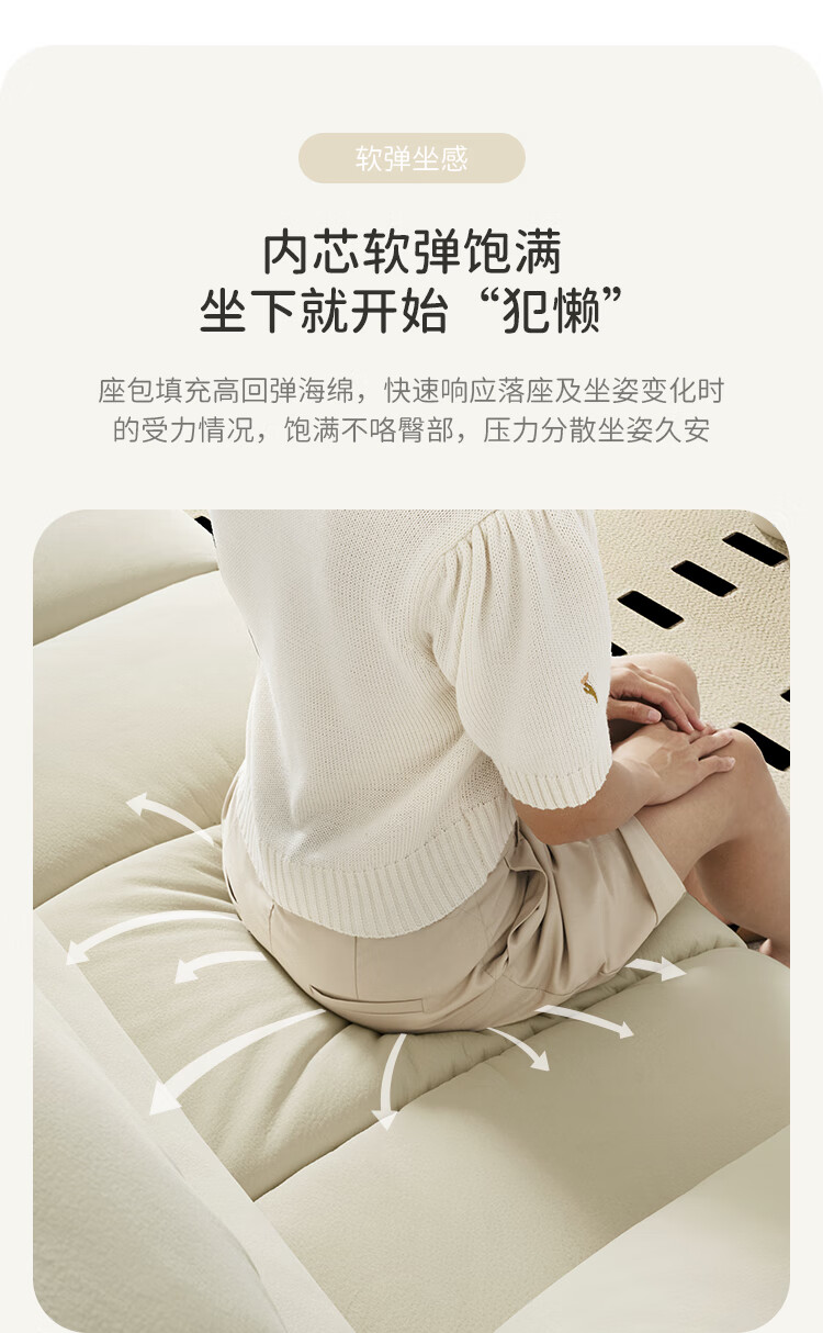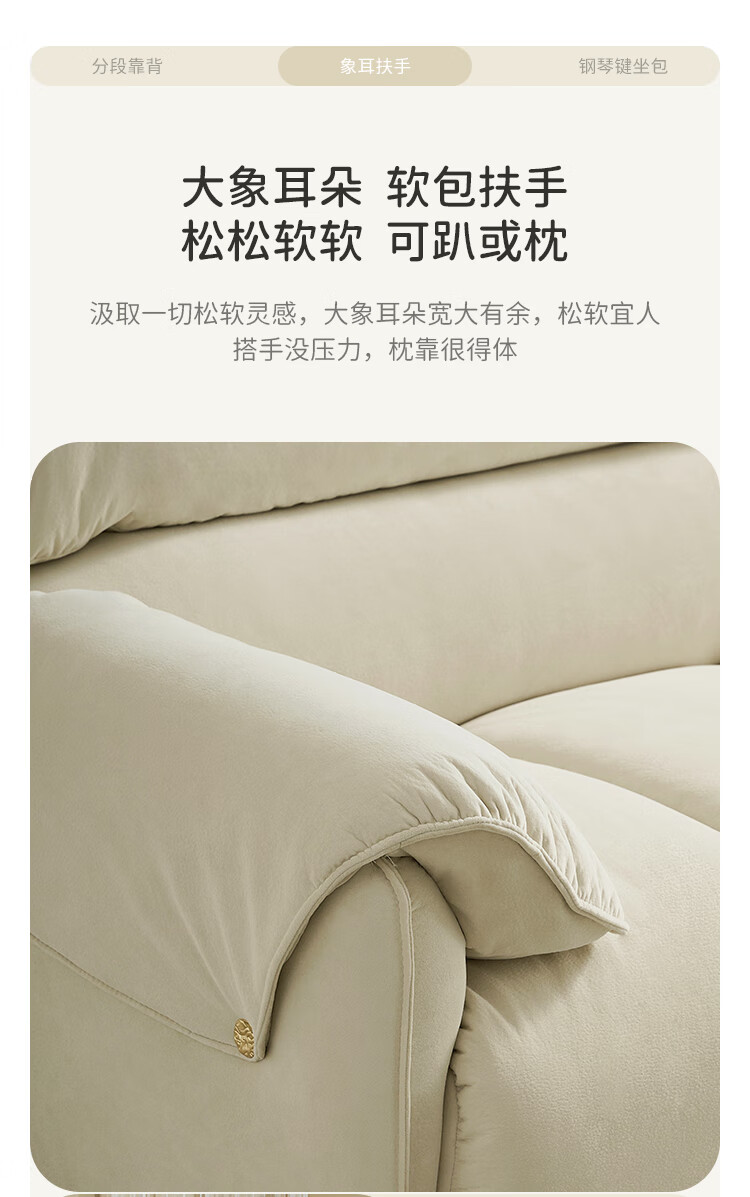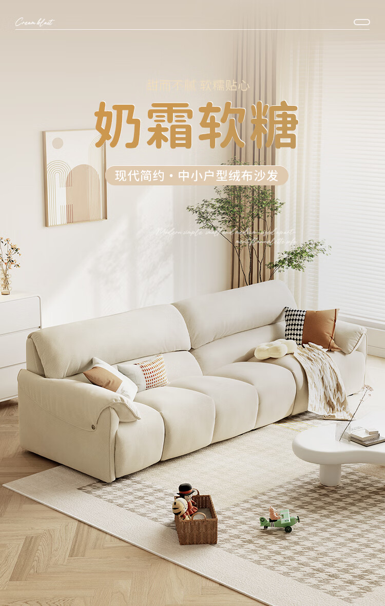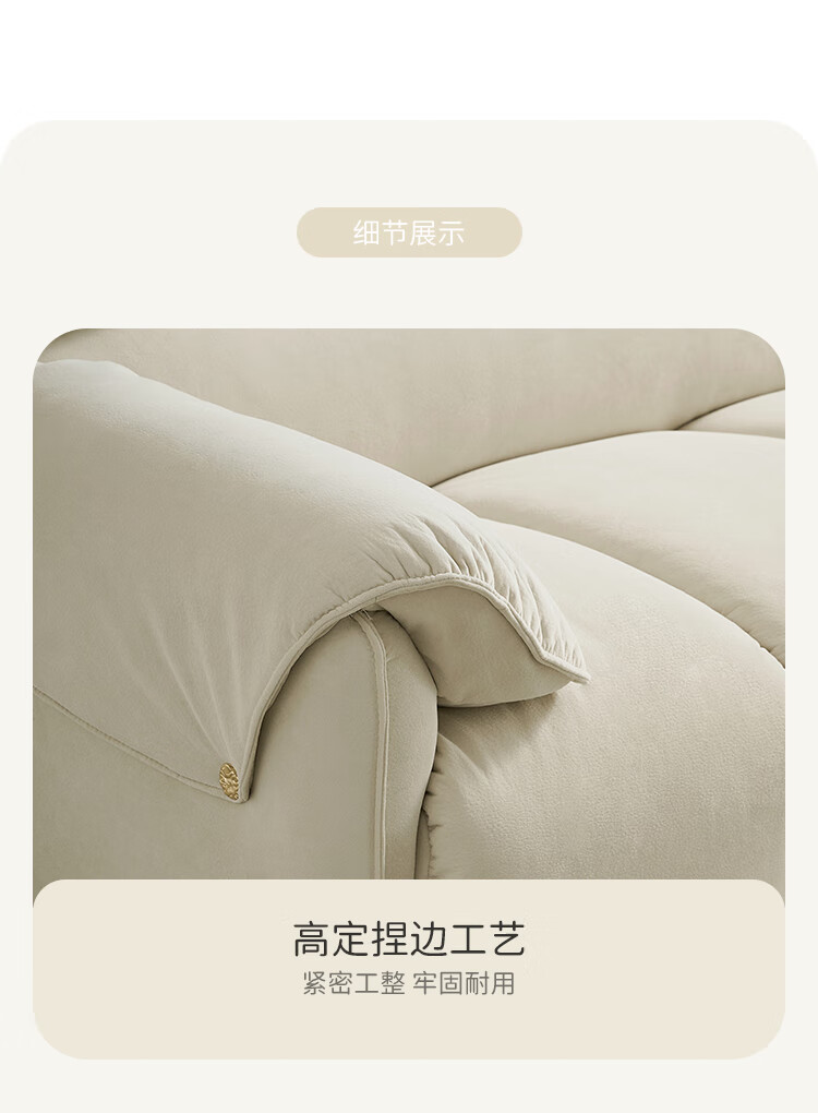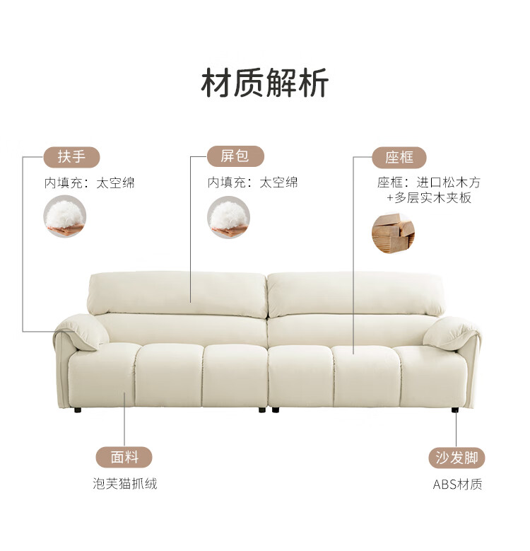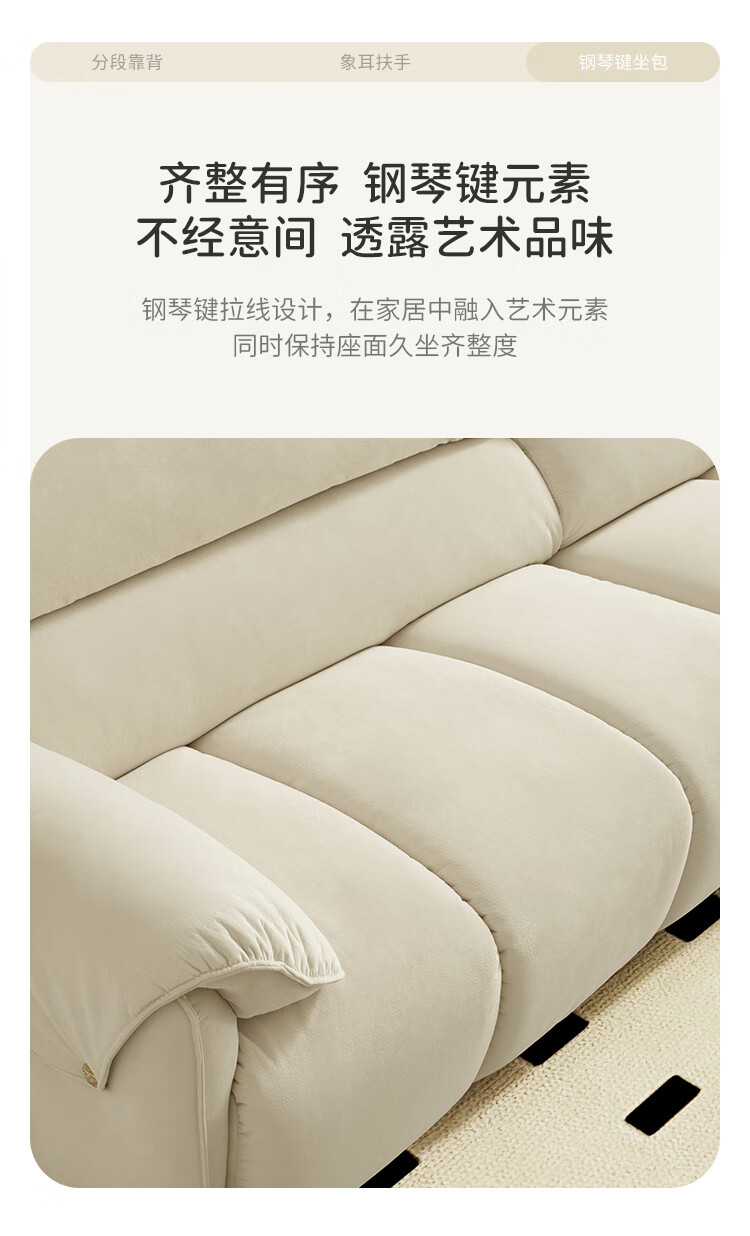 芝华仕(CHEERS)法式奶油风钢琴键沙发客厅小户型猫抓布芝华士布艺沙发2095大四白