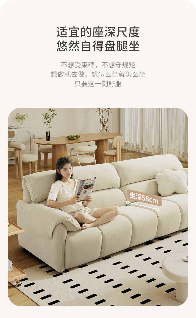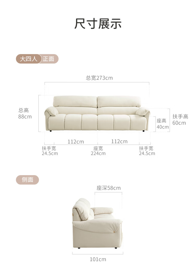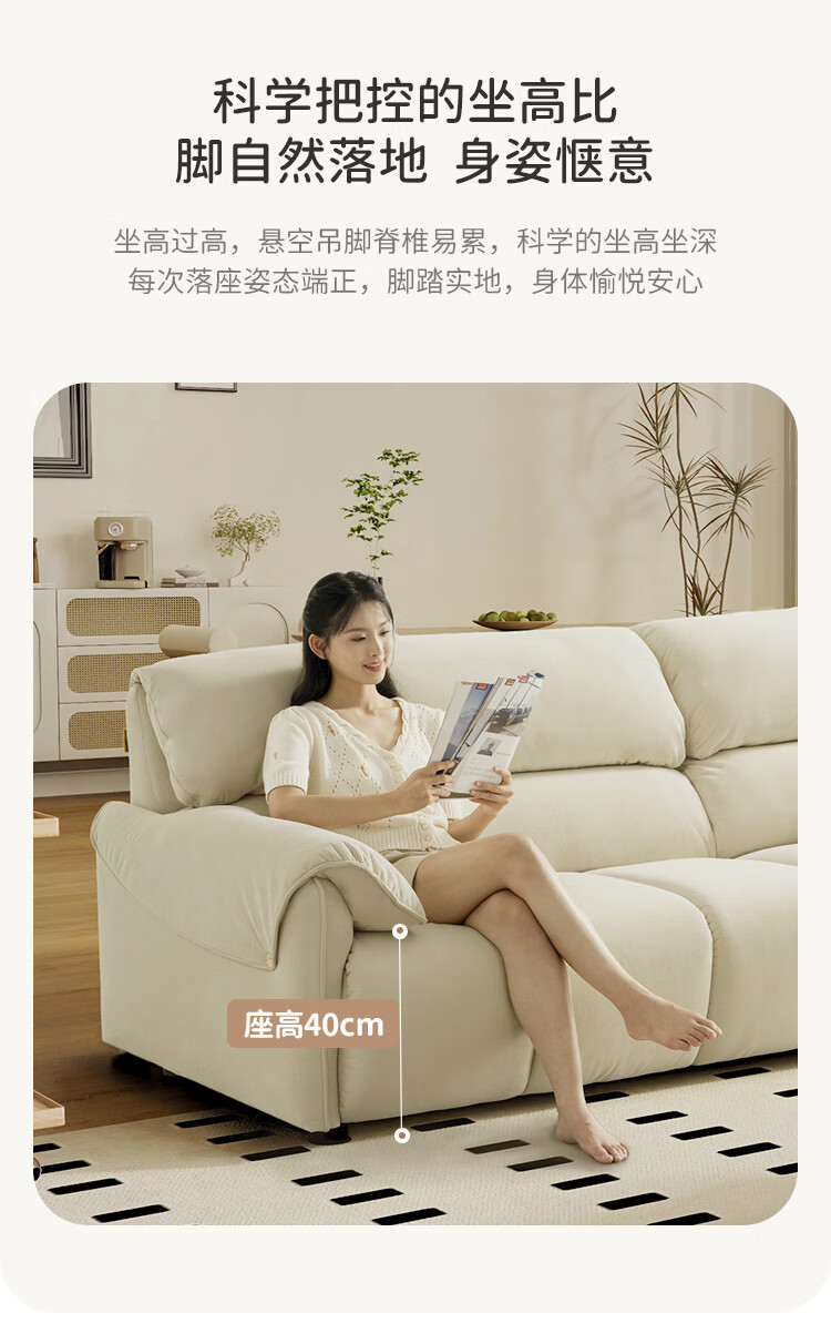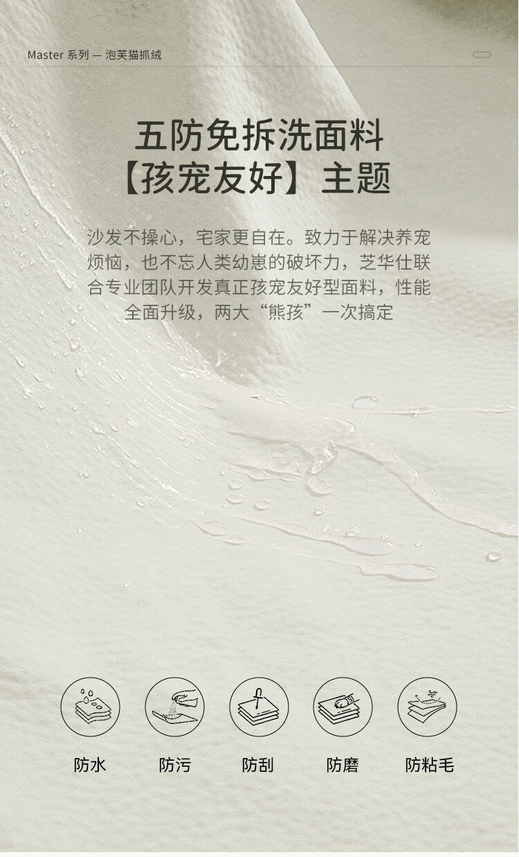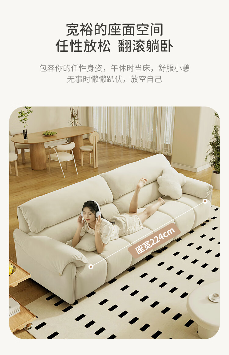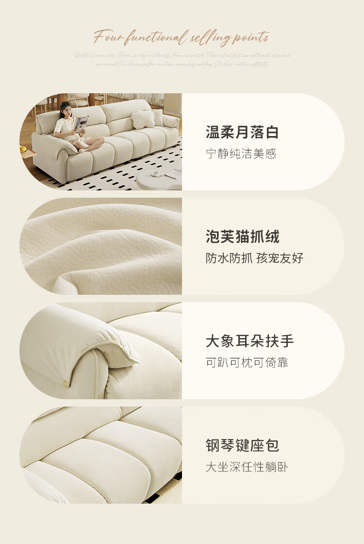 芝华仕(CHEERS)法式奶油风钢琴键沙发客厅小户型猫抓布芝华士布艺沙发2095大四白