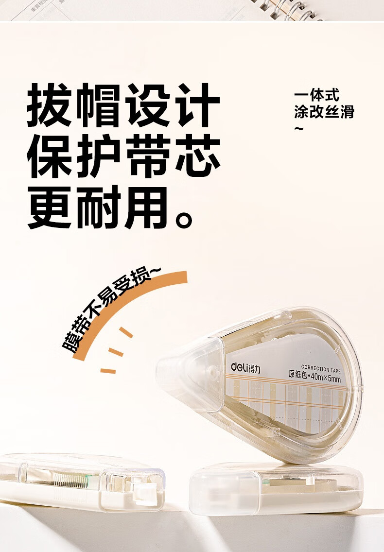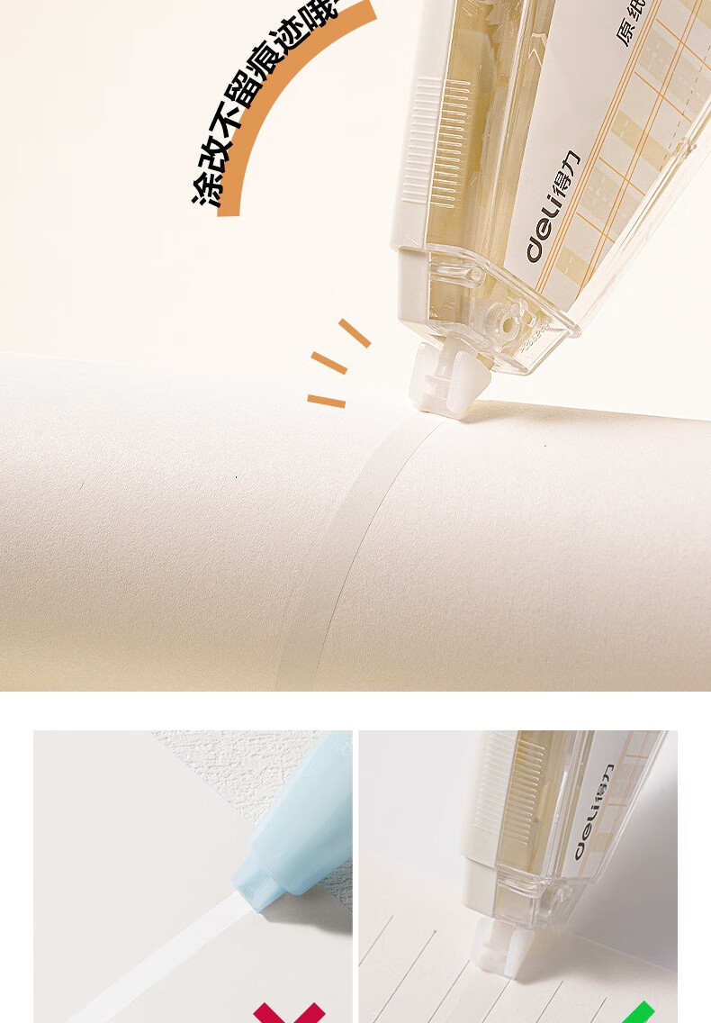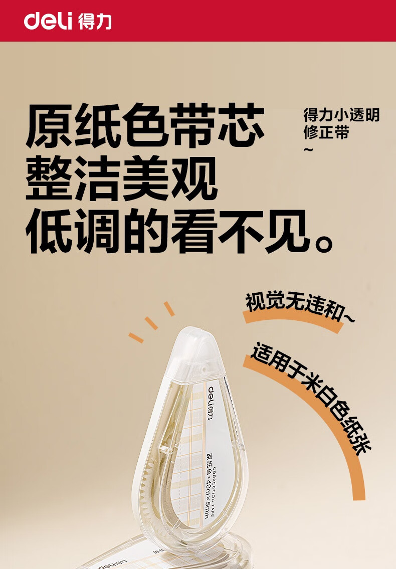 得力(deli)200米原纸色修正带隐形修正原纸色护眼米黄修正带学生涂改带强覆盖力涂改顺滑省力不起翘VR266