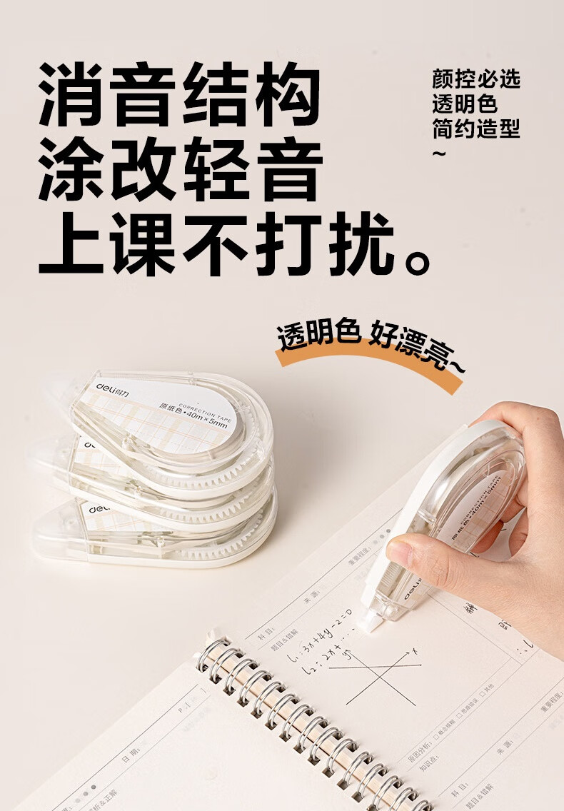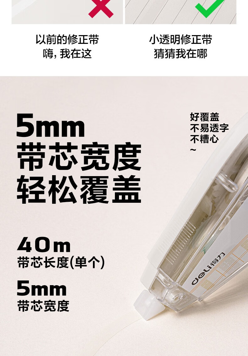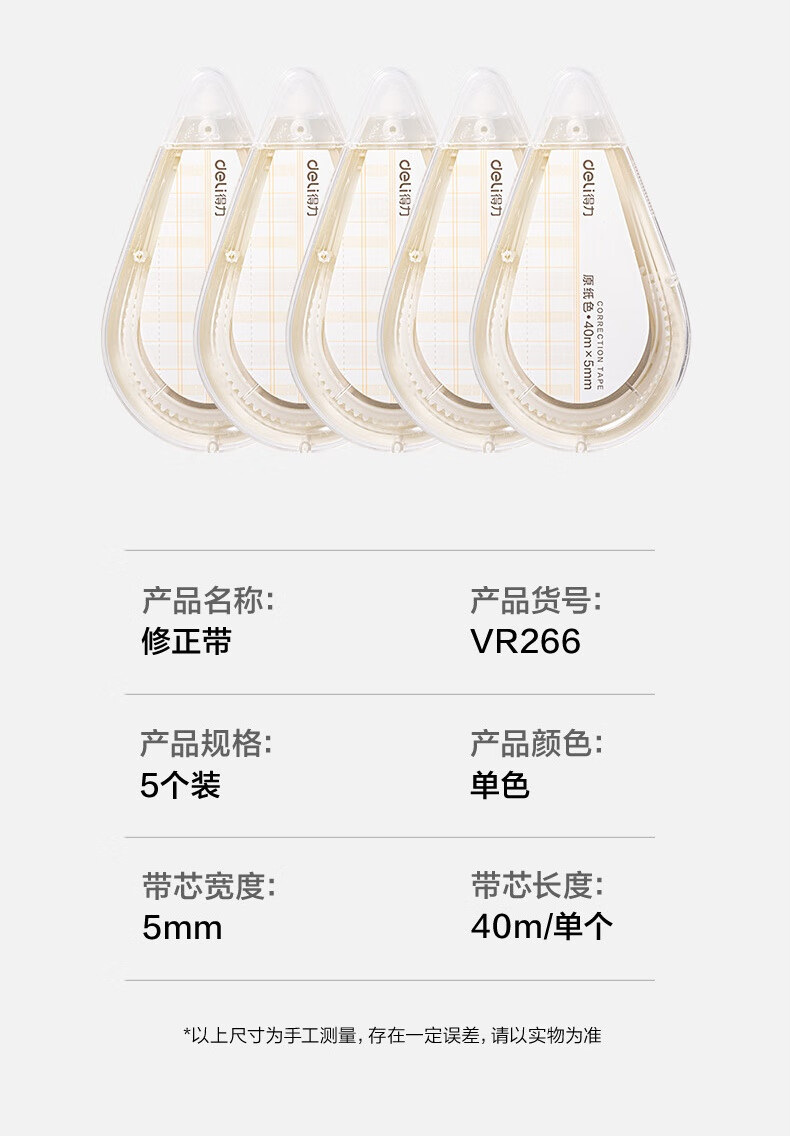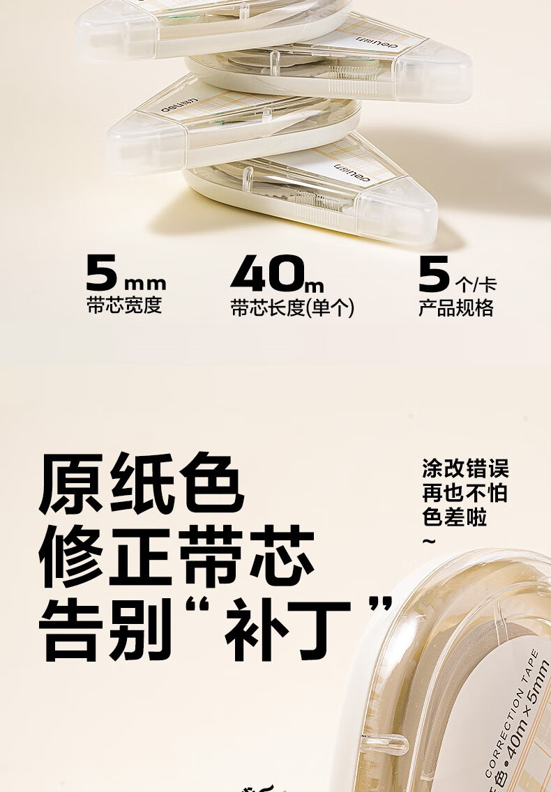 得力(deli)200米原纸色修正带隐形修正原纸色护眼米黄修正带学生涂改带强覆盖力涂改顺滑省力不起翘VR266