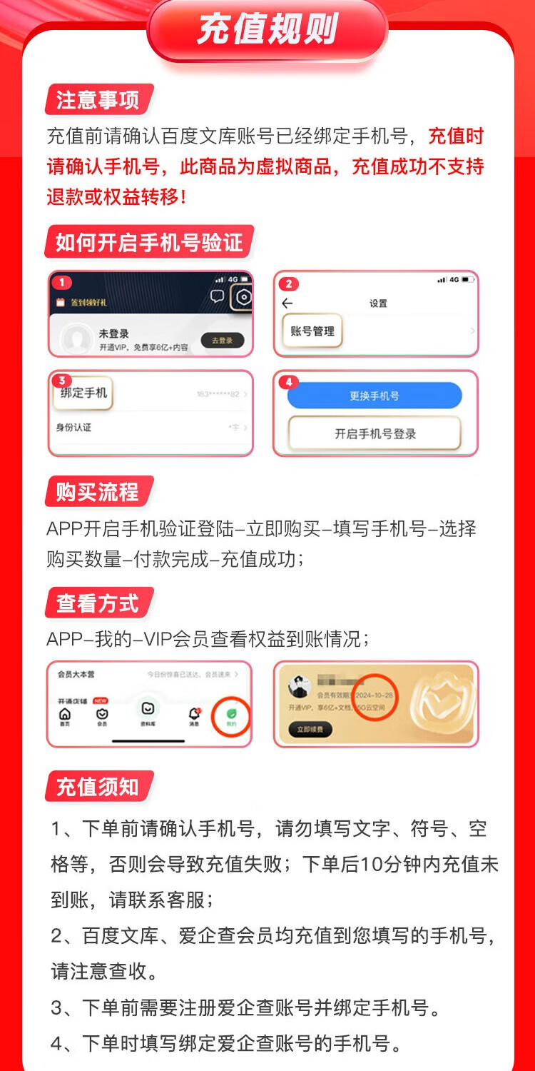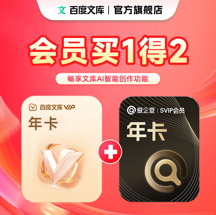 百度文库【官旗】百度文库会员年卡12个月+爱企查会员年卡【250】