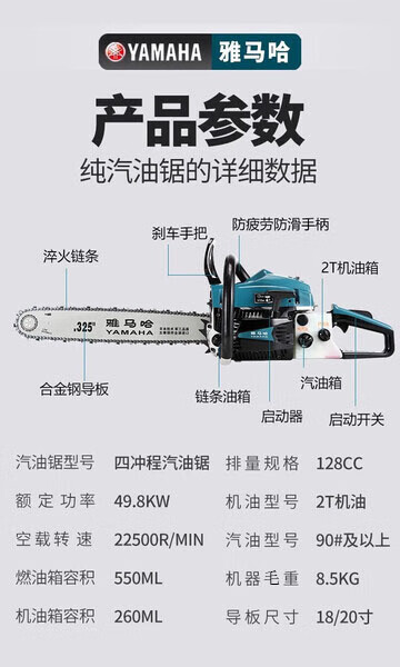 雅马哈日本进口雅马哈技术大功率四冲程纯汽油油锯砍树机汽油锯伐木锯 旗舰款四冲程配2根链条