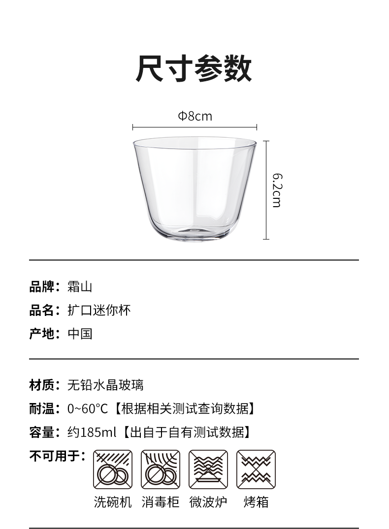 霜山水晶玻璃杯咖啡冷饮杯茶杯水果甜品碗日式梅酒杯薄壁迷你杯 【185ml】1只入