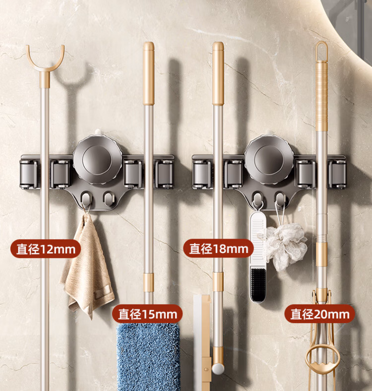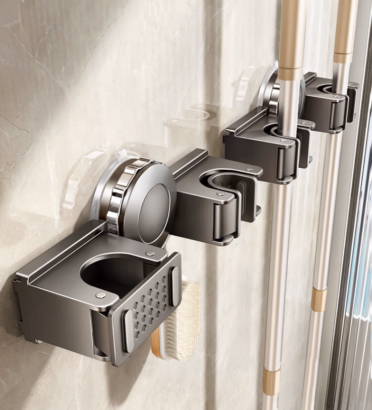 TYZAYR日本吸盘拖把壁挂夹扫把拖把架抹布挂钩免打孔卫生间浴室门后收纳 【枪灰】强力吸盘 稳固超靠谱 2个
