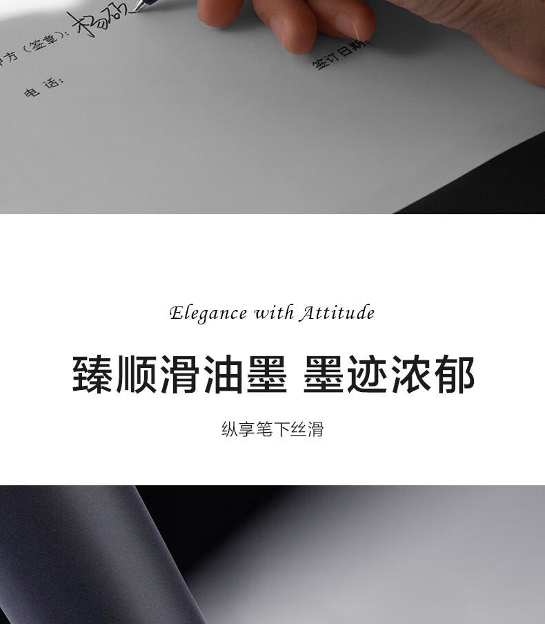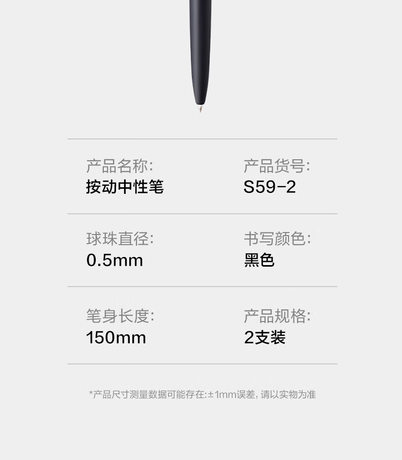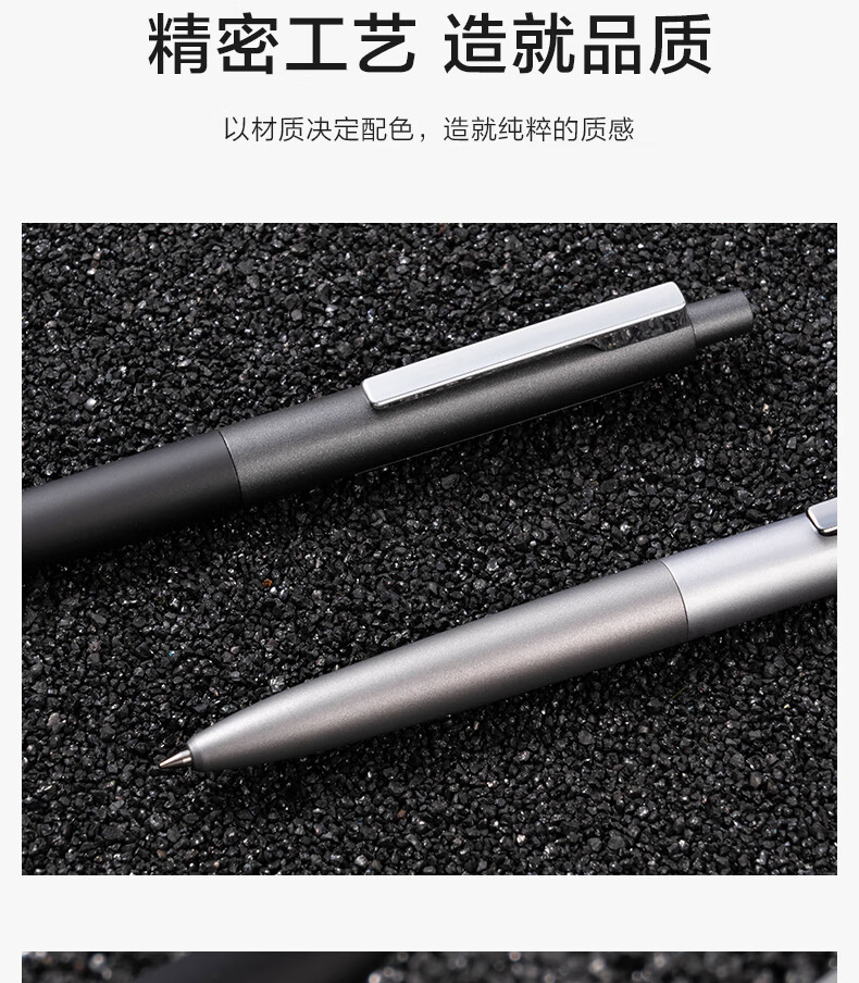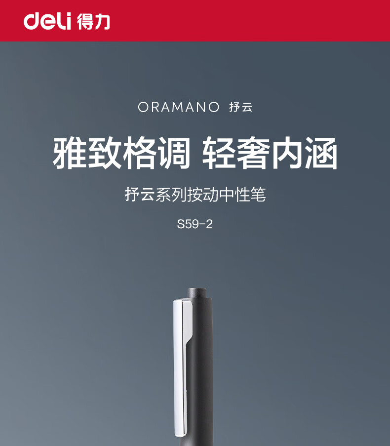 得力(deli)臻顺滑按动中性笔宝珠笔 0.5mm子弹头高级质感金属笔杆宝珠笔签字笔 黑色2支/盒 S59-2