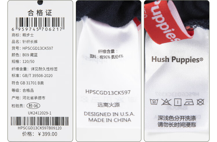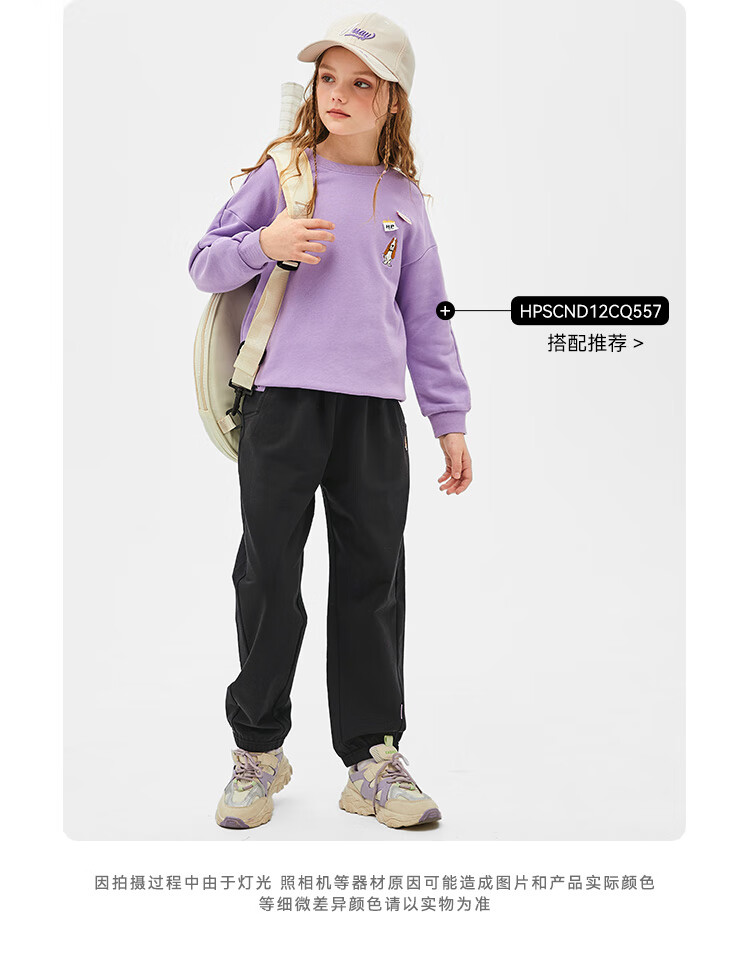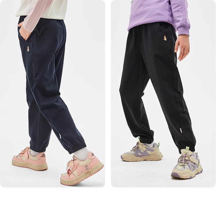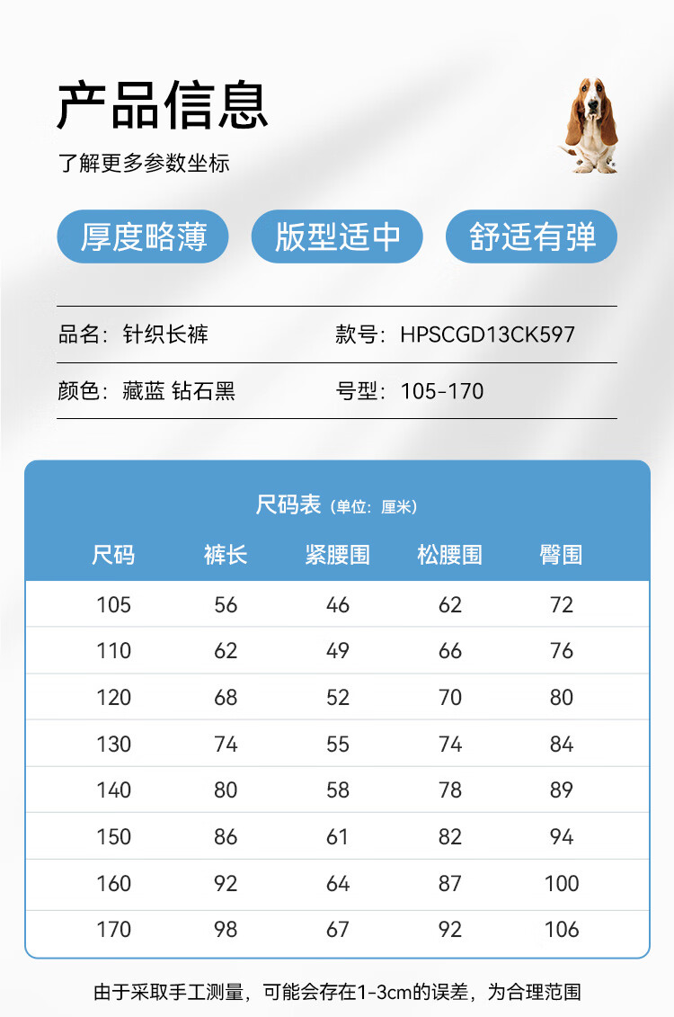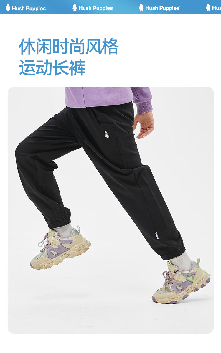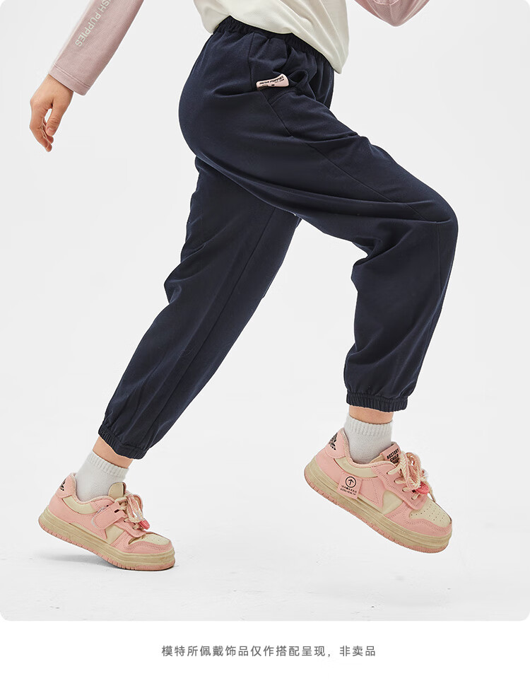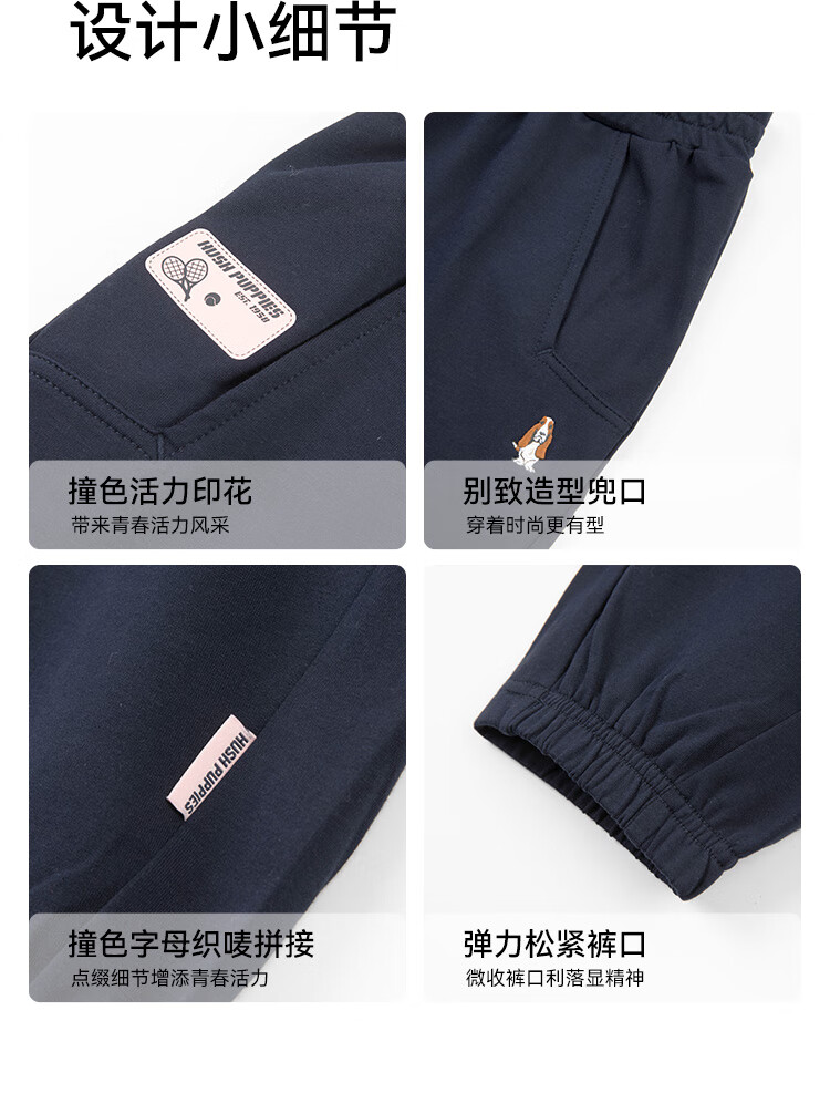 暇步士(Hush Puppies)童装儿童女大童春季舒适柔软时尚休闲薄款运动针织长裤 藏蓝 140