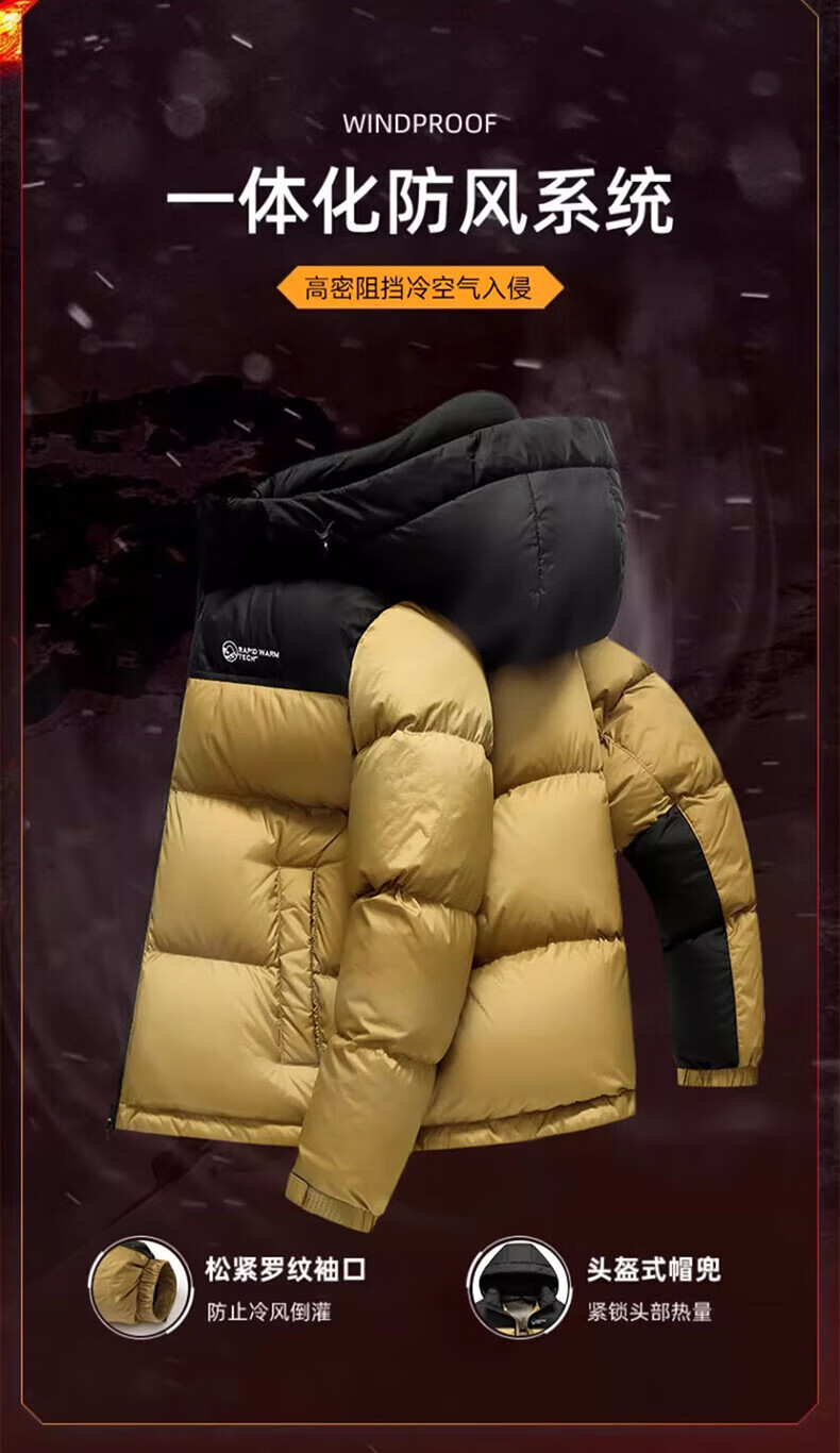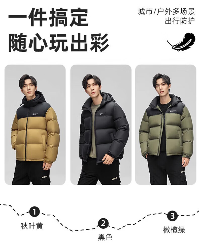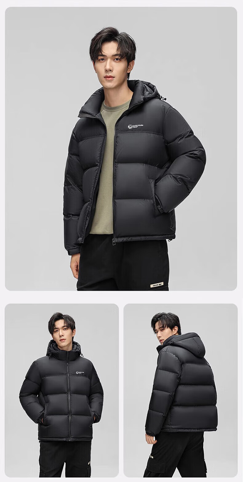 鸭鸭【255g高充绒】羽绒服男款2025新款可拆卸帽短款加厚保暖休闲外套 黑色 【加倍充绒/加倍保暖】 XL