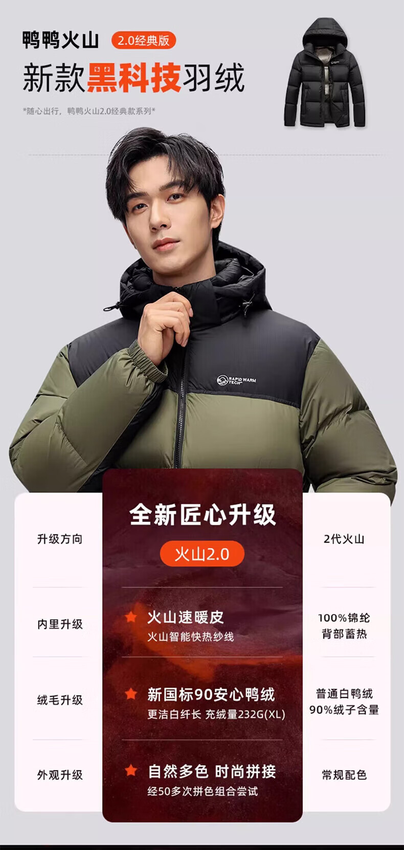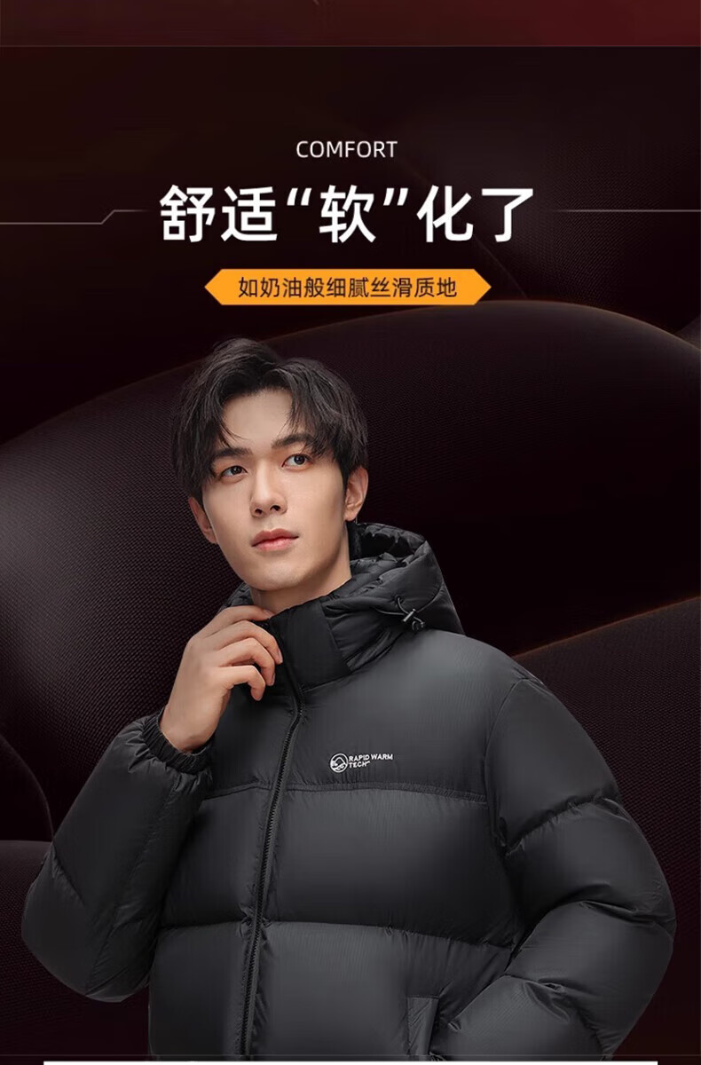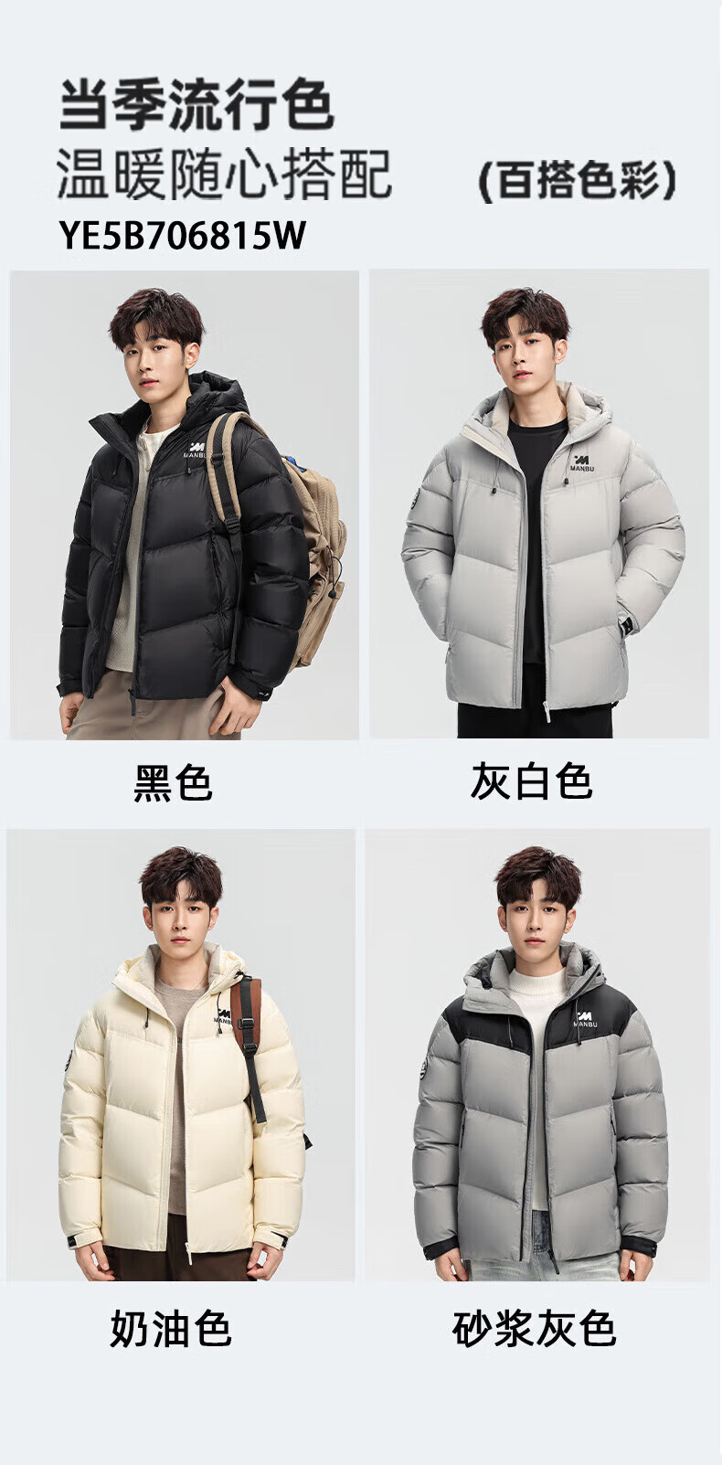 鸭鸭【255g高充绒】羽绒服男款2025新款可拆卸帽短款加厚保暖休闲外套 黑色 【加倍充绒/加倍保暖】 XL