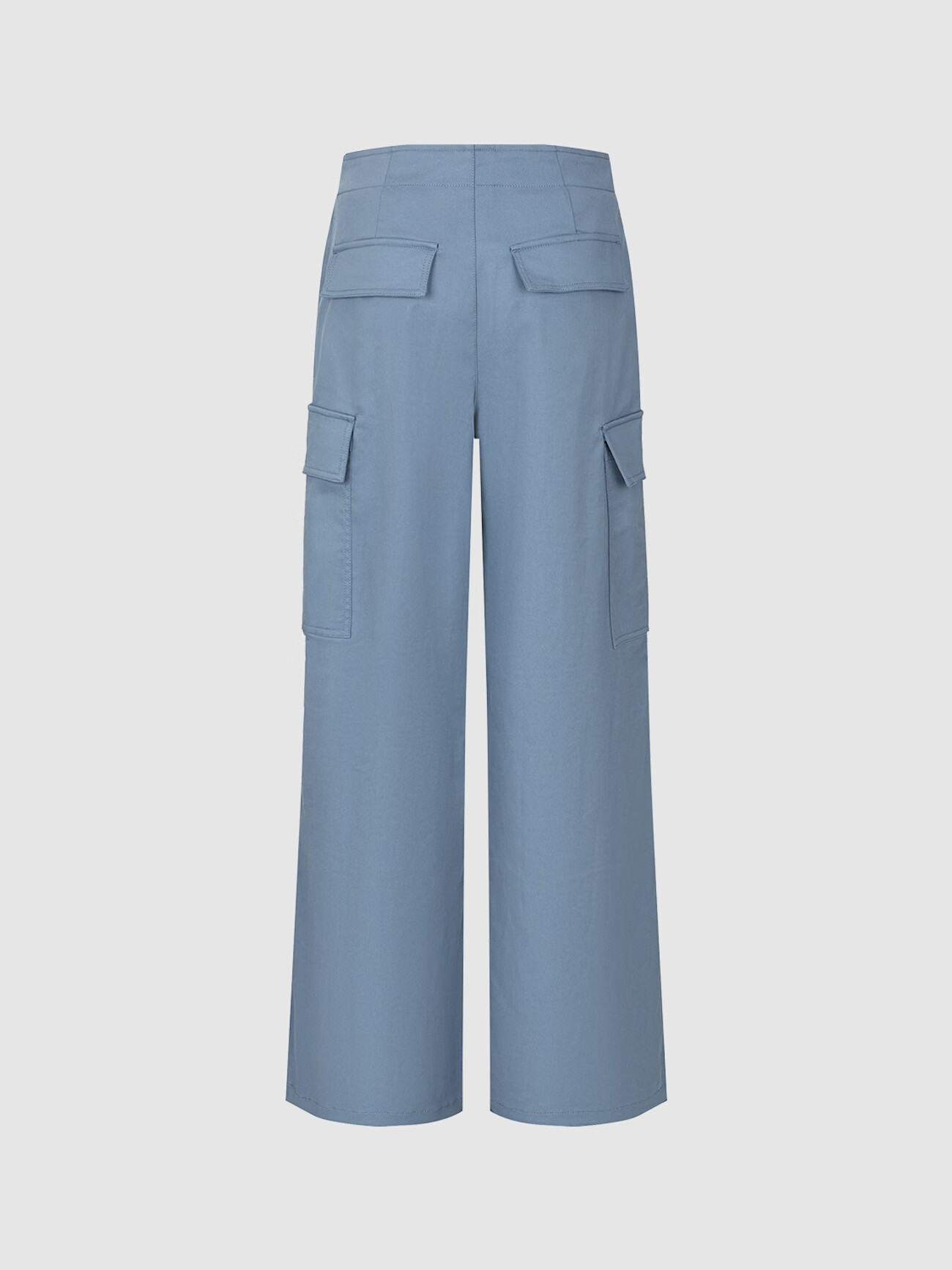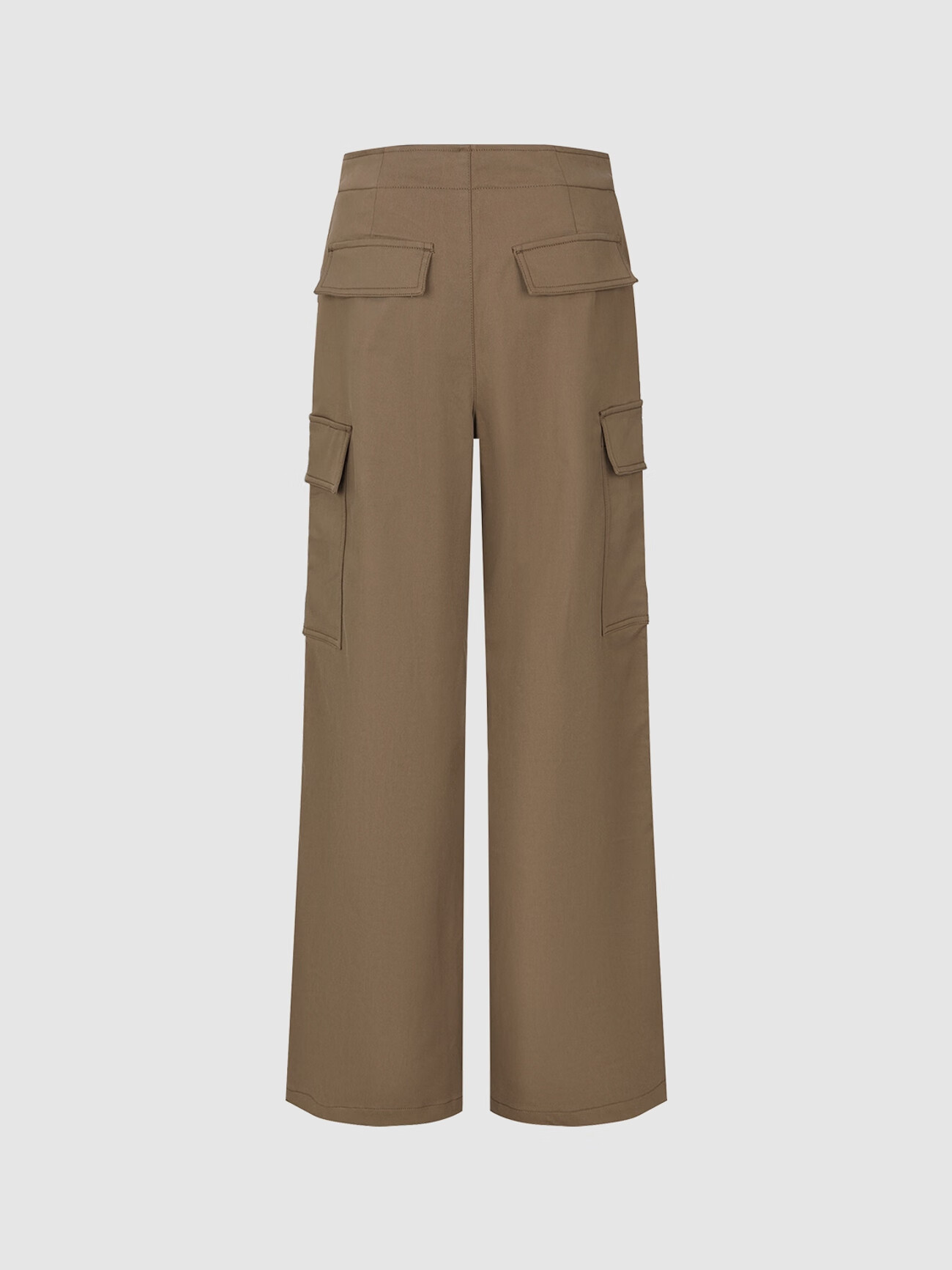 UR2024秋季新款女装工装风多口袋压褶高腰直筒裤UYY640014