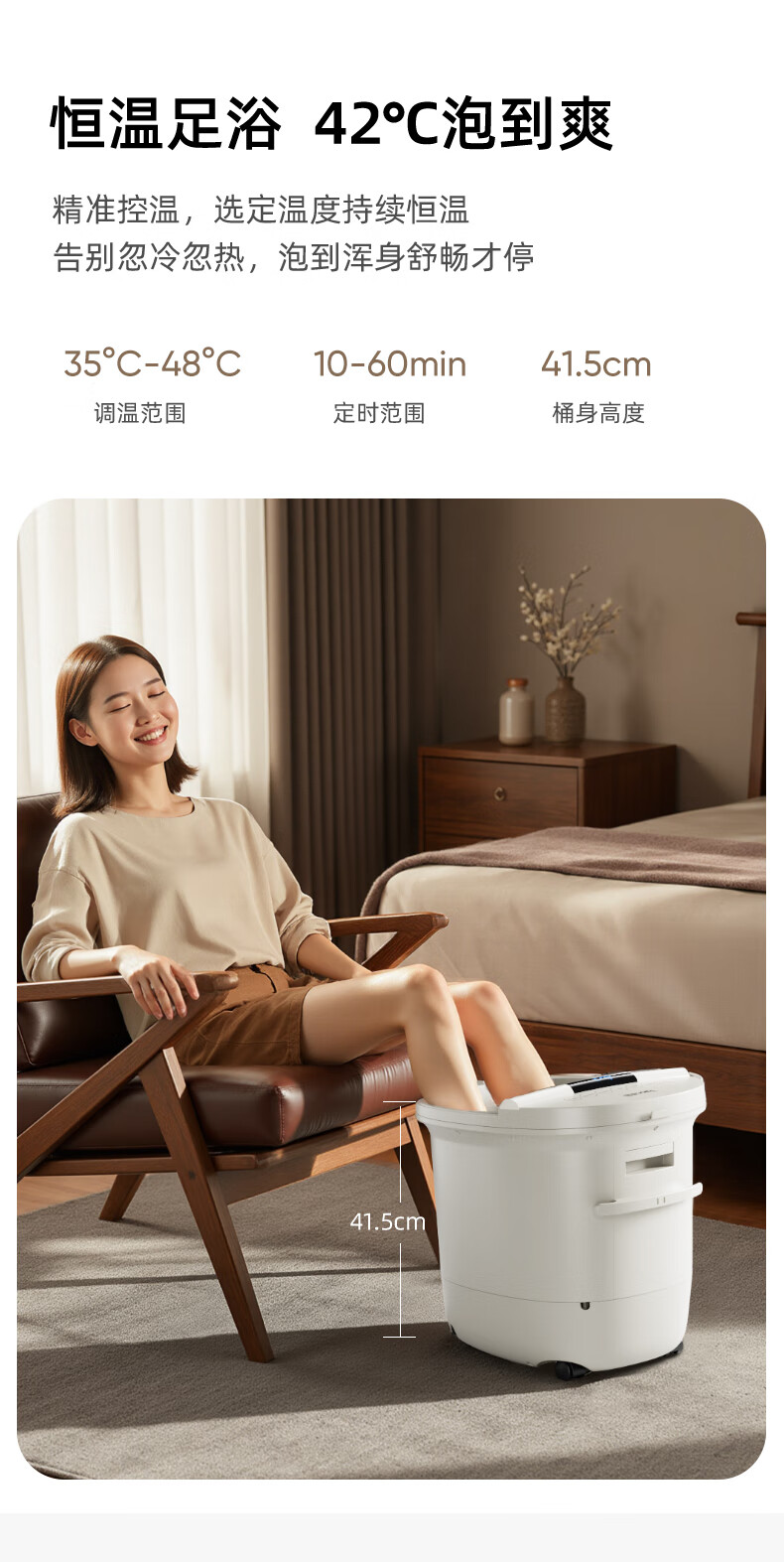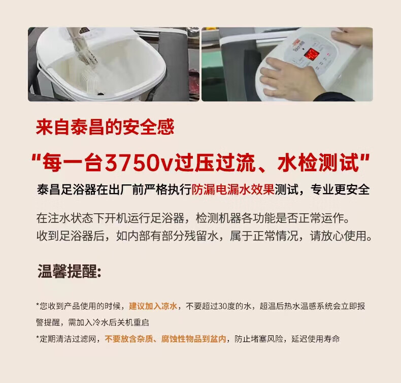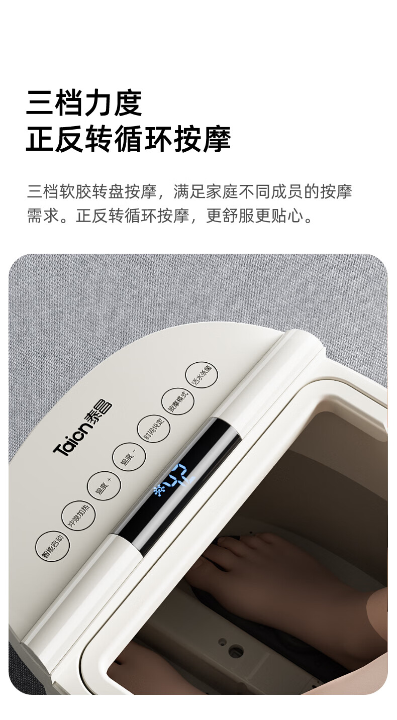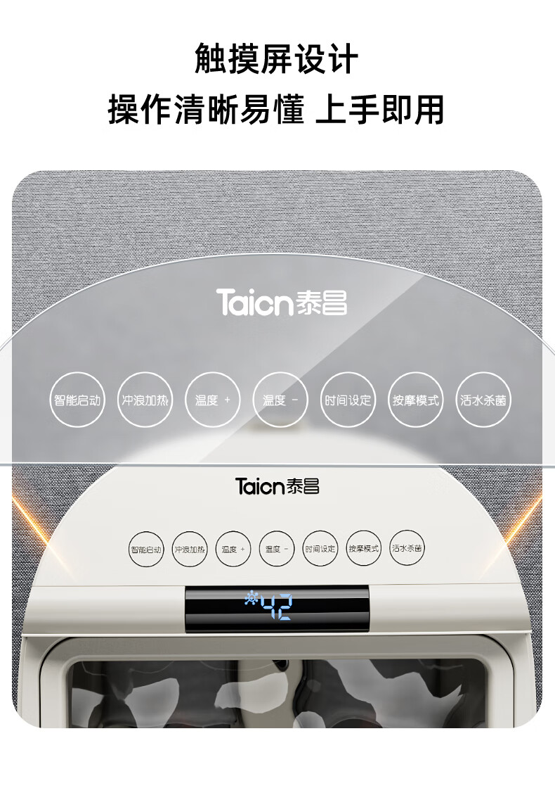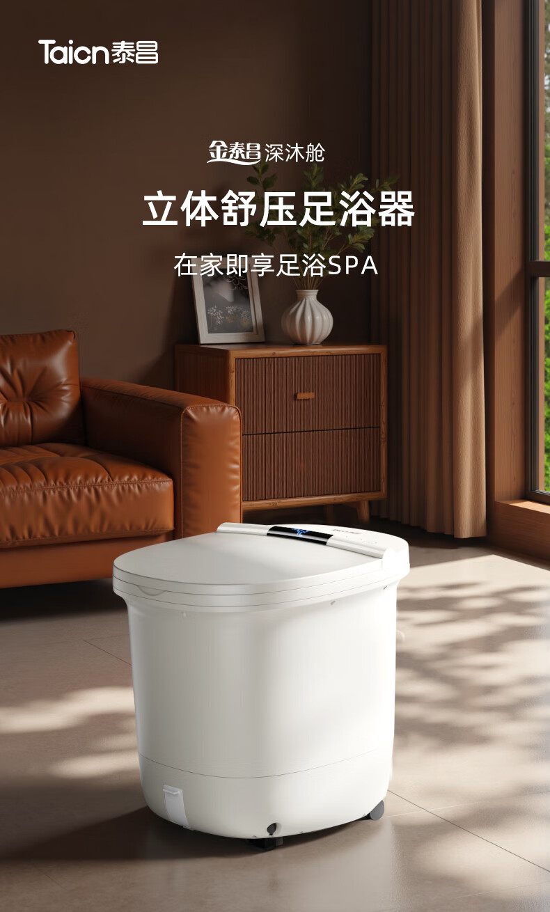 泰昌(Taicn)智能泡脚桶恒温杀菌足浴洗脚盆过小腿高深桶加热自动按摩2025中秋国庆节礼物送父母长辈 TC-056D杏色(三档软胶按摩+UV杀菌)