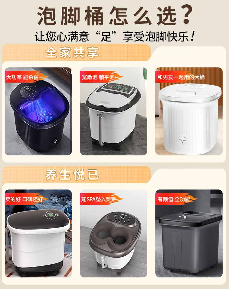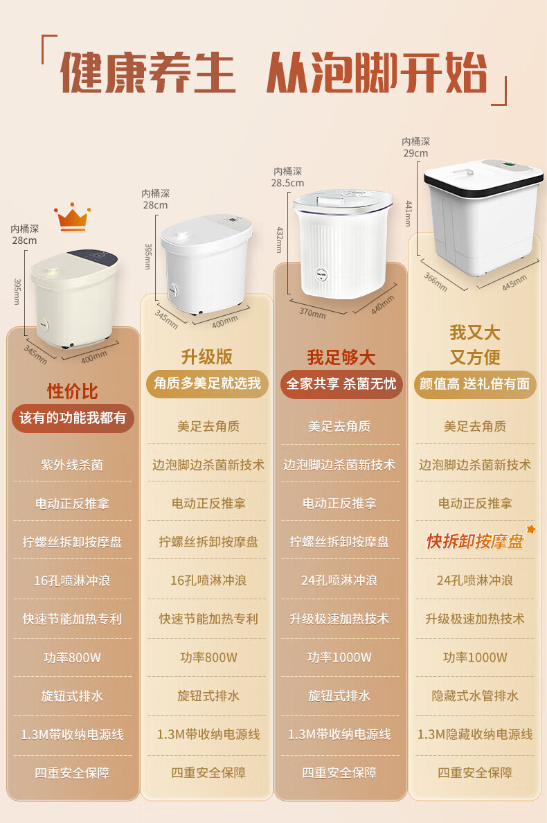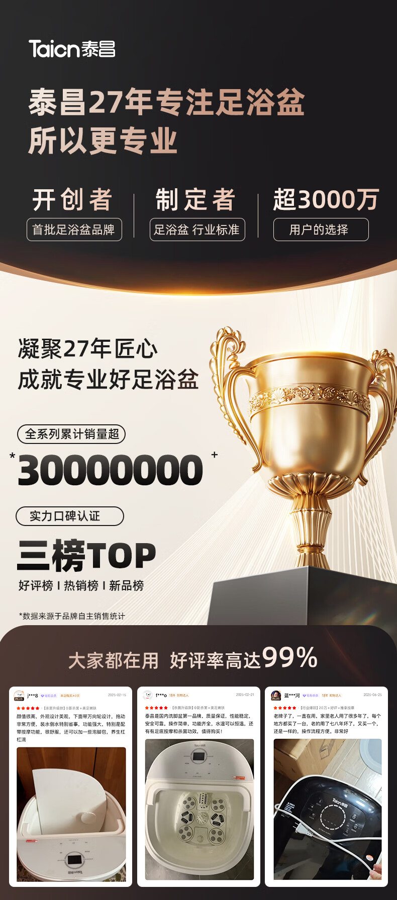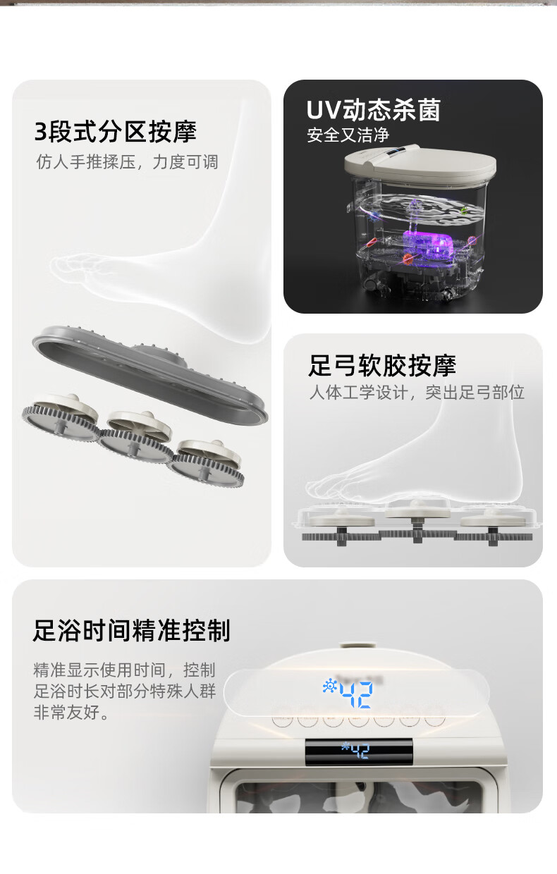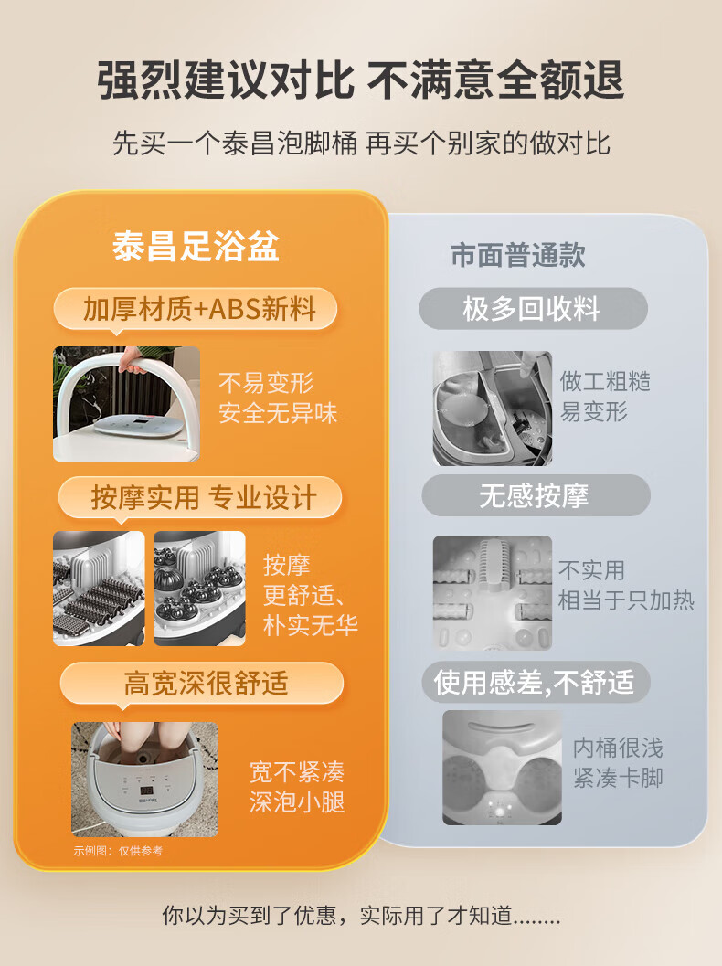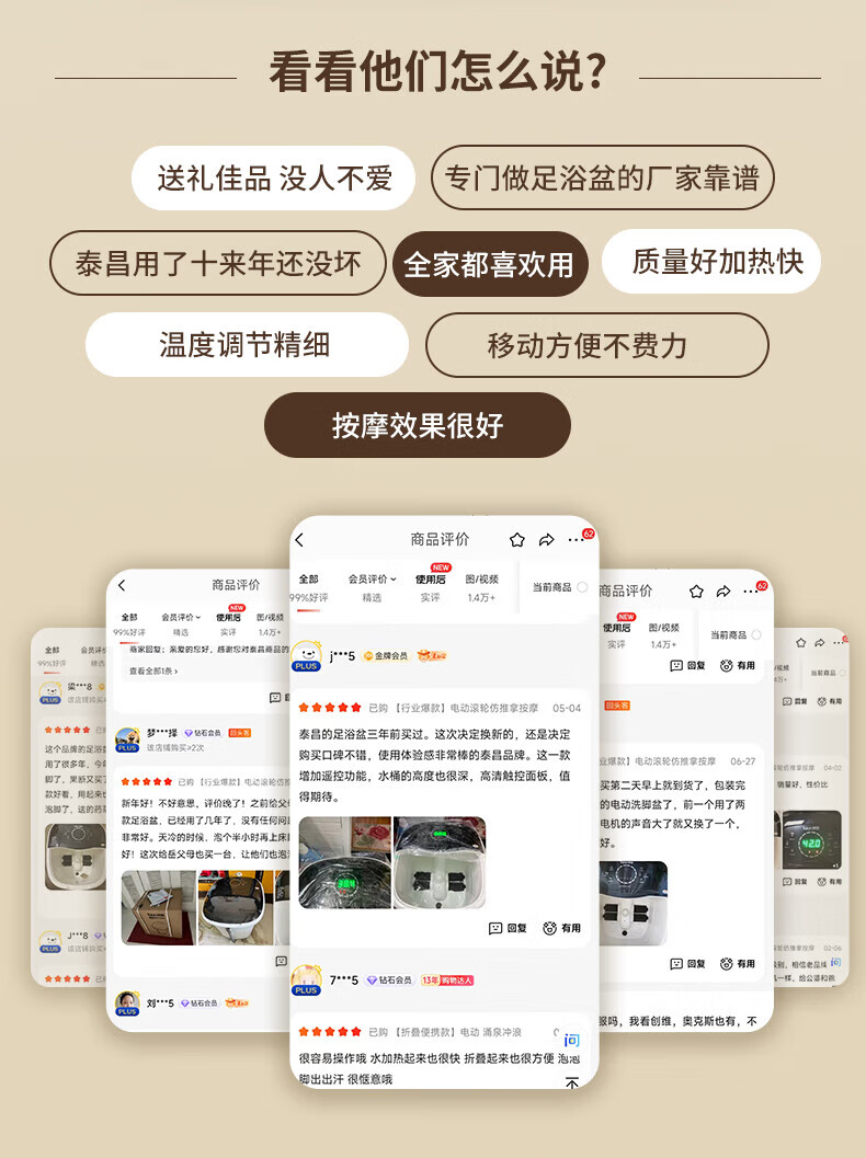 泰昌(Taicn)智能泡脚桶恒温杀菌足浴洗脚盆过小腿高深桶加热自动按摩2025中秋国庆节礼物送父母长辈 TC-056D杏色(三档软胶按摩+UV杀菌)