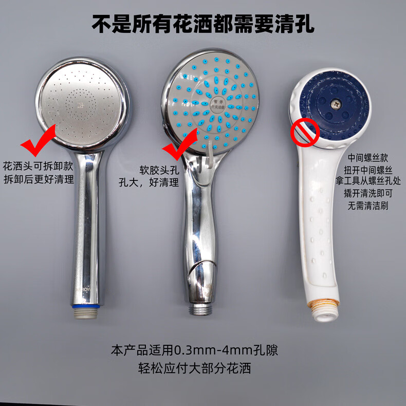 MPPMCK花洒清洁毛孔刷花洒孔清洁刷头清洁淋浴头出水孔浴室水龙头缝隙刷 透明色毛;花洒孔清洁刷1套;尼龙