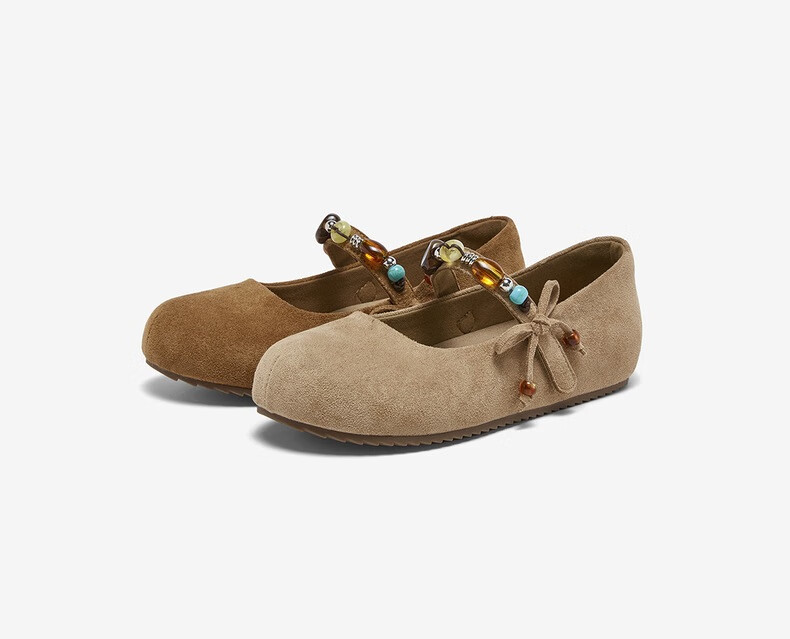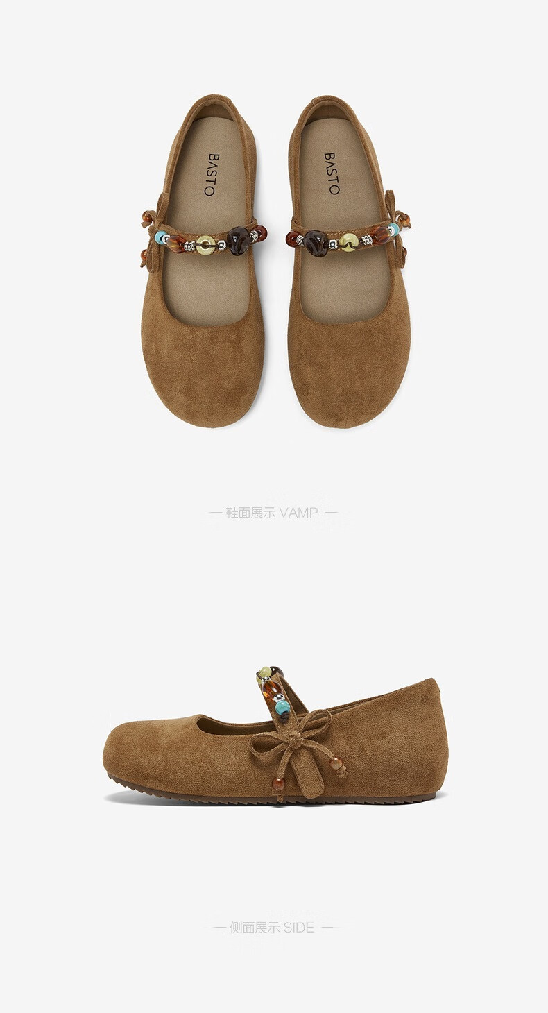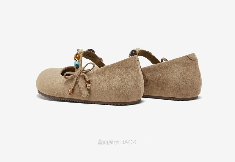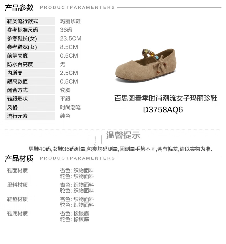 百思图2026春季新款玛丽珍鞋时尚休闲复古浅口女单鞋D3758AQ6【预售】 杏色 34