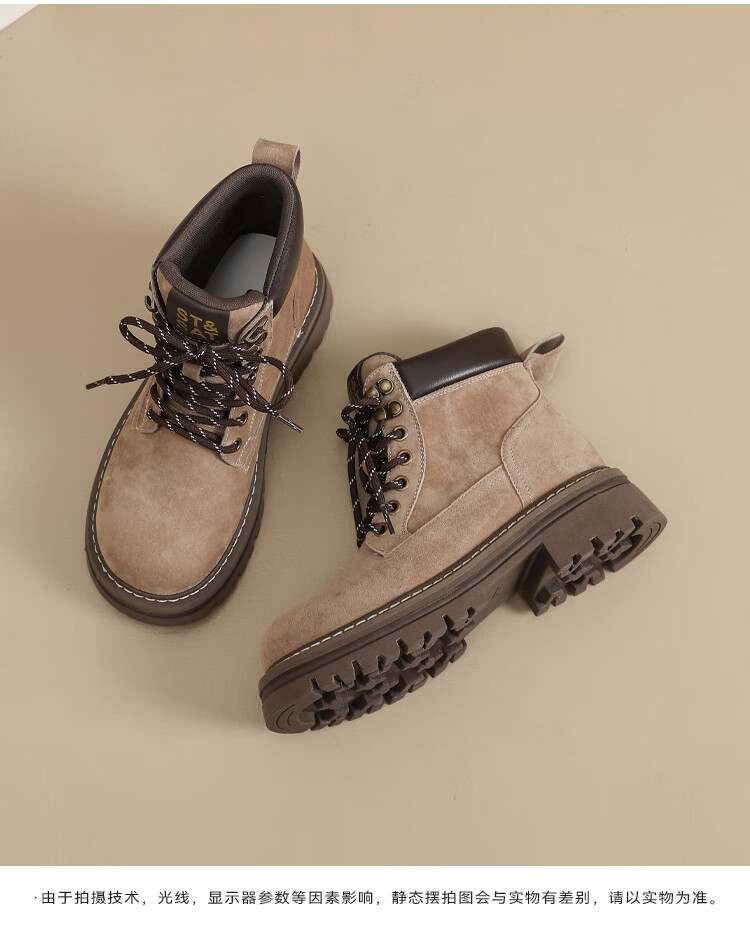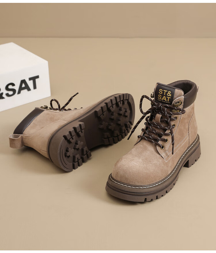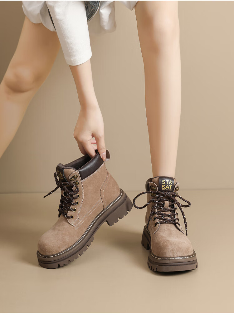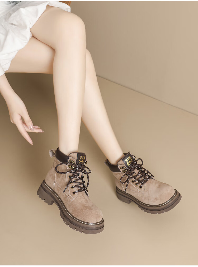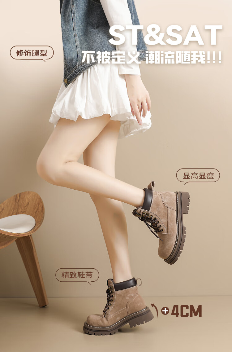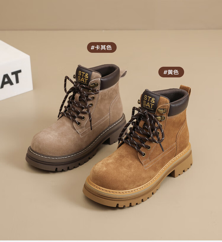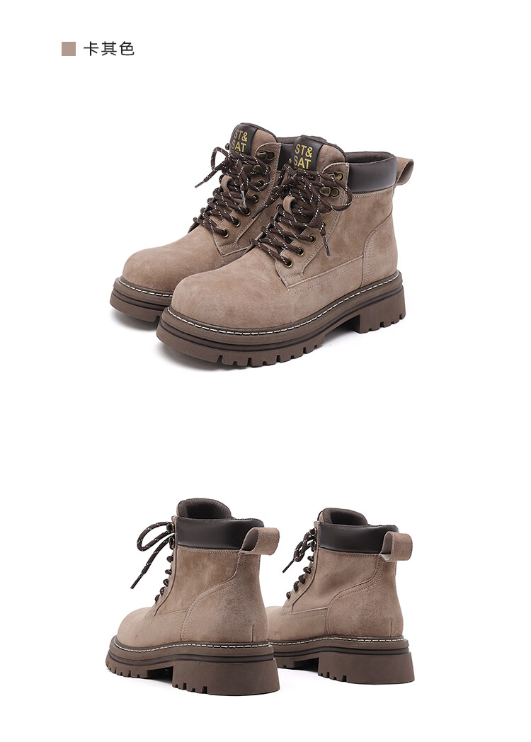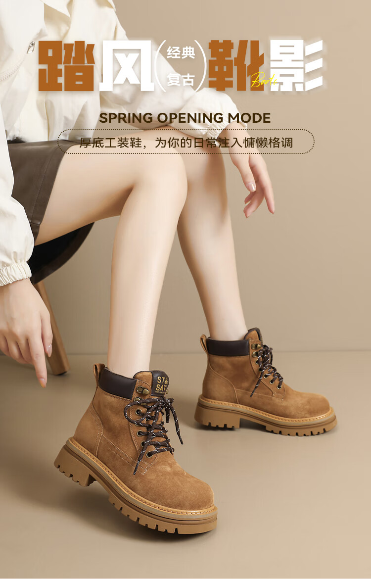 星期六时尚百搭女靴厚底2025秋冬新款圆头潮酷马丁靴DKSSD3112SDE 卡其色 35