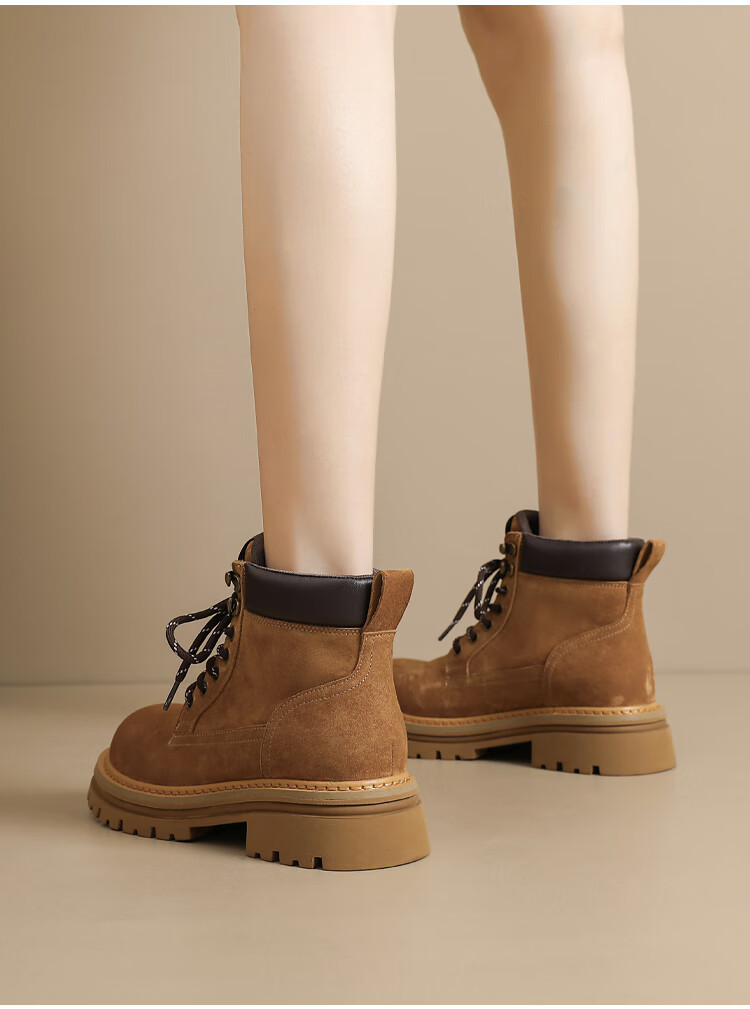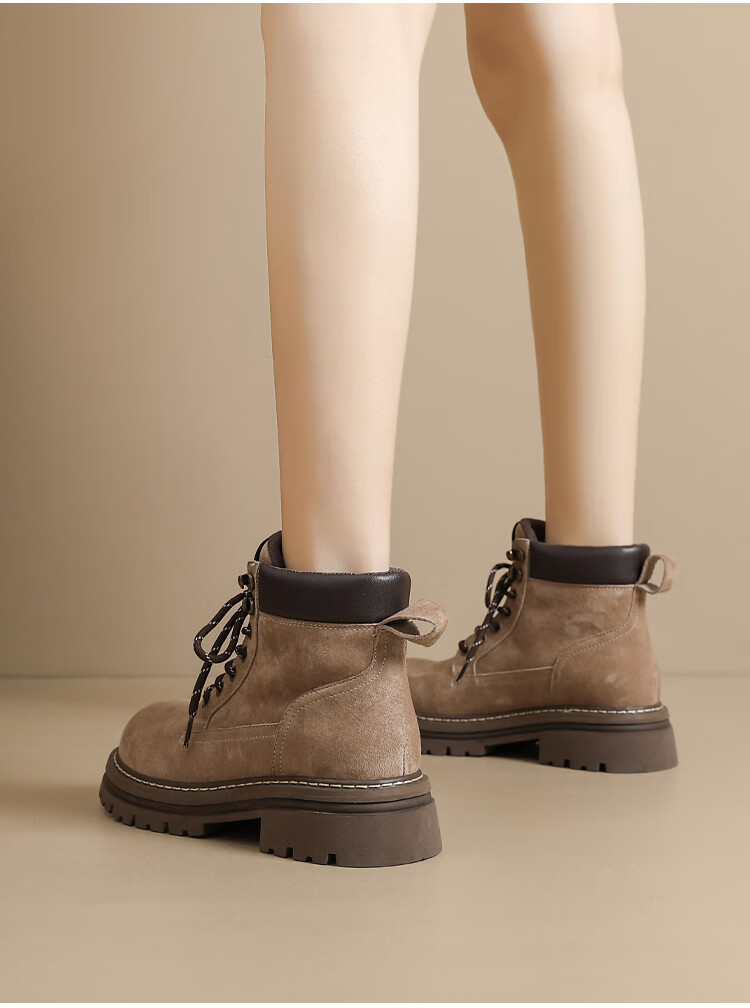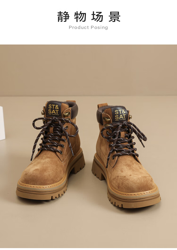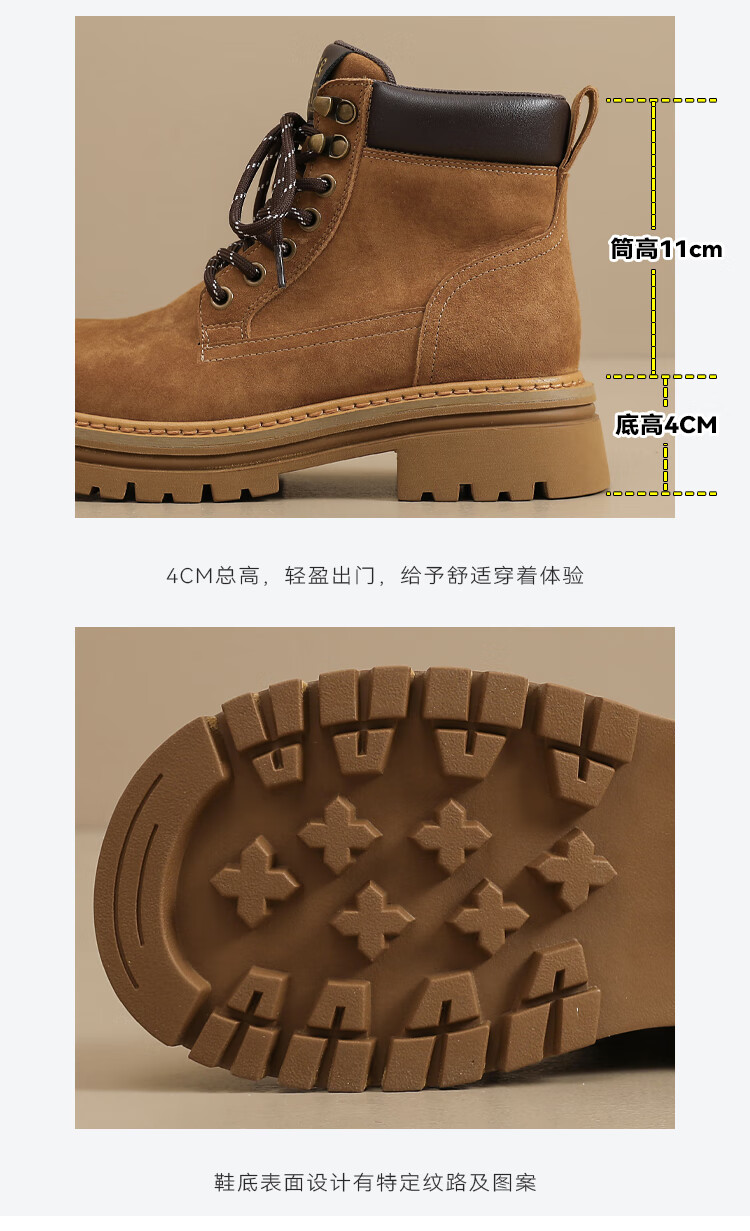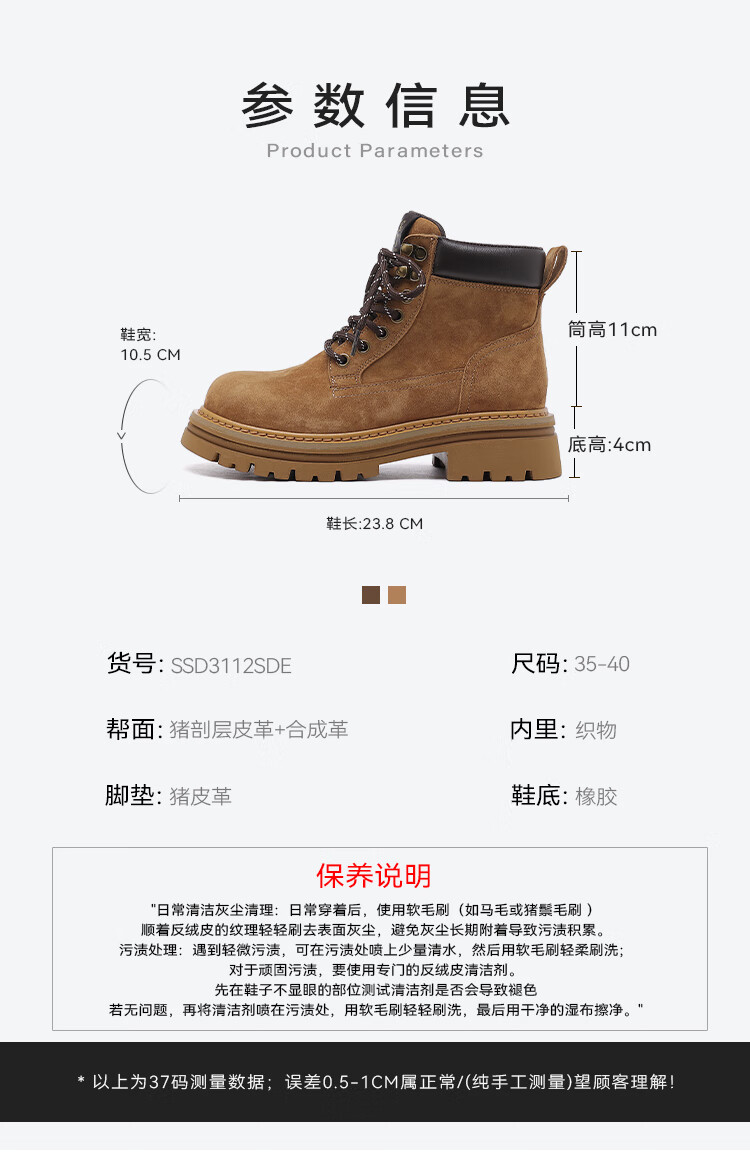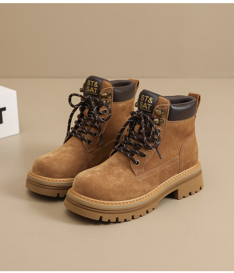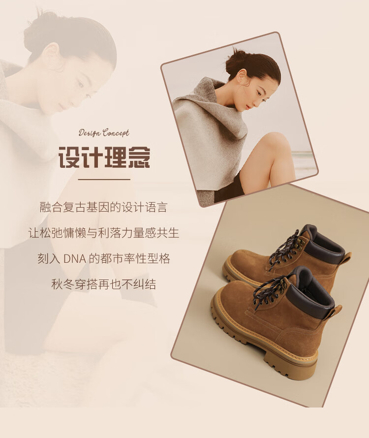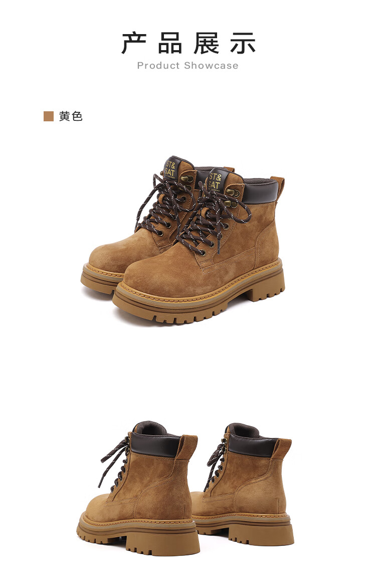 星期六时尚百搭女靴厚底2025秋冬新款圆头潮酷马丁靴DKSSD3112SDE 卡其色 35