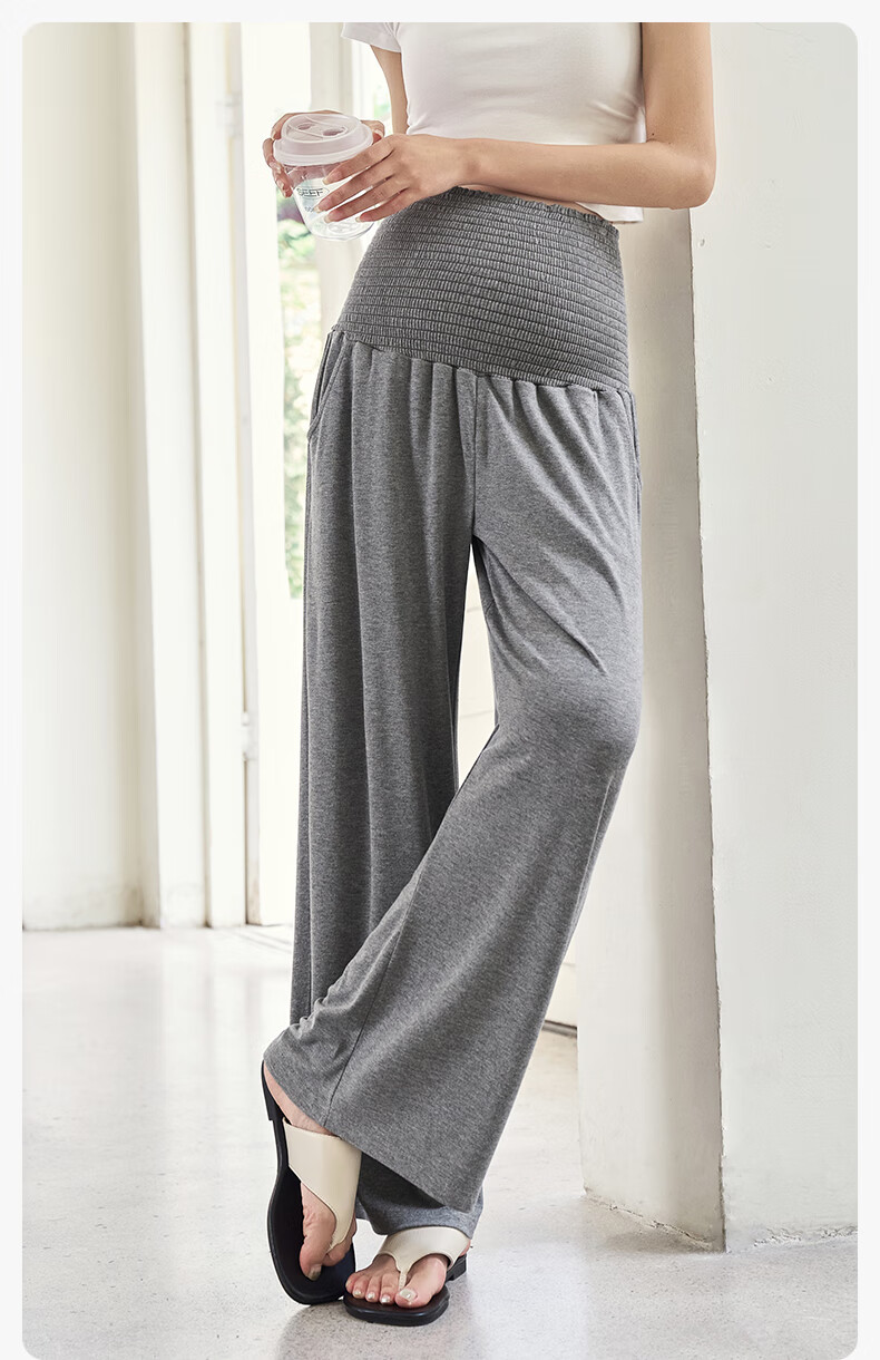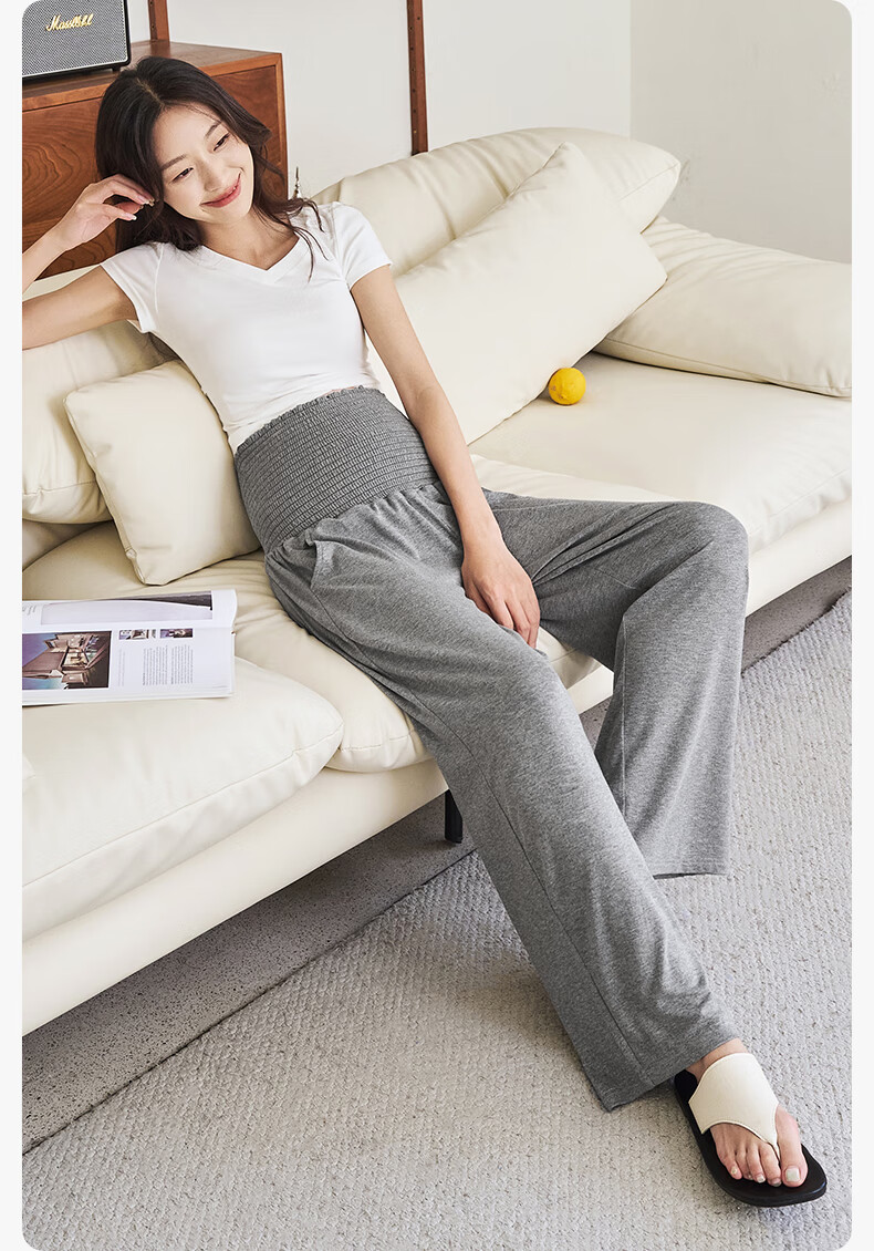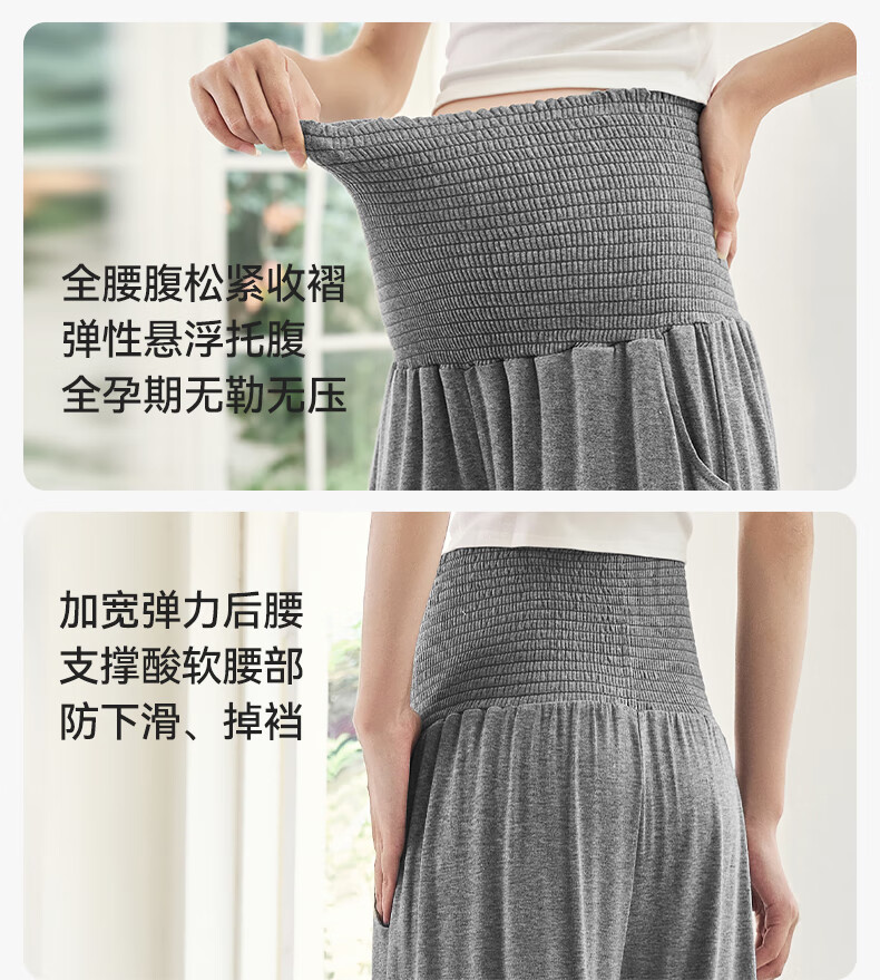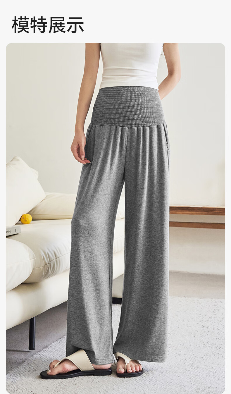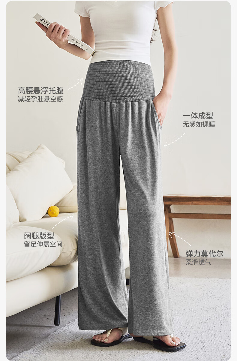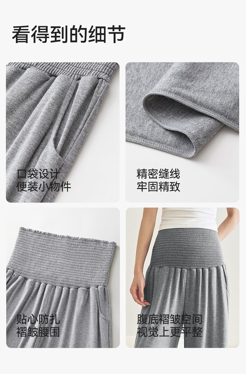 十月结晶孕妇裤子休闲裤不勒肚子氧气居家裤春秋季外穿阔腿裤 【7A抗菌悬浮托腹】-灰色 S 推荐体重100-120斤
