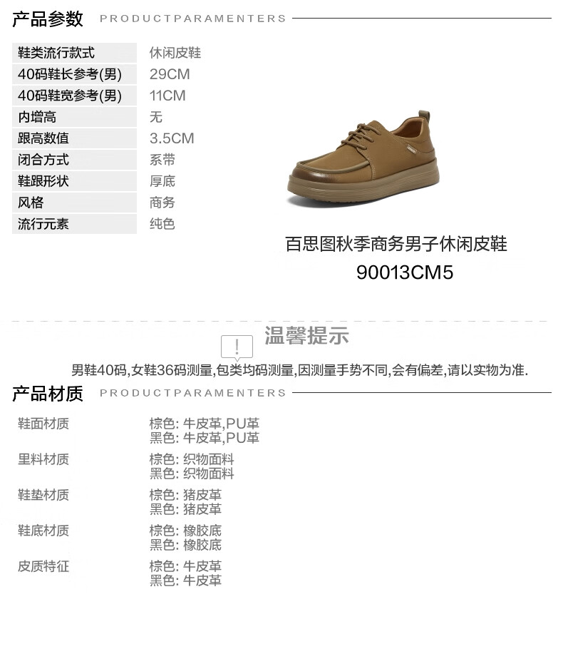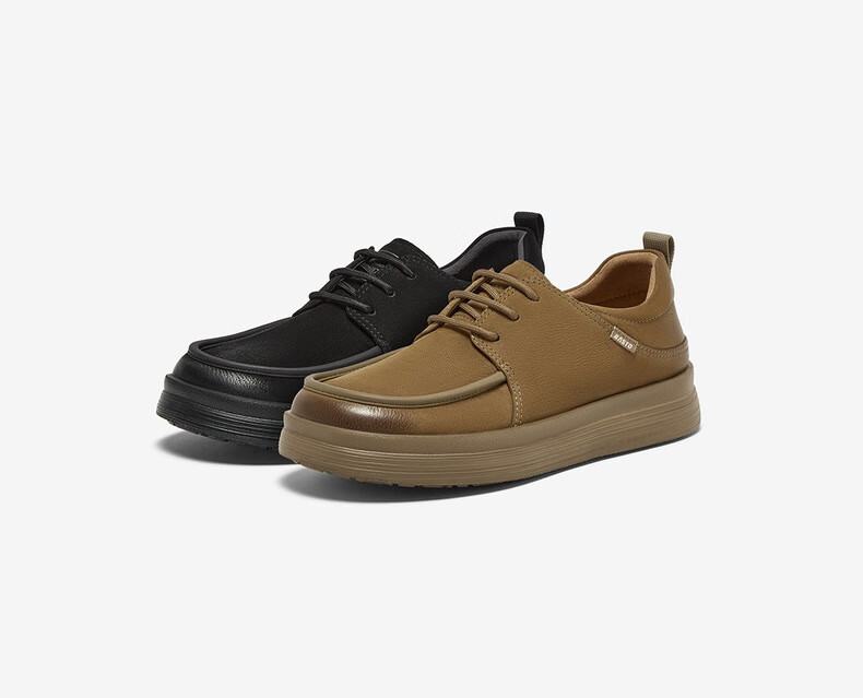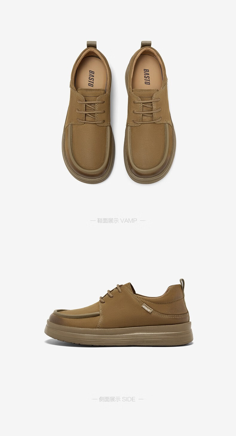 百思图2025秋季商场新款牛皮休闲皮鞋商务厚底工装风男鞋90013CM5 棕色 40